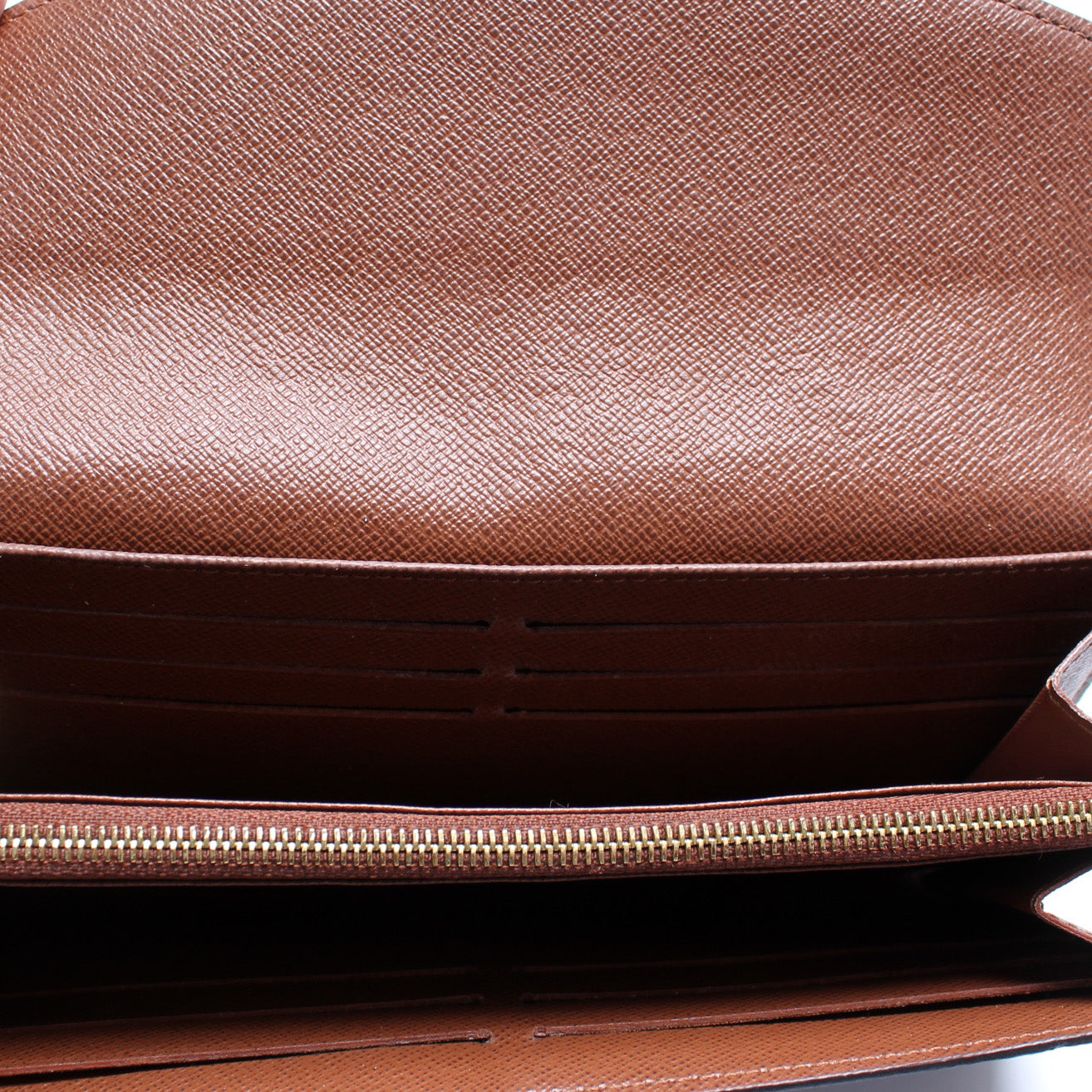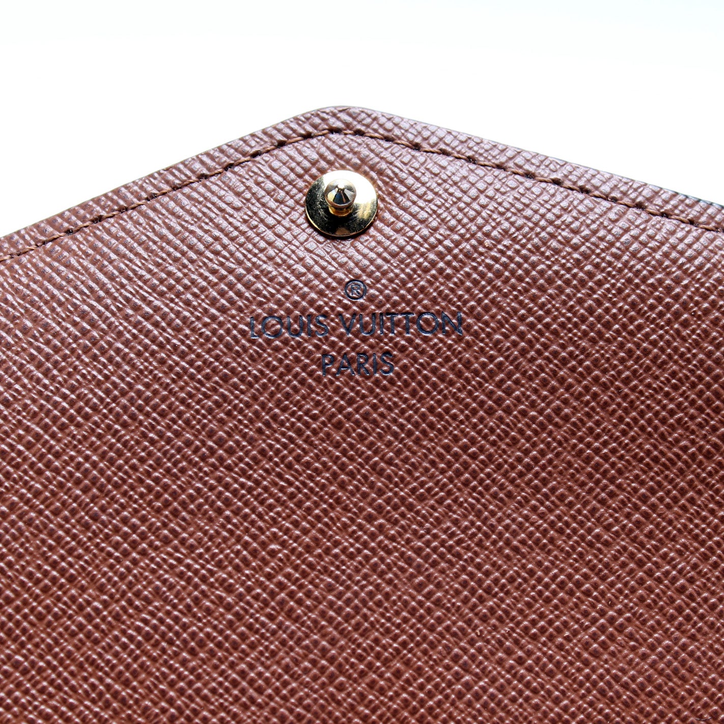 This pre-owned Louis Vuitton Sarah Wallet is guaranteed 100% authentic. The exterior is in the classic Louis Vuitton Monogram coated canvas.