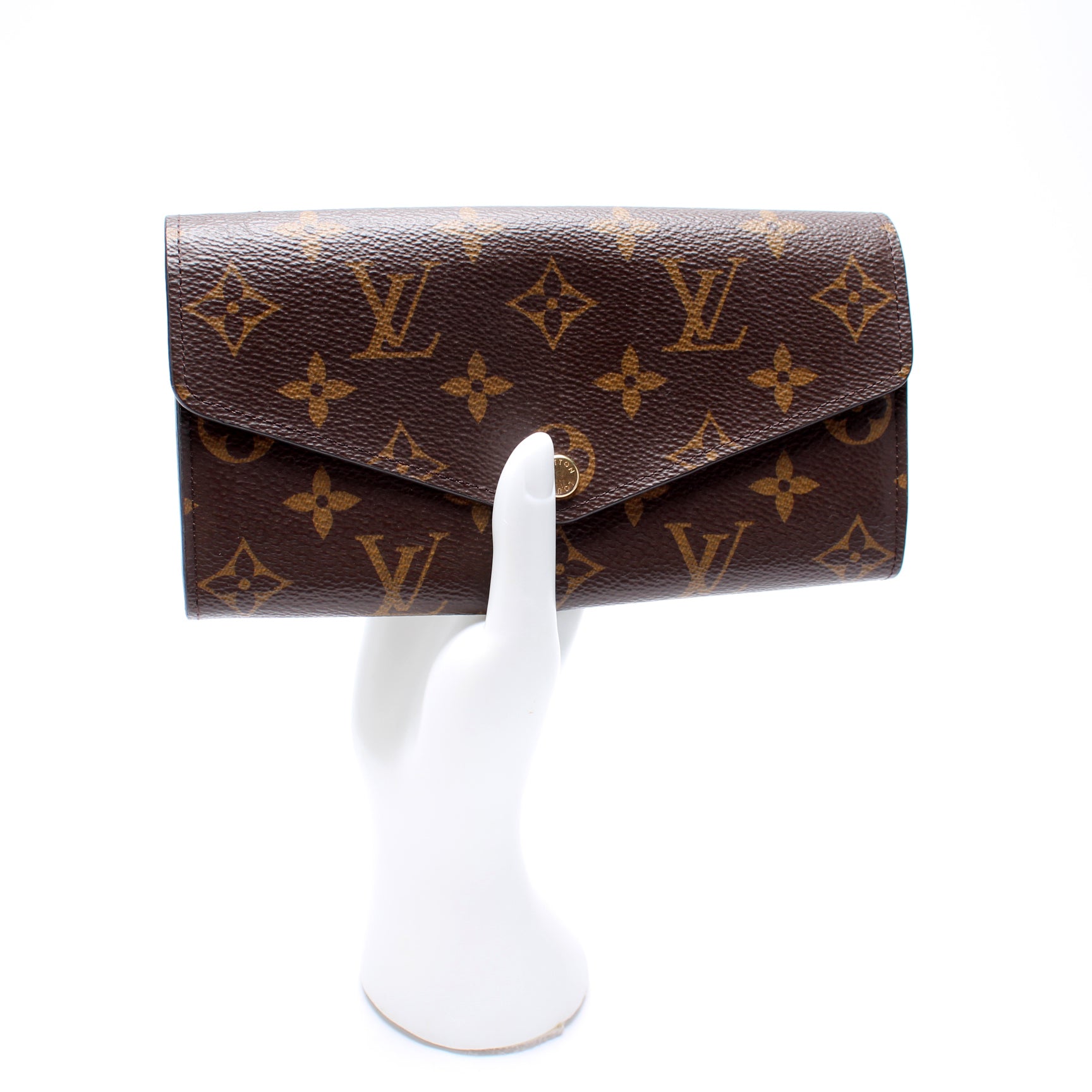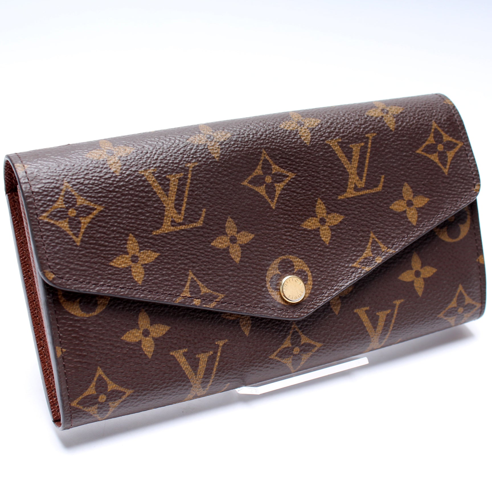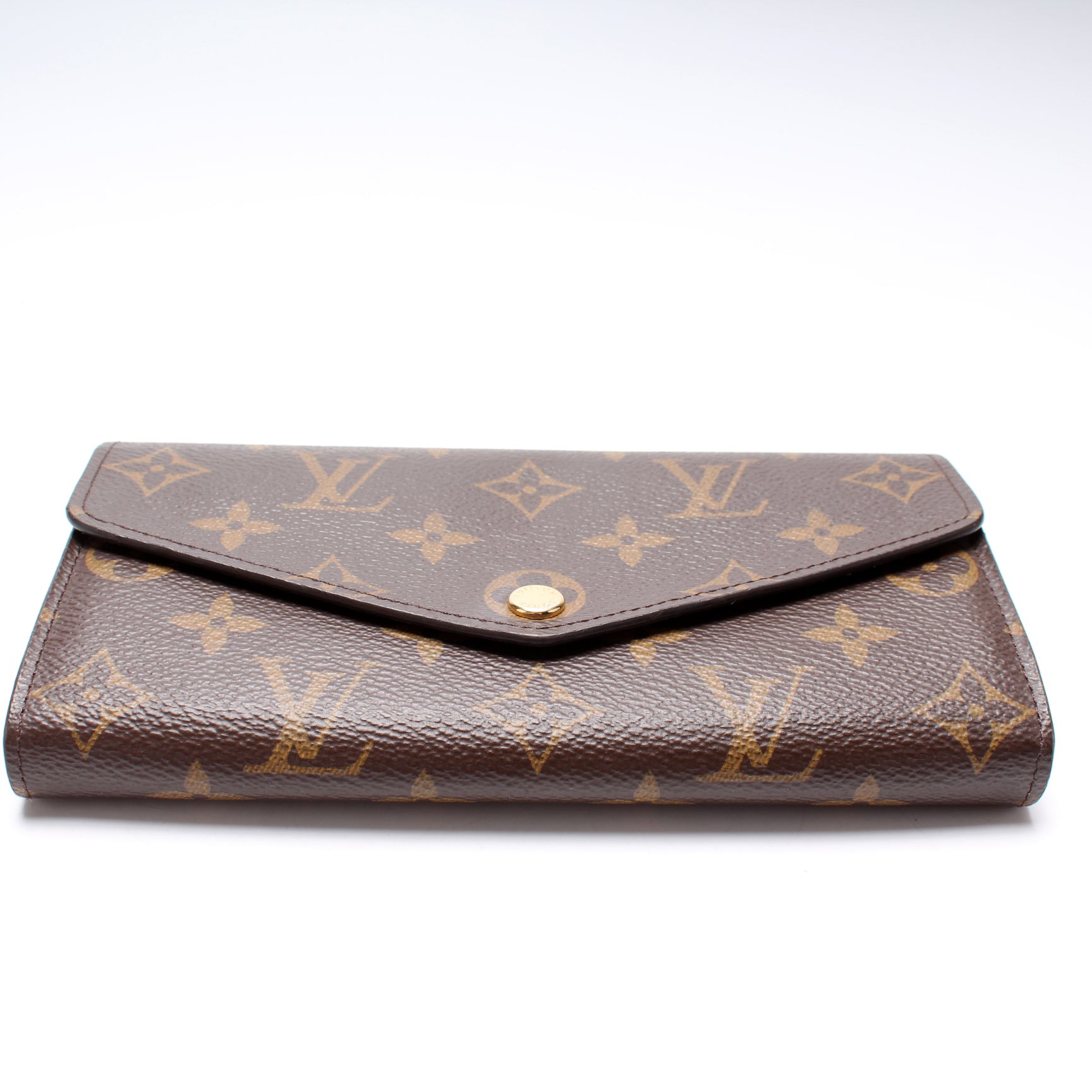 This Louis Vuitton Sarah Wallet is guaranteed 100% authentic. The exterior is in the classic Louis Vuitton Monogram coated canvas.