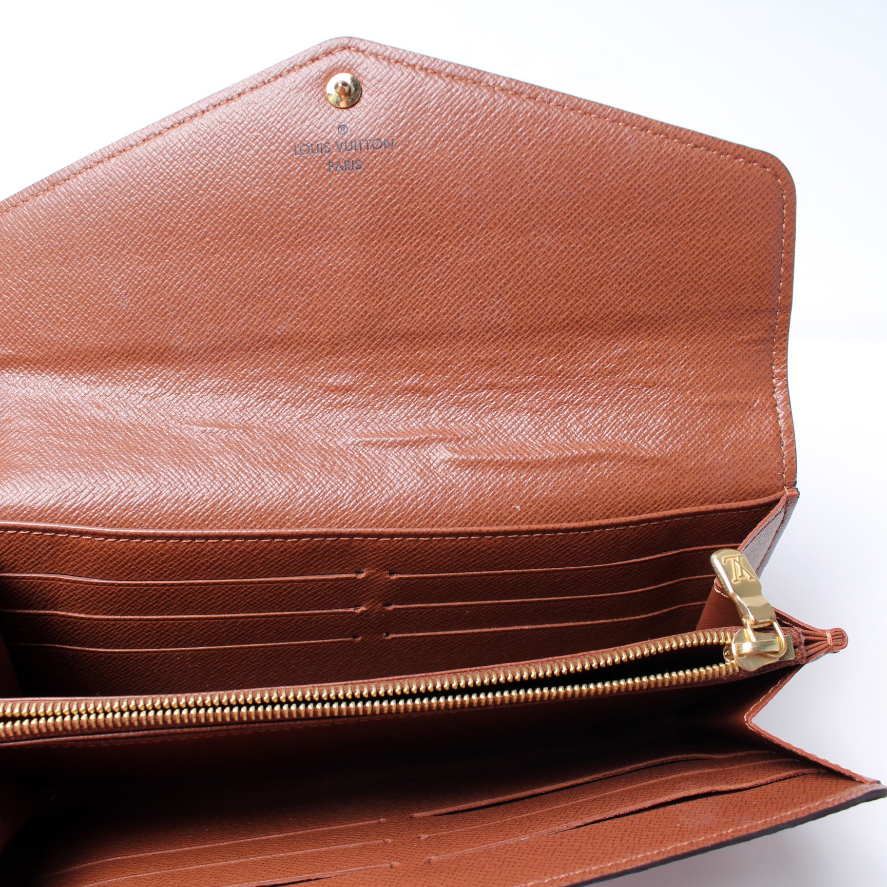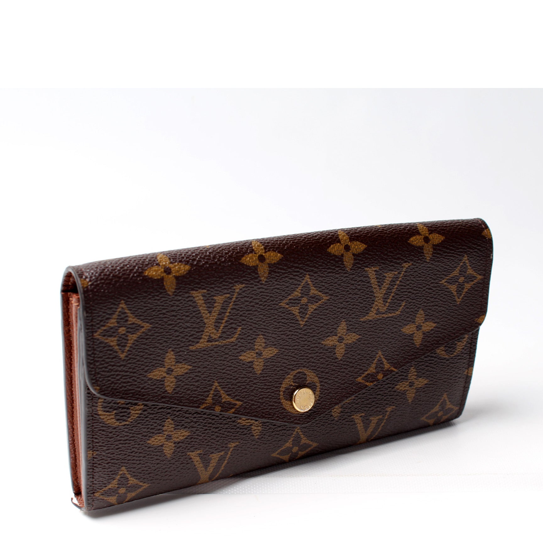 This Louis Vuitton Sarah Wallet Newer is guaranteed 100% authentic. The exterior is in the classic Louis Vuitton Monogram coated canvas.