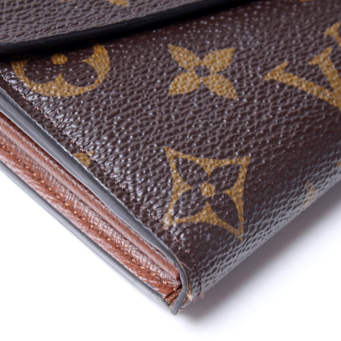 Interior: The interior is clean and free of rips or tears. The interior features twelve card slots, one zip closure coin pouch, and three bill slots. There is wrinkling to the interior canvas.