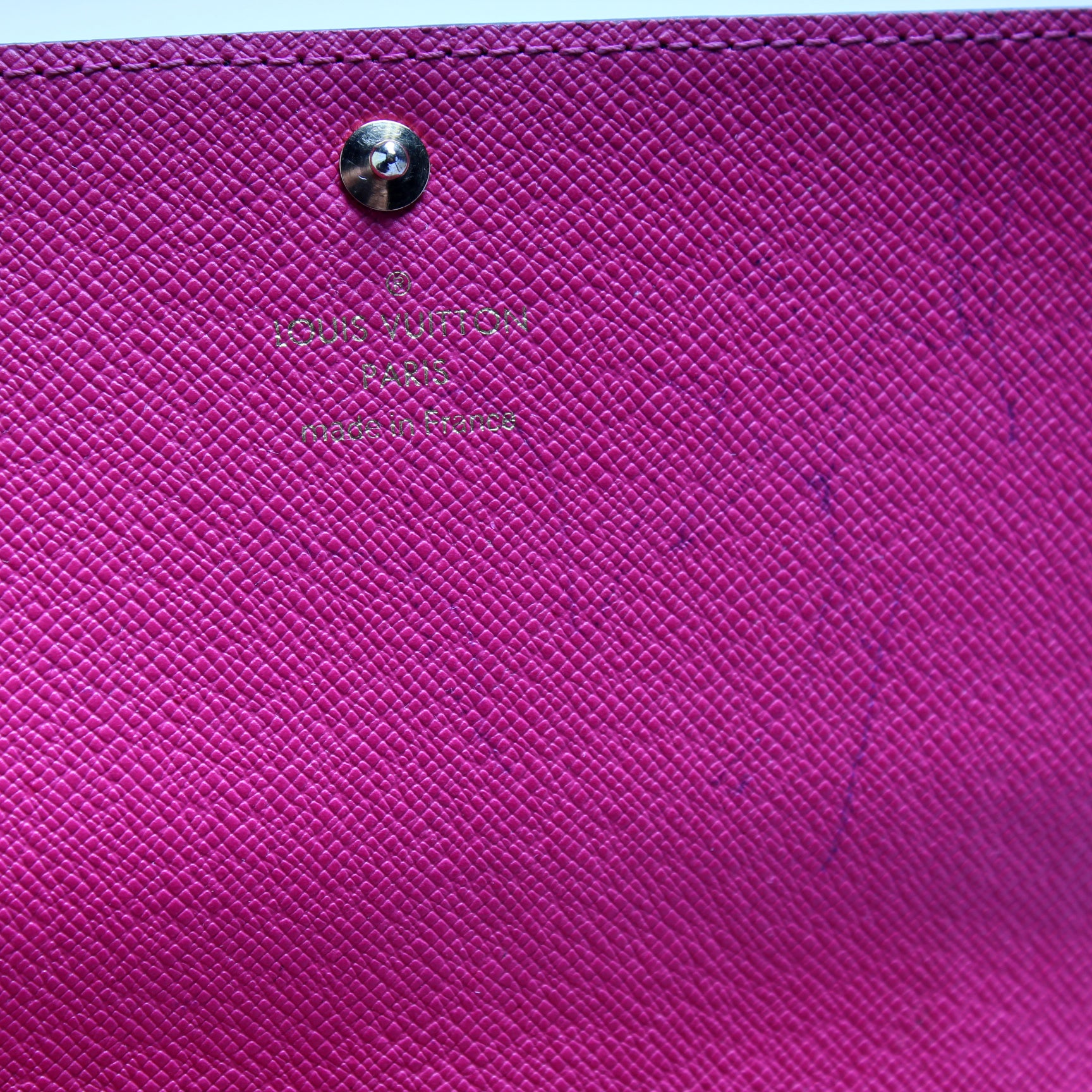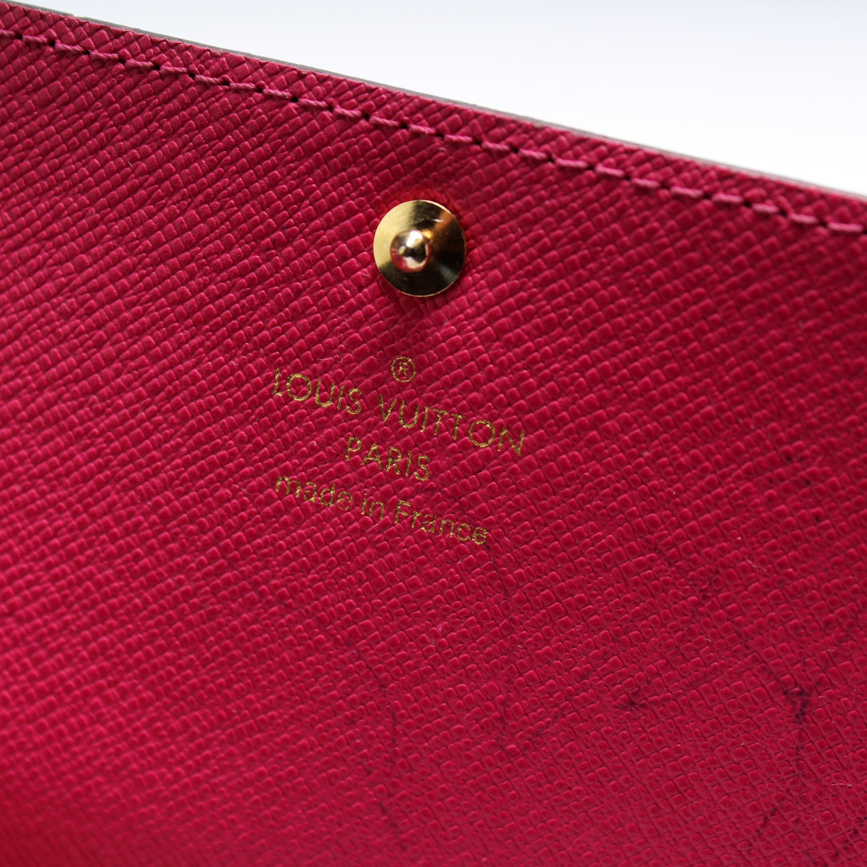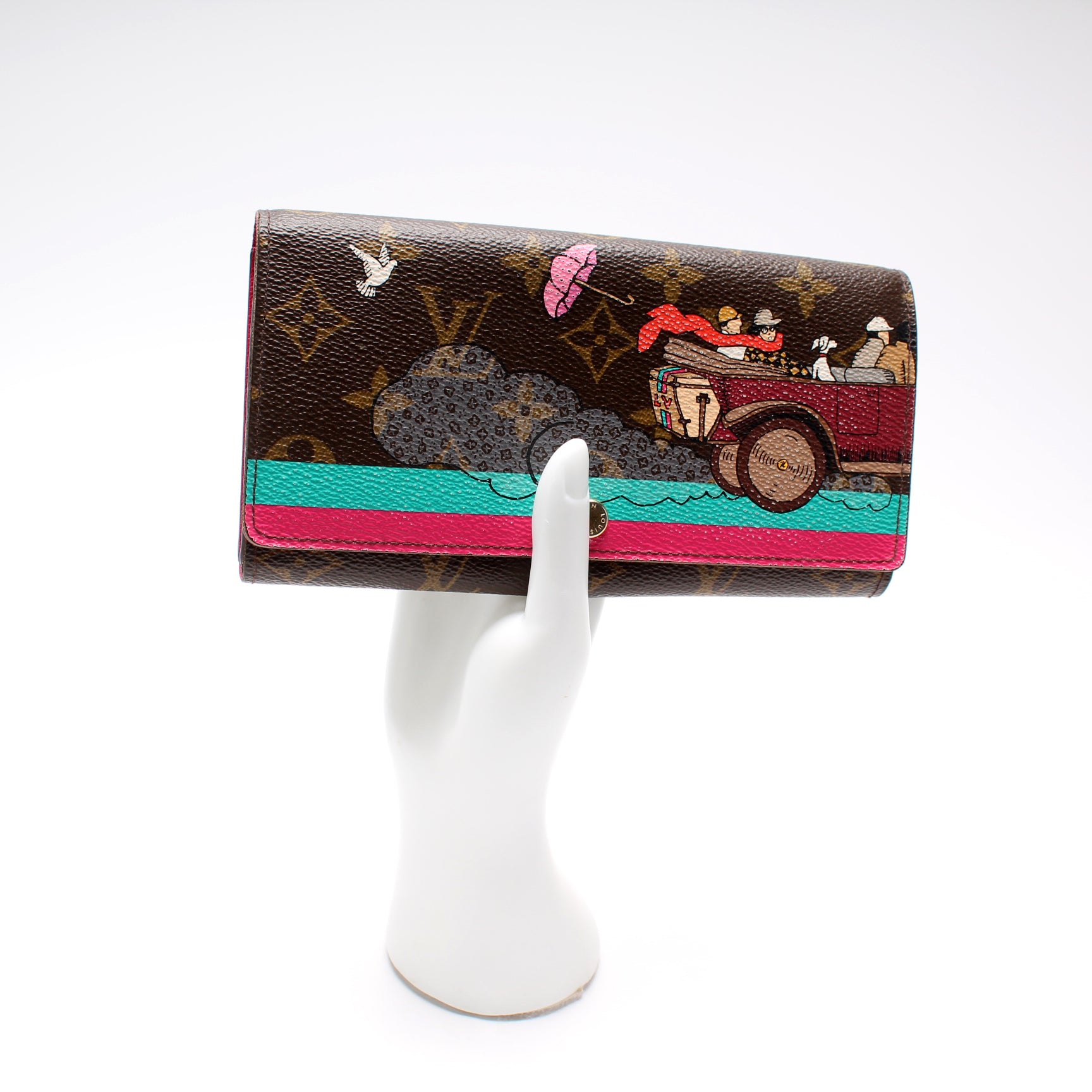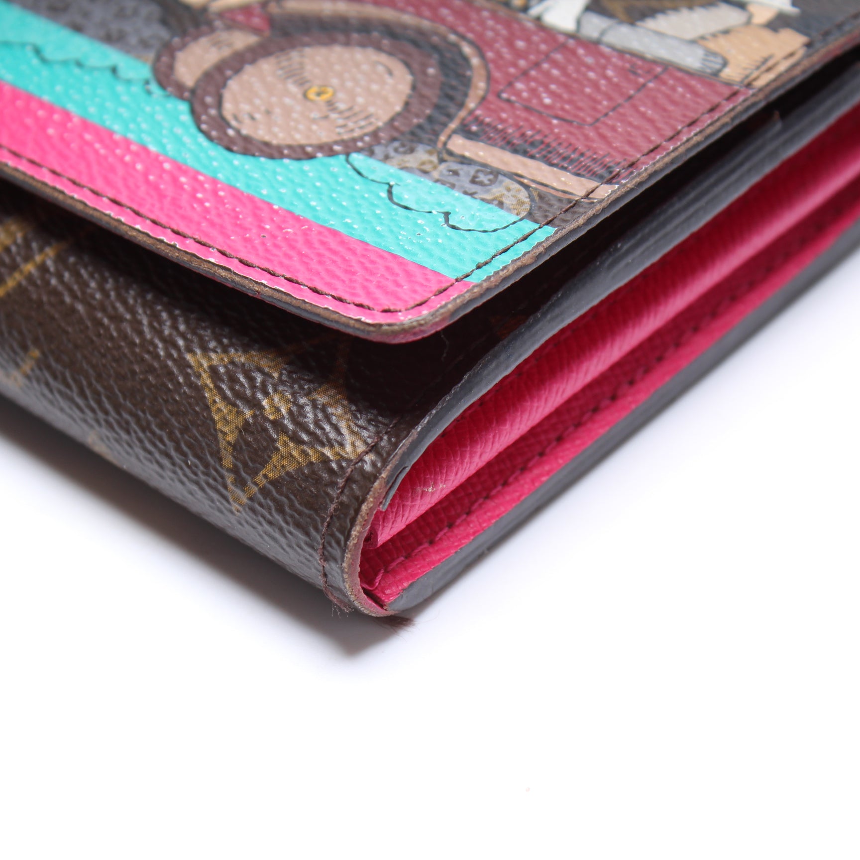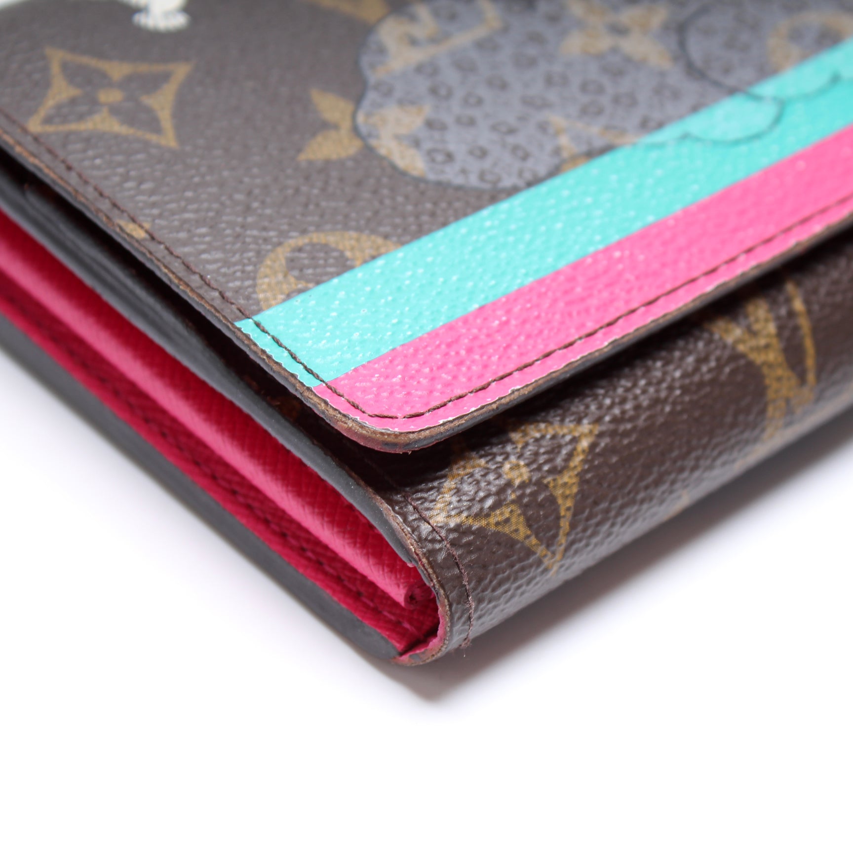 This pre-owned Louis Vuitton Sarah Xmas Animation Wallet is guaranteed 100% authentic. The exterior is in the classic Louis Vuitton Monogram coated canvas.