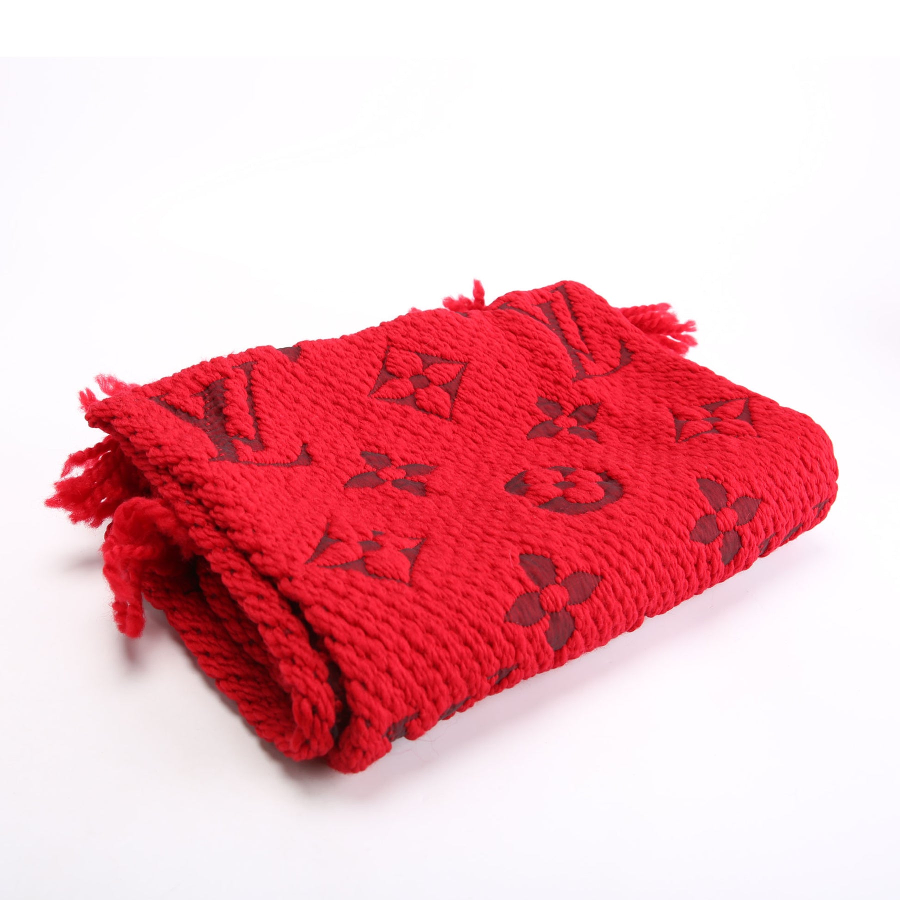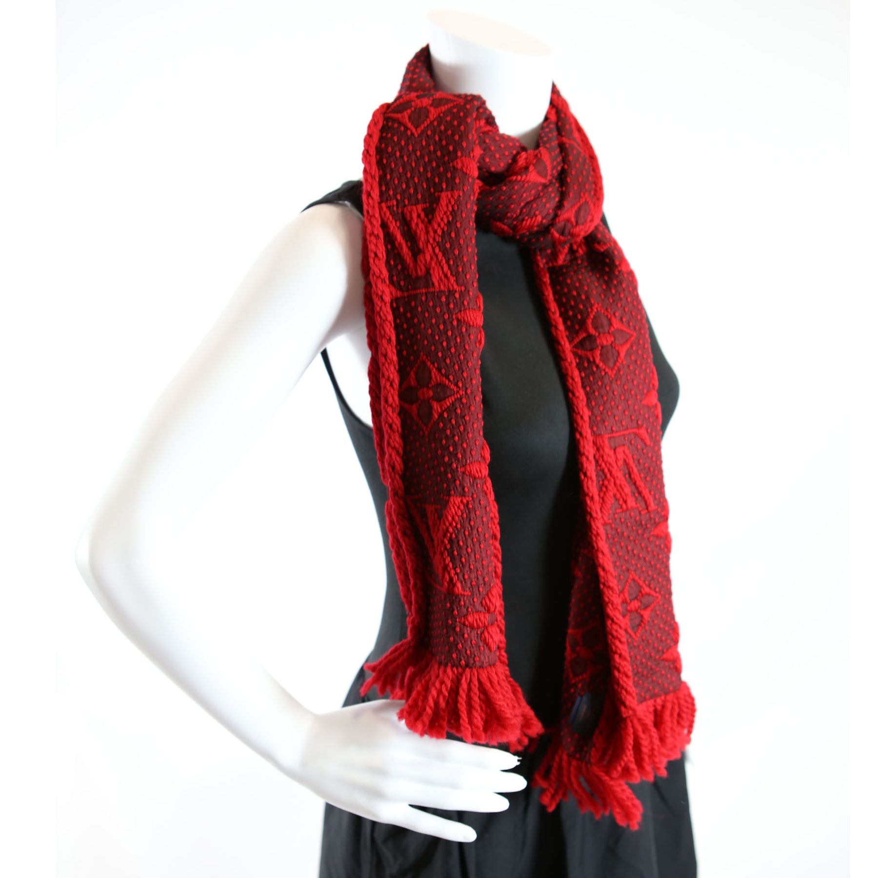 Shawl Monogram Silk/Wool Scarf Red