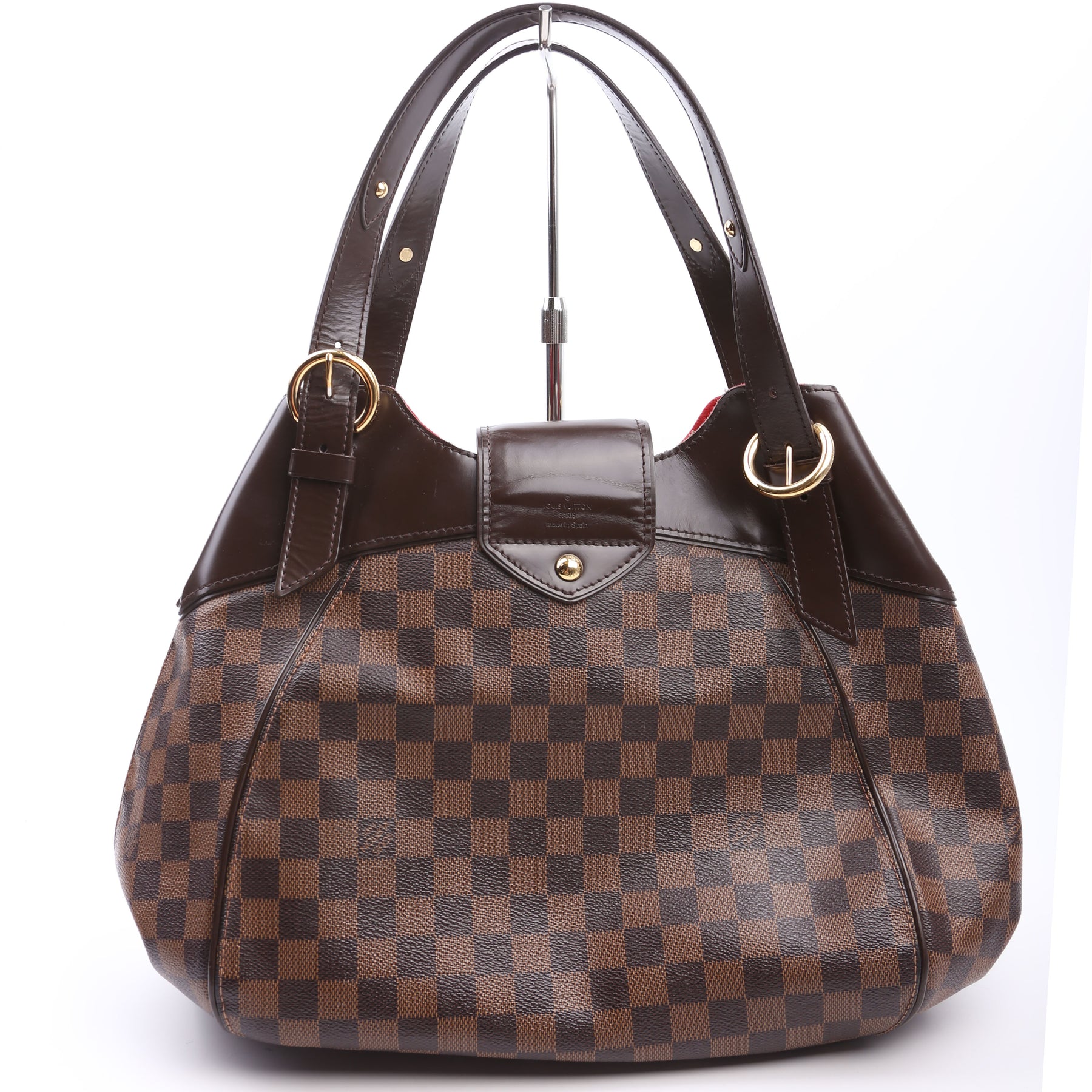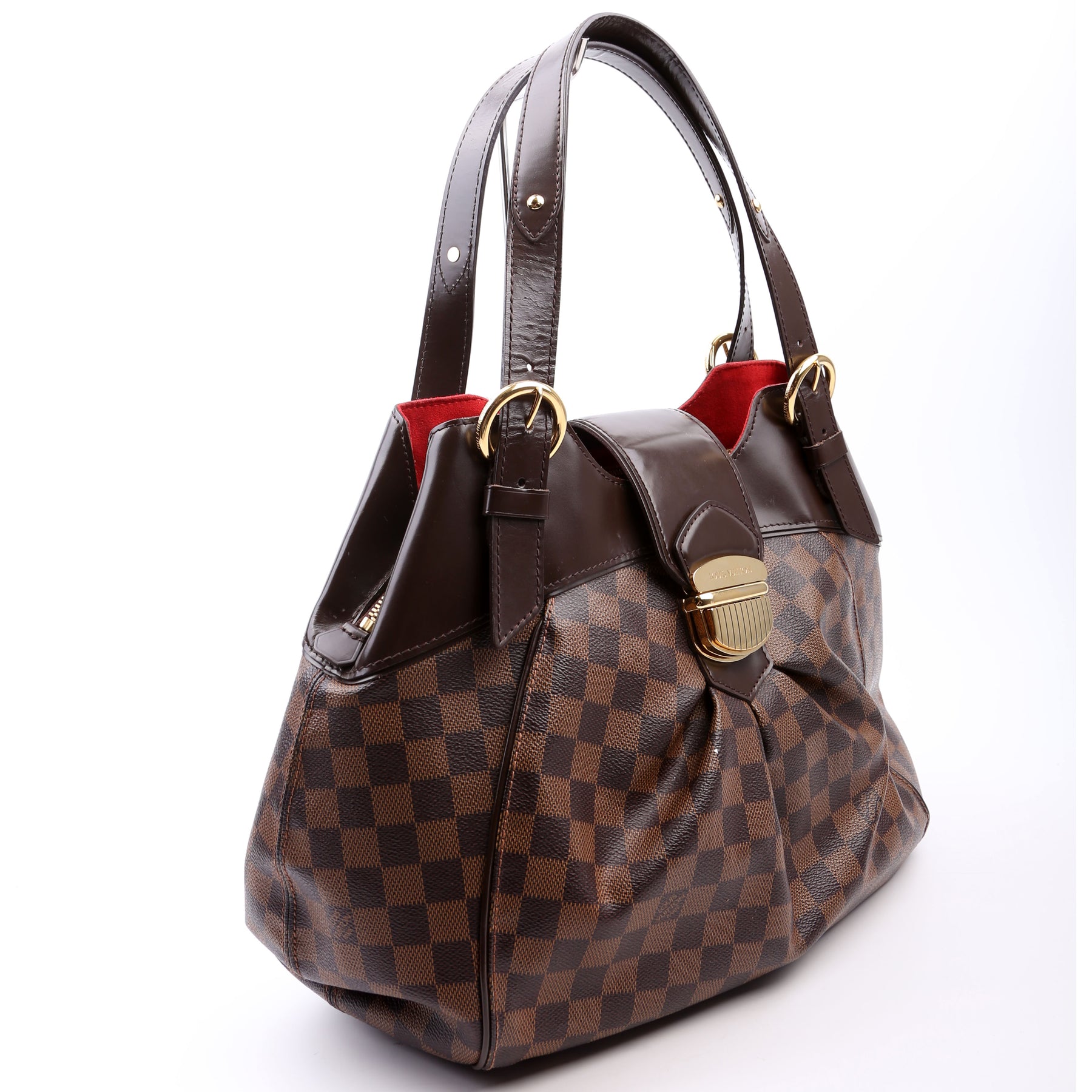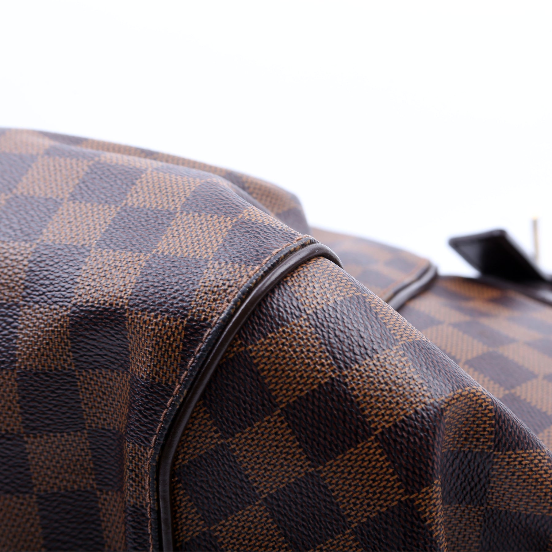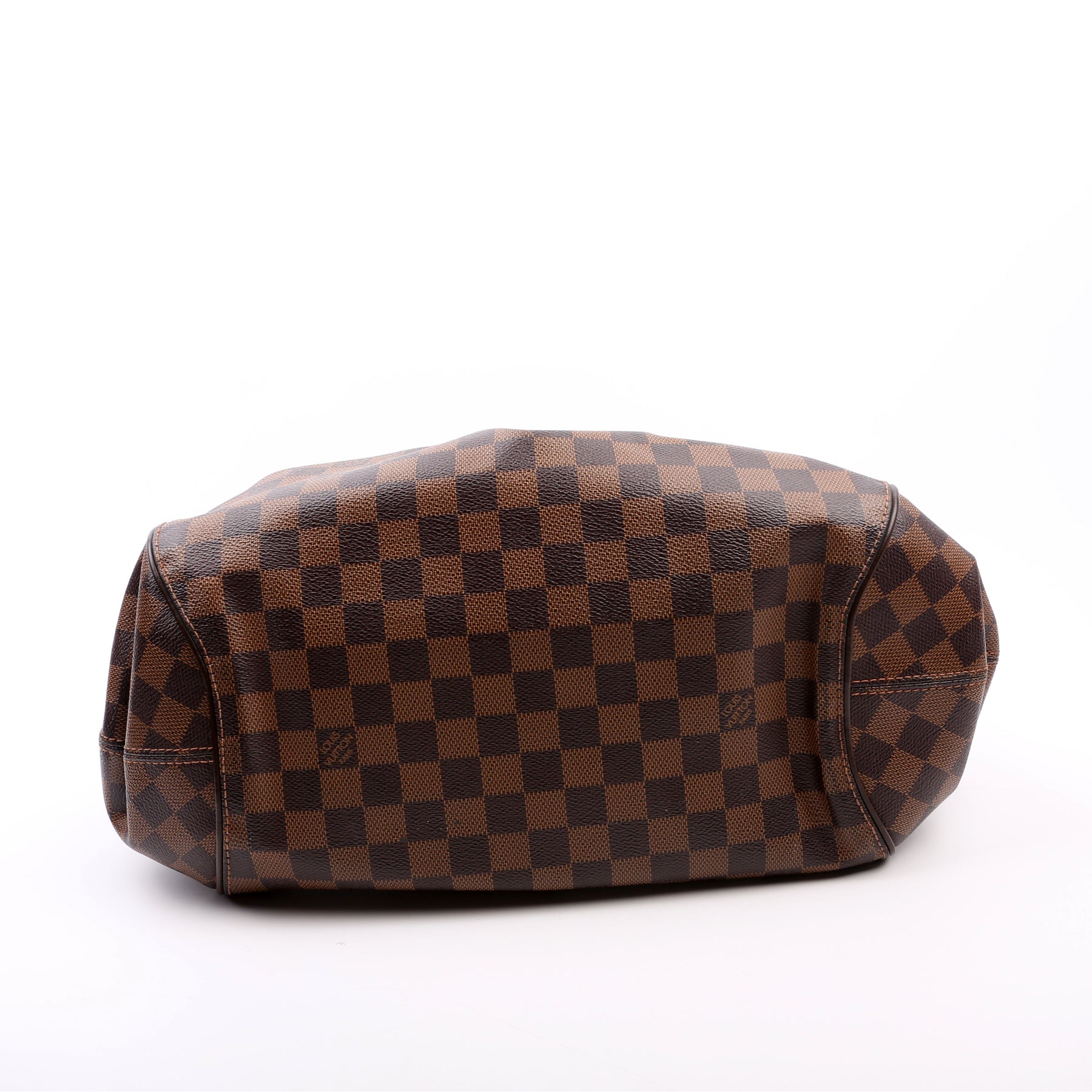 This pre-owned Louis Vuitton Sistina GM is guaranteed 100% authentic. The exterior is in the classic Louis Vuitton Damier Ebene coated canvas.