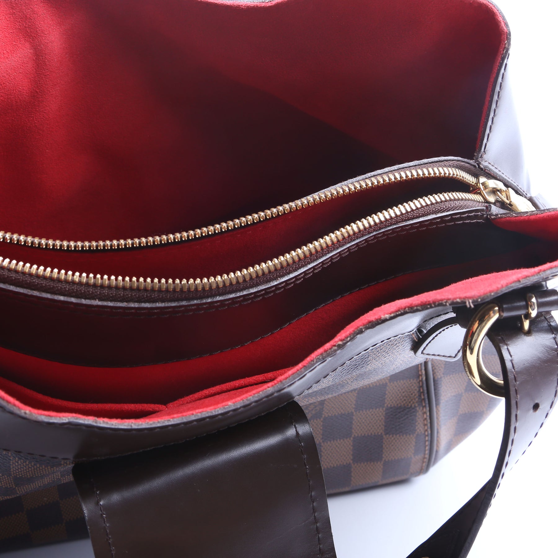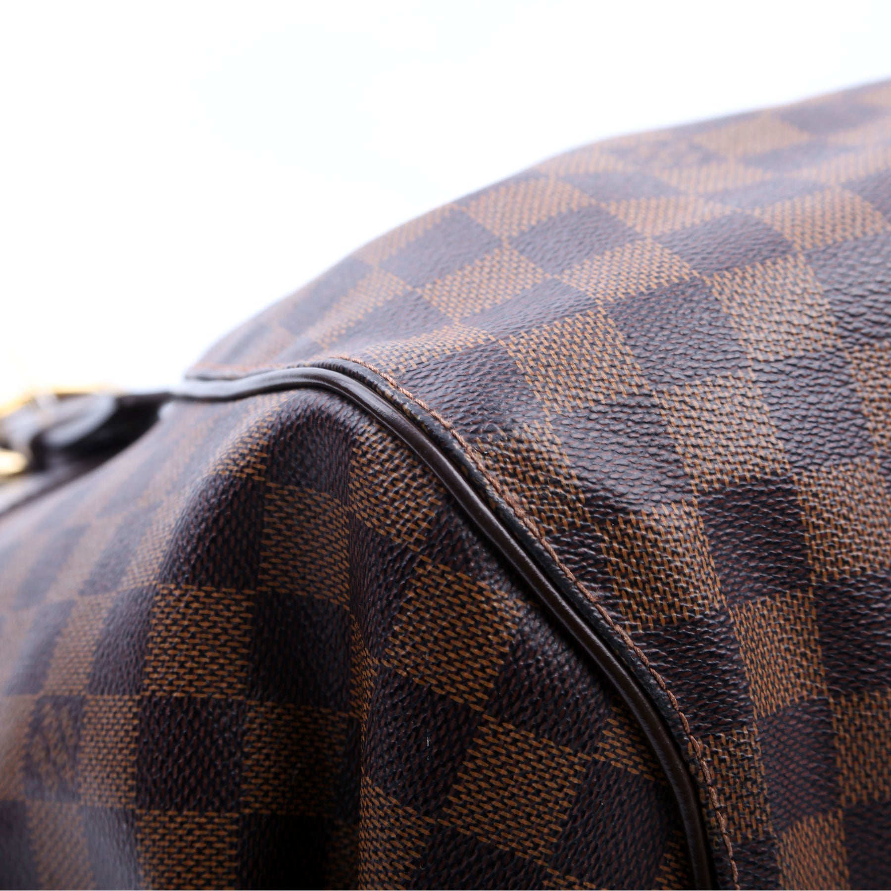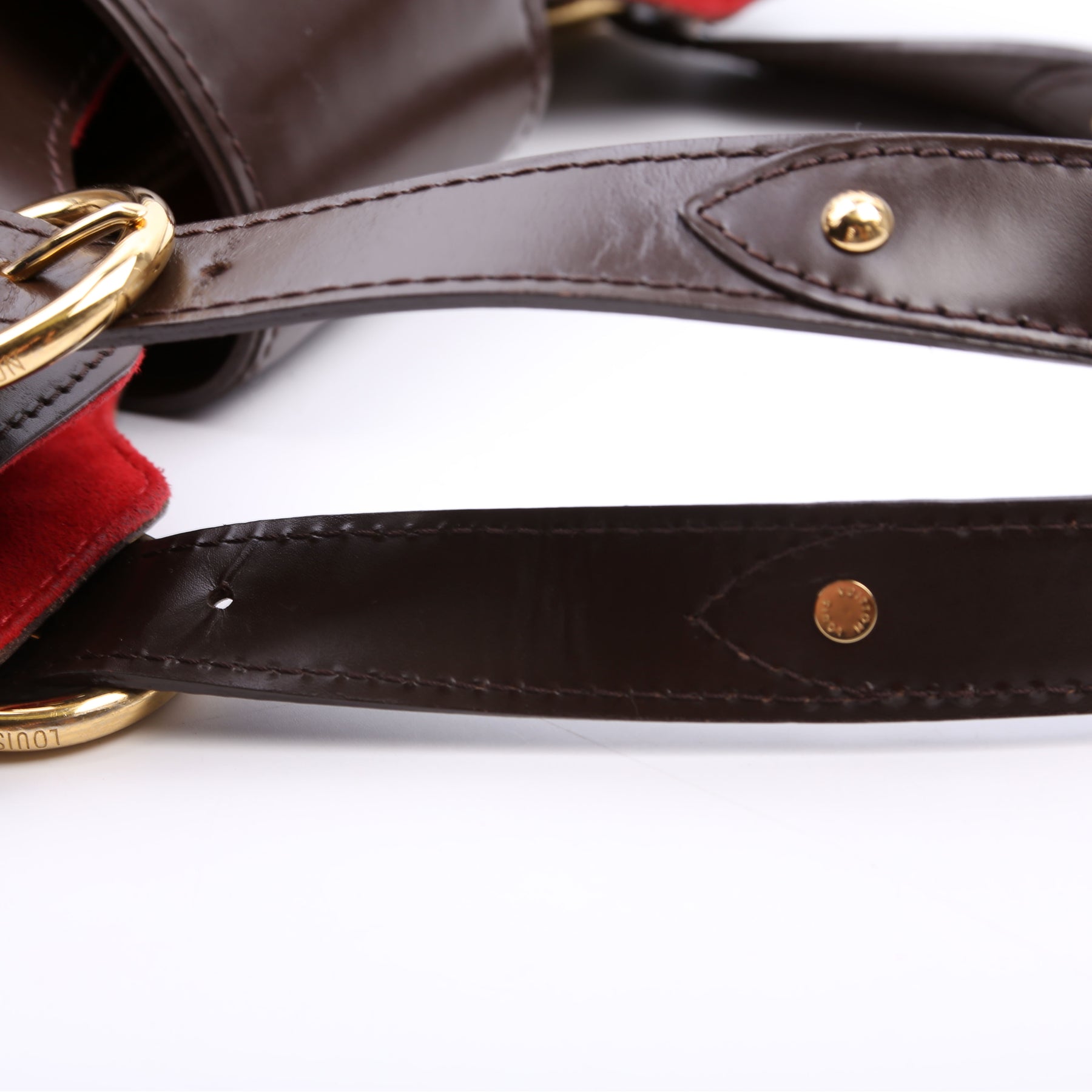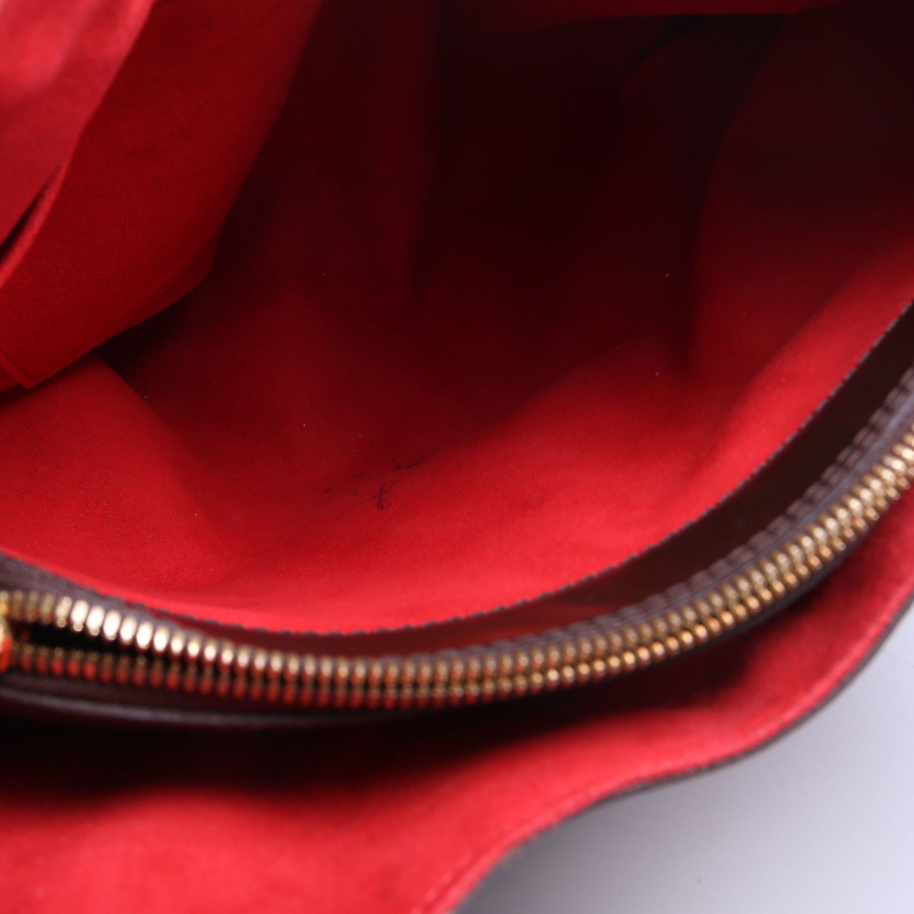 This pre-owned Louis Vuitton Sistina GM is guaranteed 100% authentic. The exterior is in the classic Louis Vuitton Damier Ebene coated canvas.