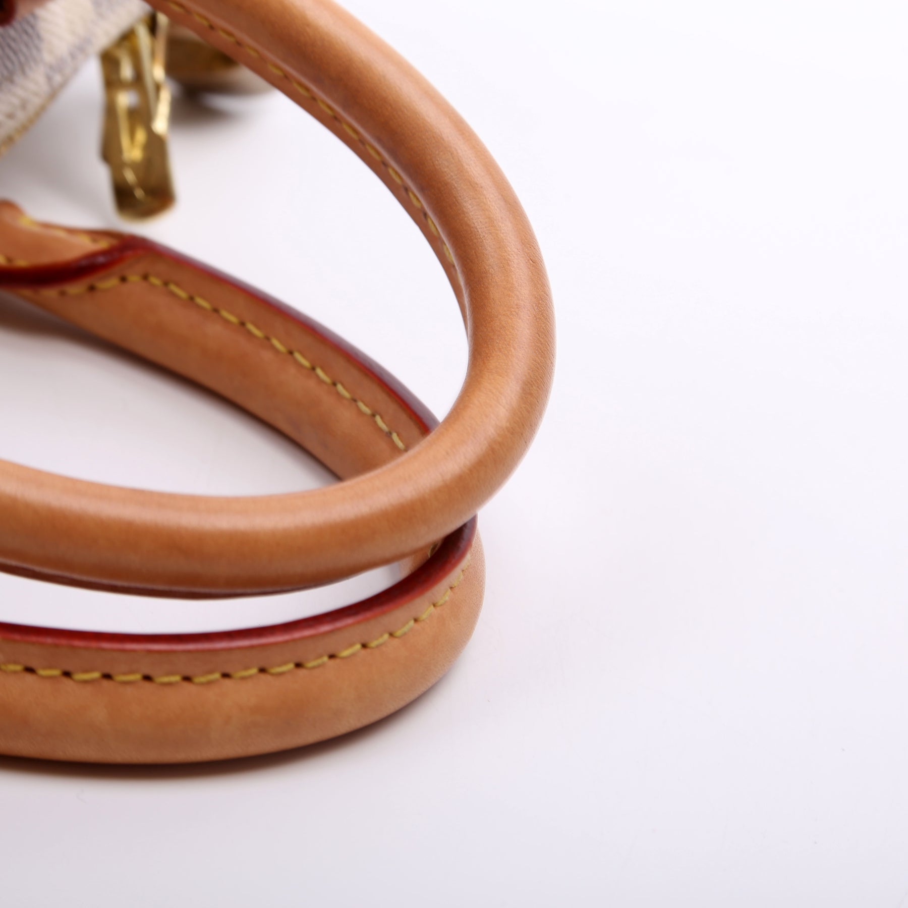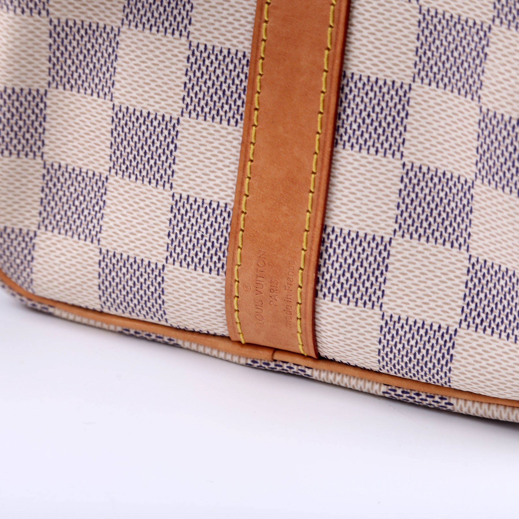 Handle: The leather handles show minor discoloration.