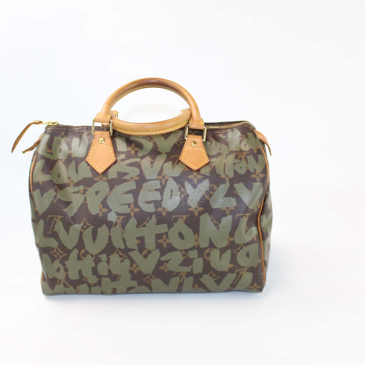 This pre-owned Louis Vuitton Speedy 30 Graffiti is guaranteed 100% authentic. The exterior is in the classic Louis Vuitton Graffiti Monogram coated canvas.