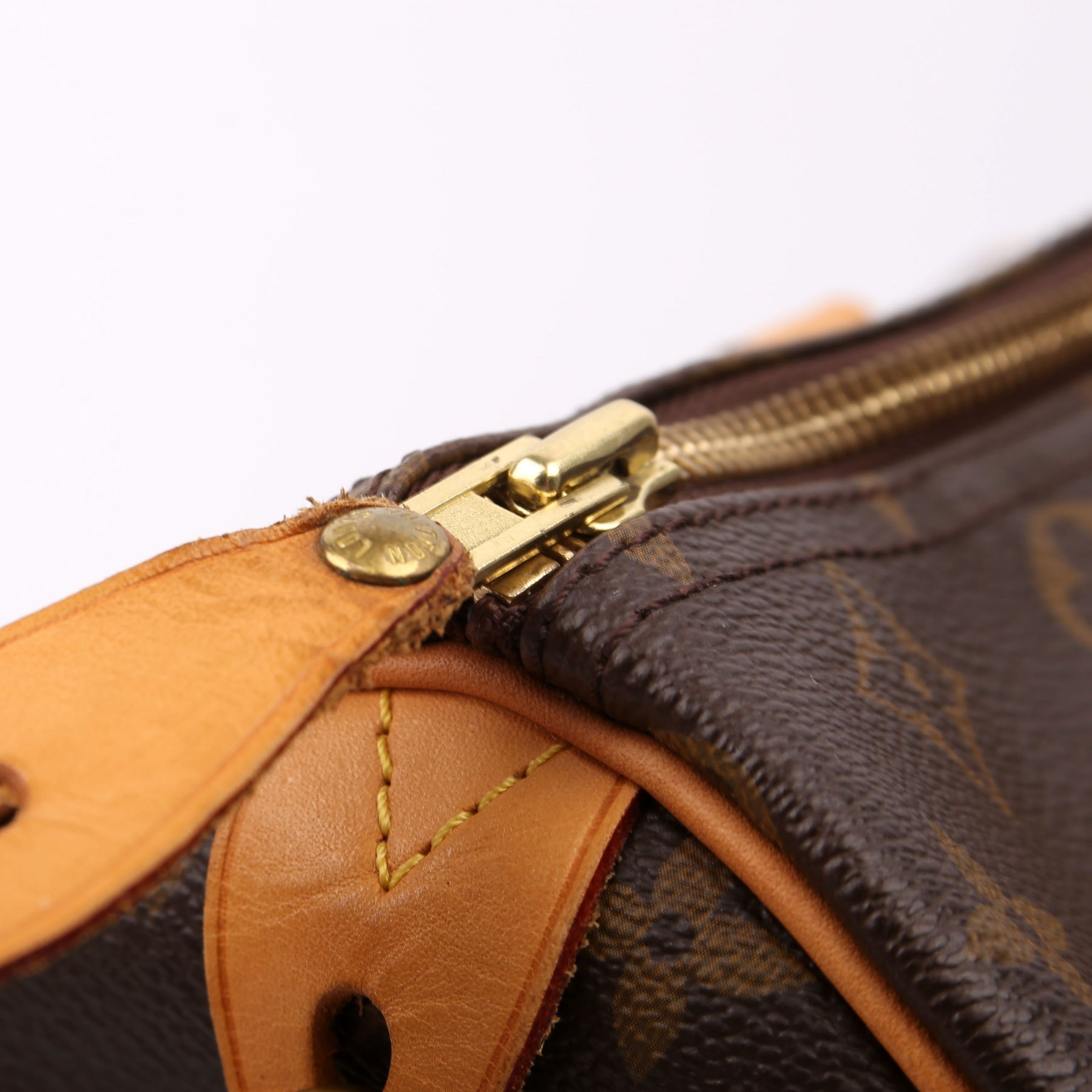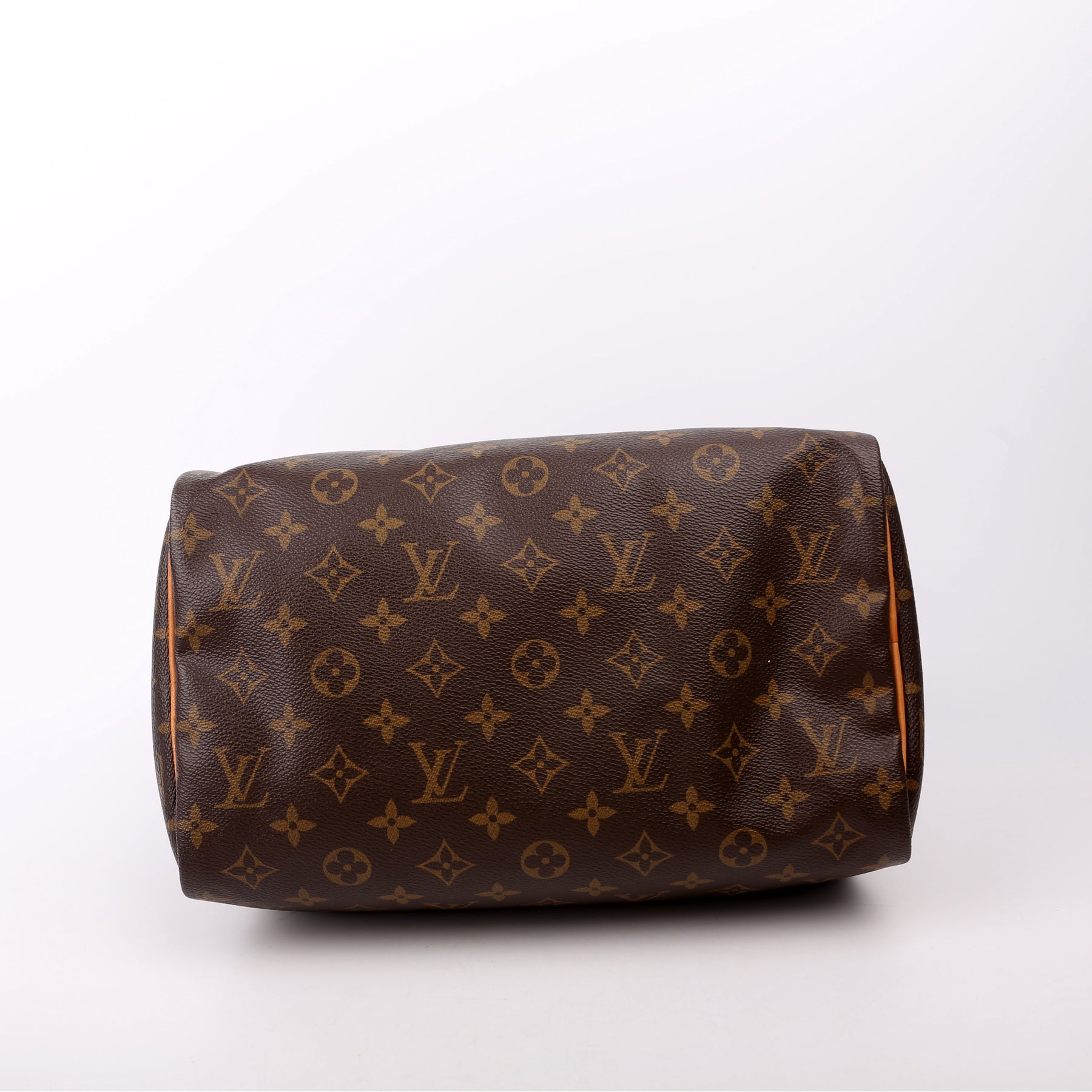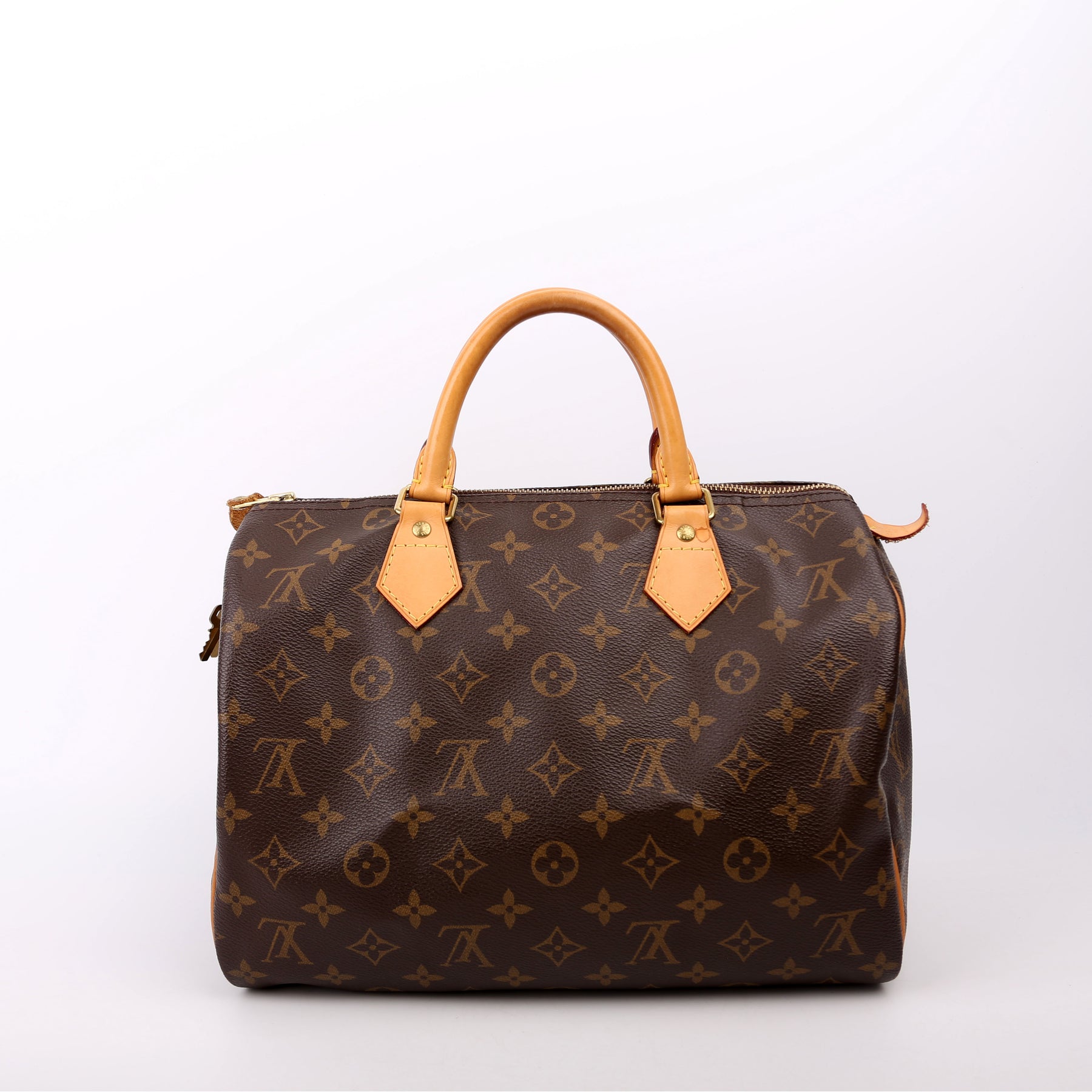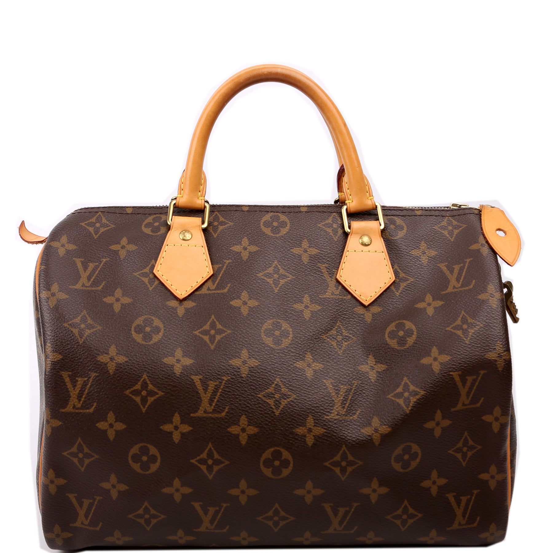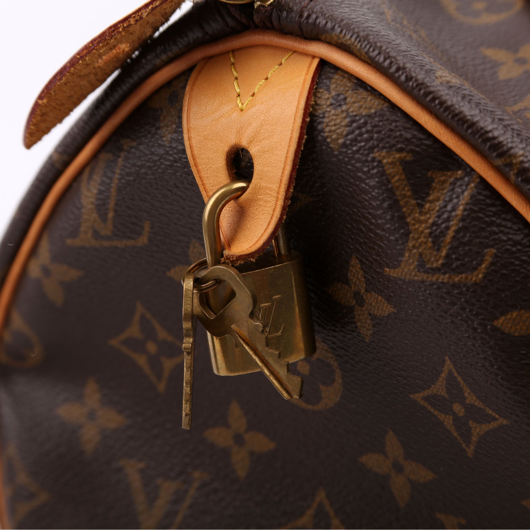 This pre-owned Louis Vuitton Speedy 30 is guaranteed 100% authentic. The exterior is in the classic Louis Vuitton Monogram coated canvas.
