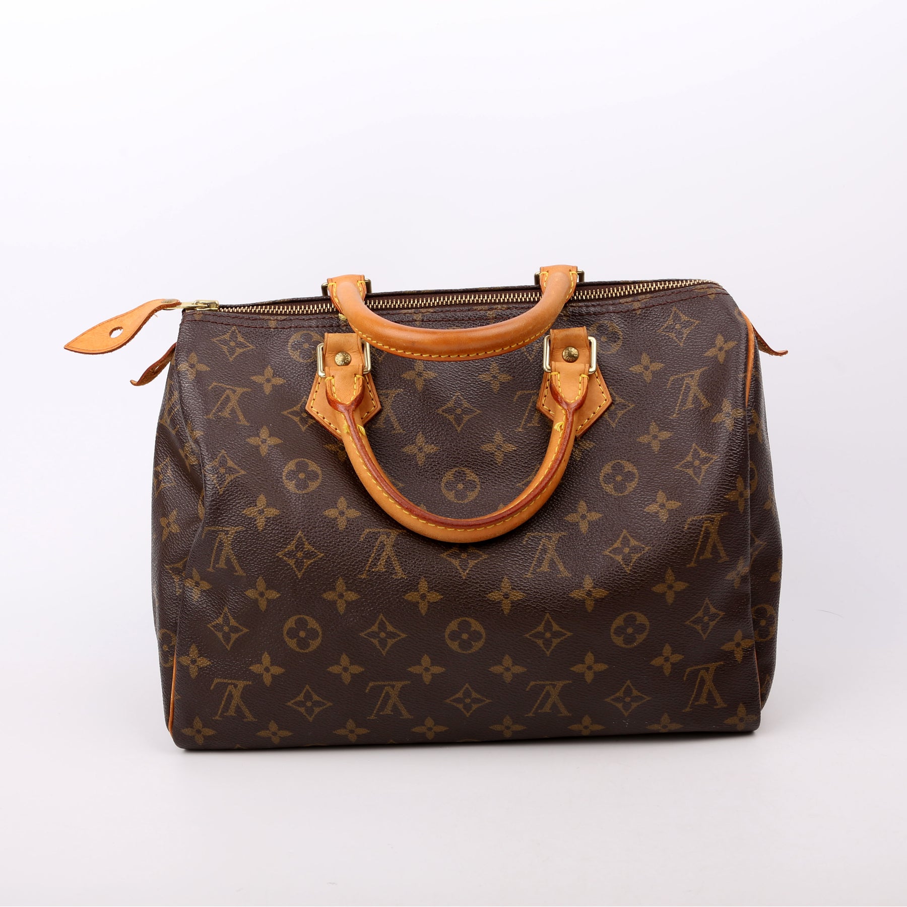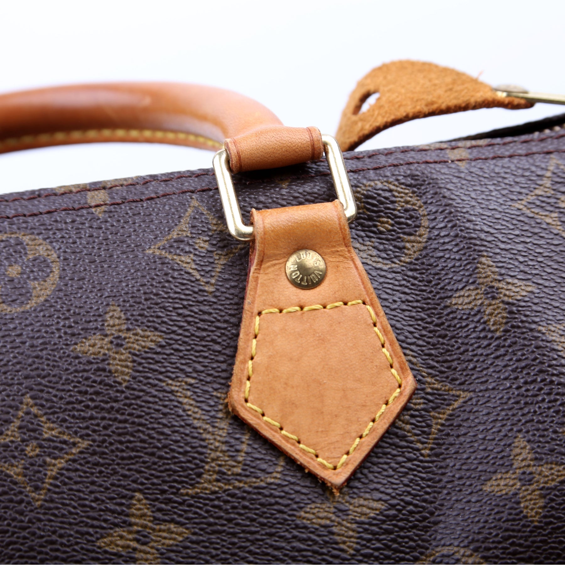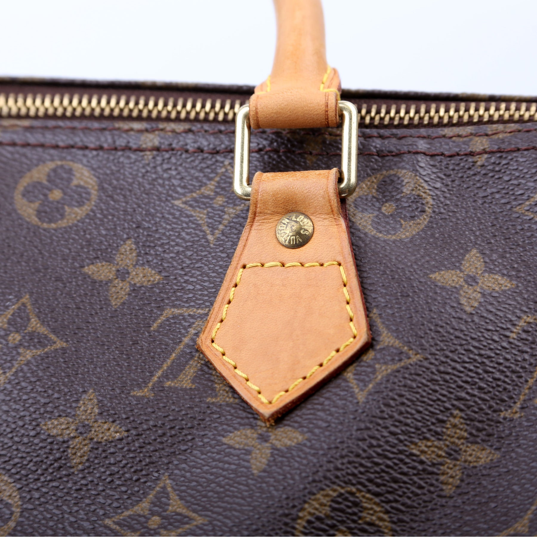This pre-owned Louis Vuitton Speedy 30 is guaranteed 100% authentic. The exterior is in the classic Louis Vuitton Monogram coated canvas.