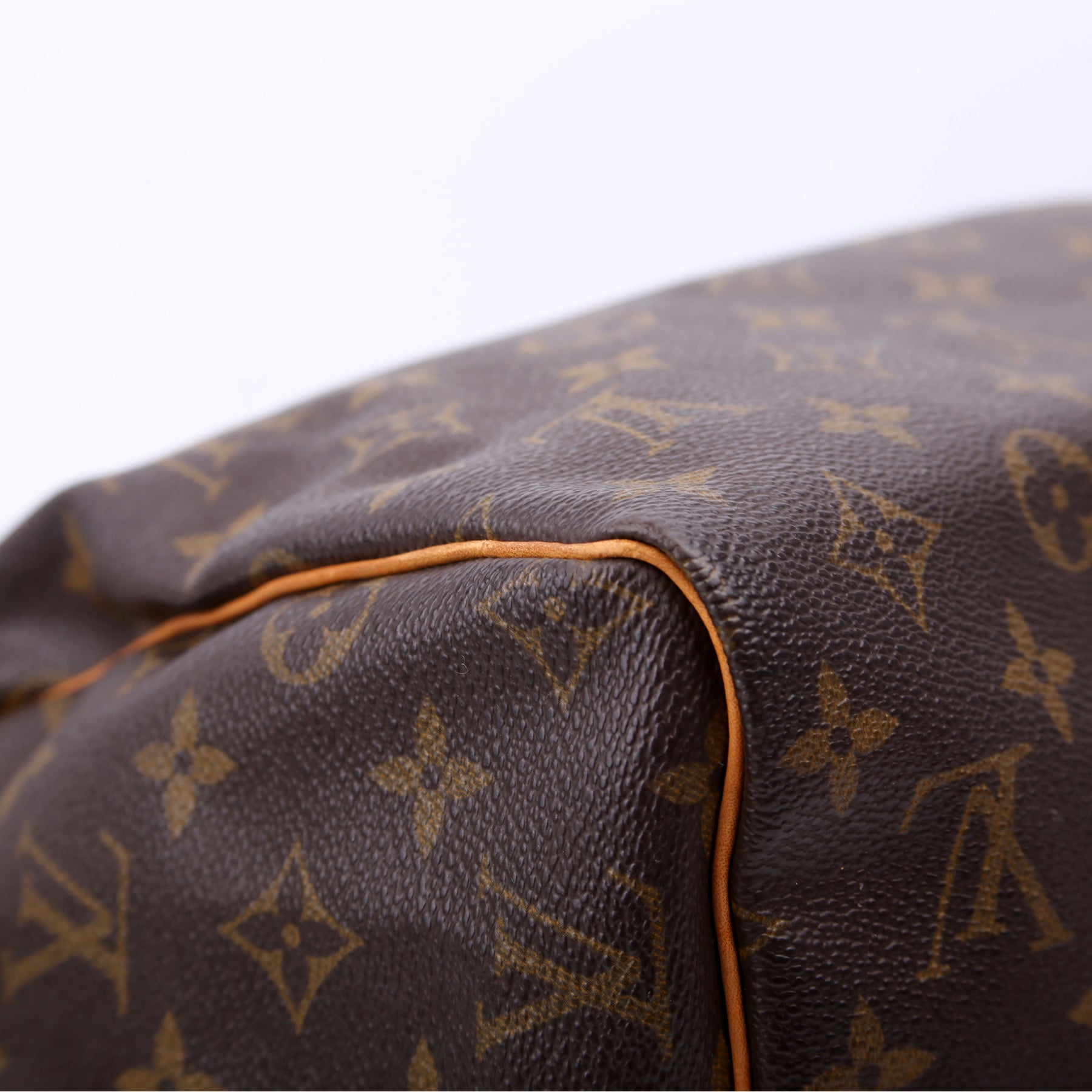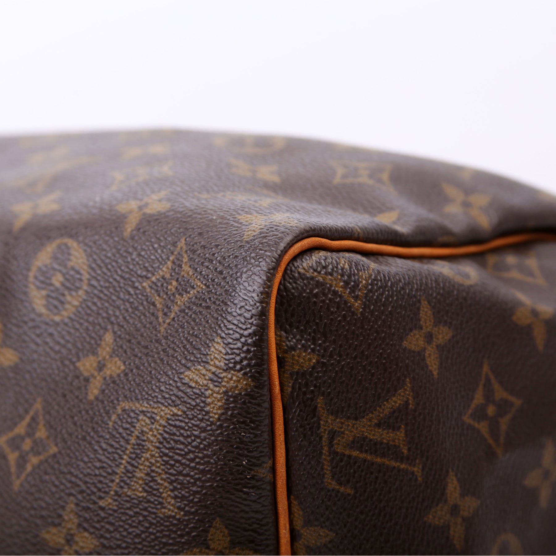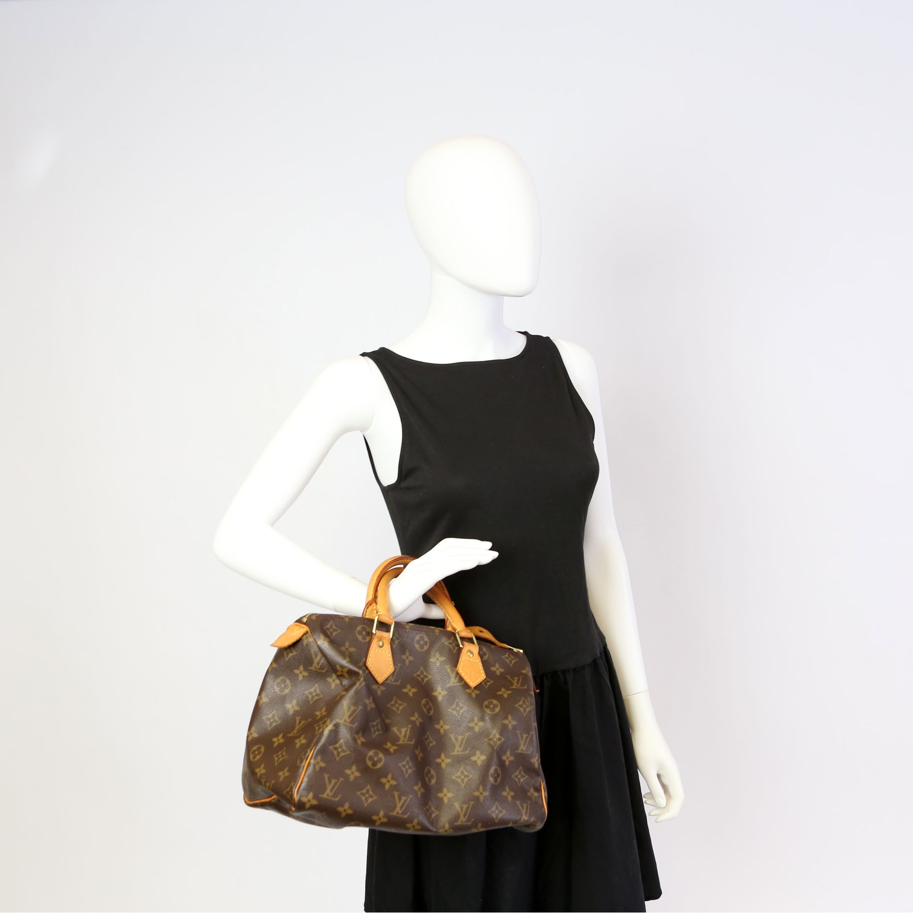 This pre-owned Louis Vuitton Speedy 30 is guaranteed 100% authentic. The exterior is in the classic Louis Vuitton Monogram coated canvas.