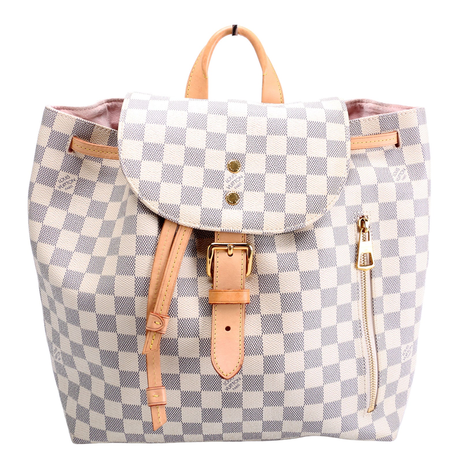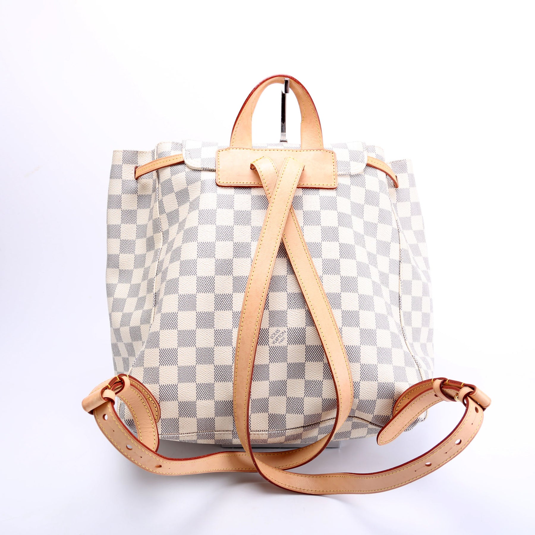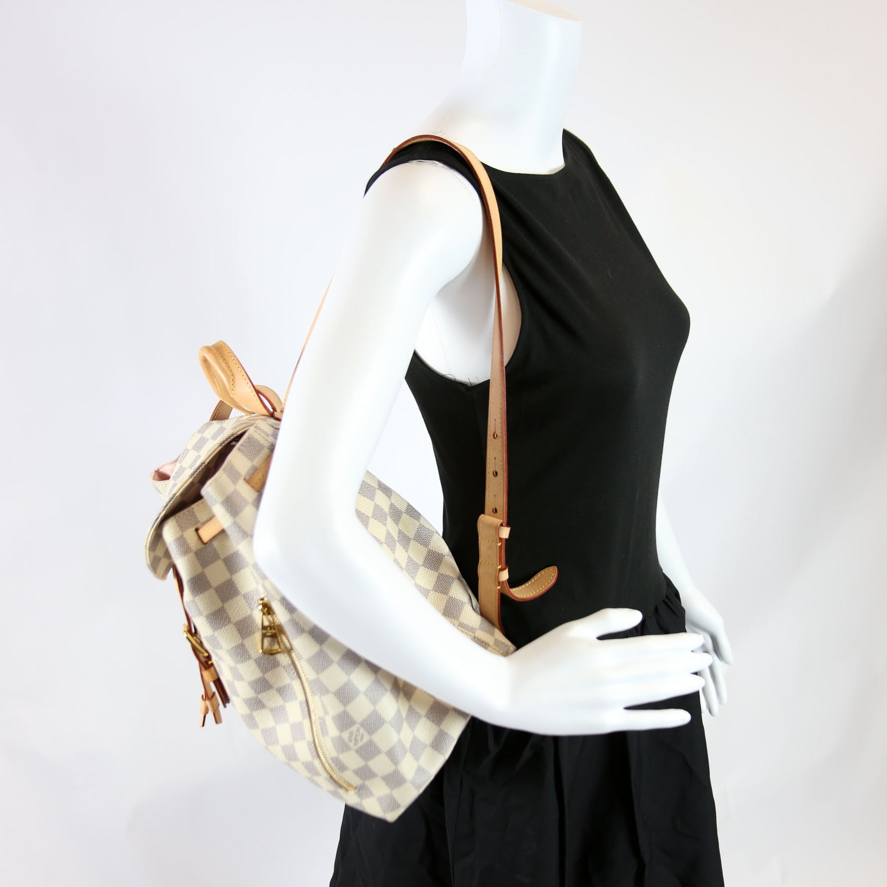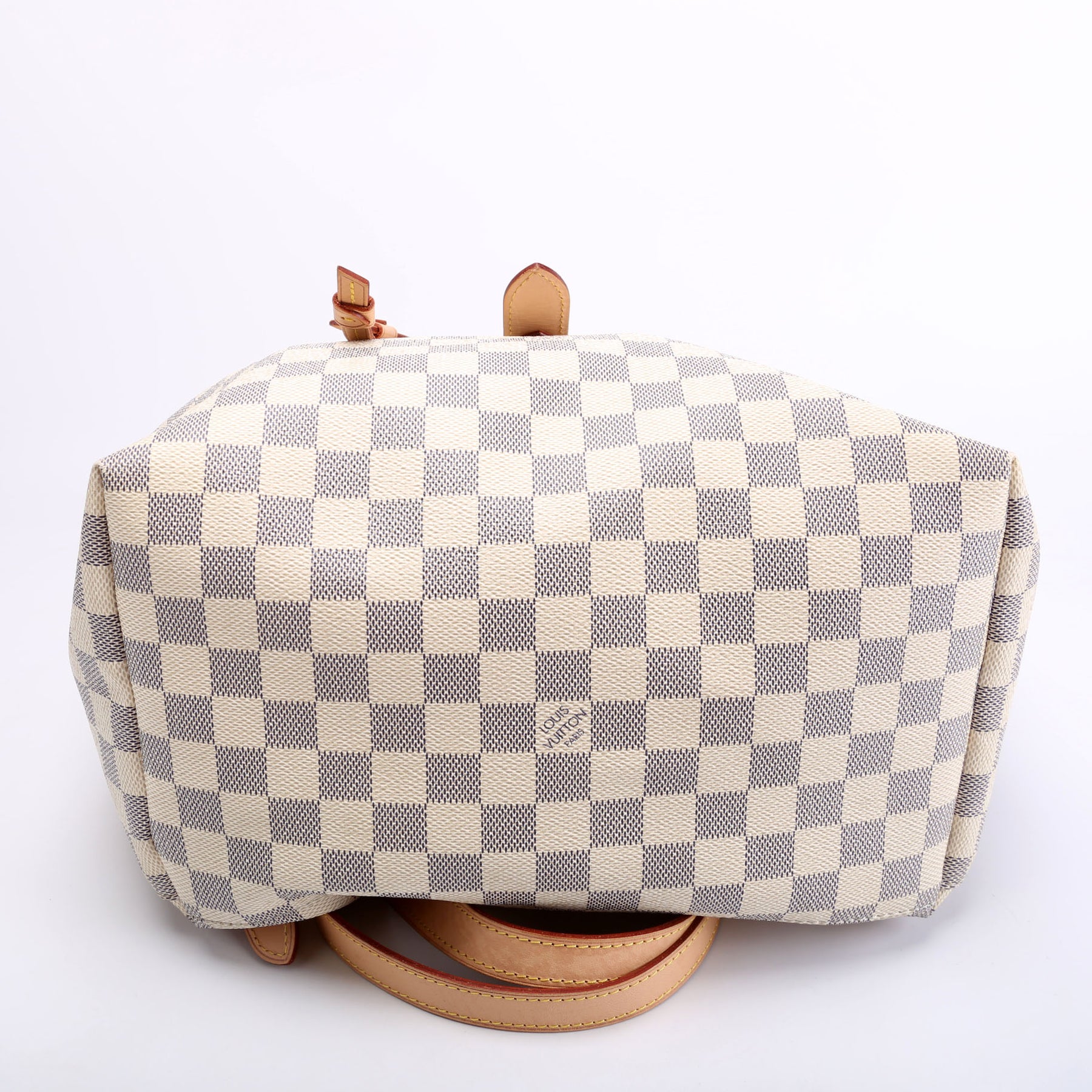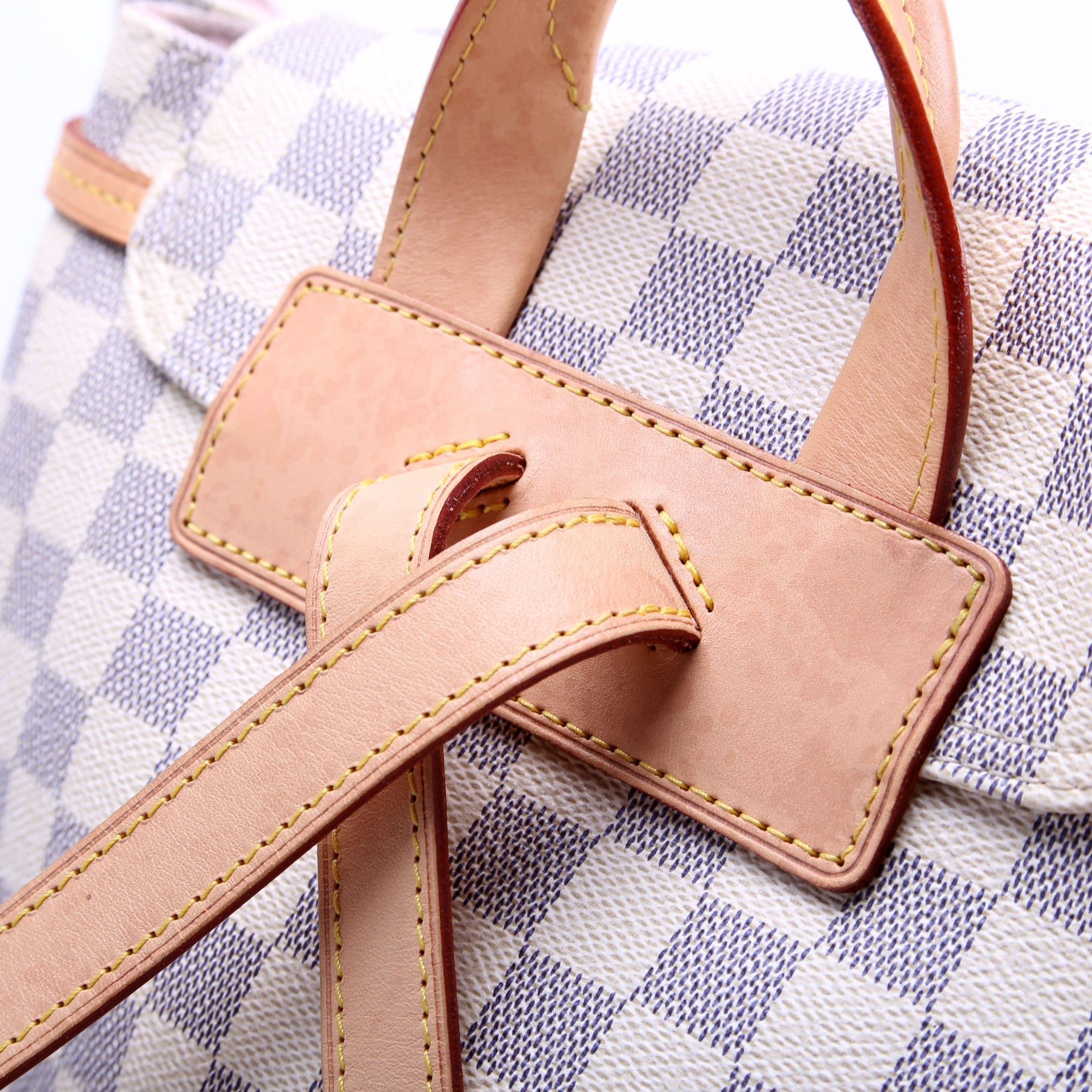 This pre-owned Louis Vuitton Sperone Backpack is guaranteed 100% authentic. The exterior is in the classic Louis Vuitton Damier Azur coated canvas.