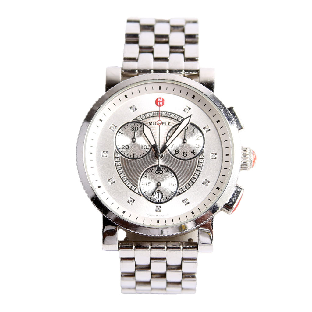This pre-owned Michele Sport Sail Stainless Steel/Diamond Watch is guaranteed 100% authentic.