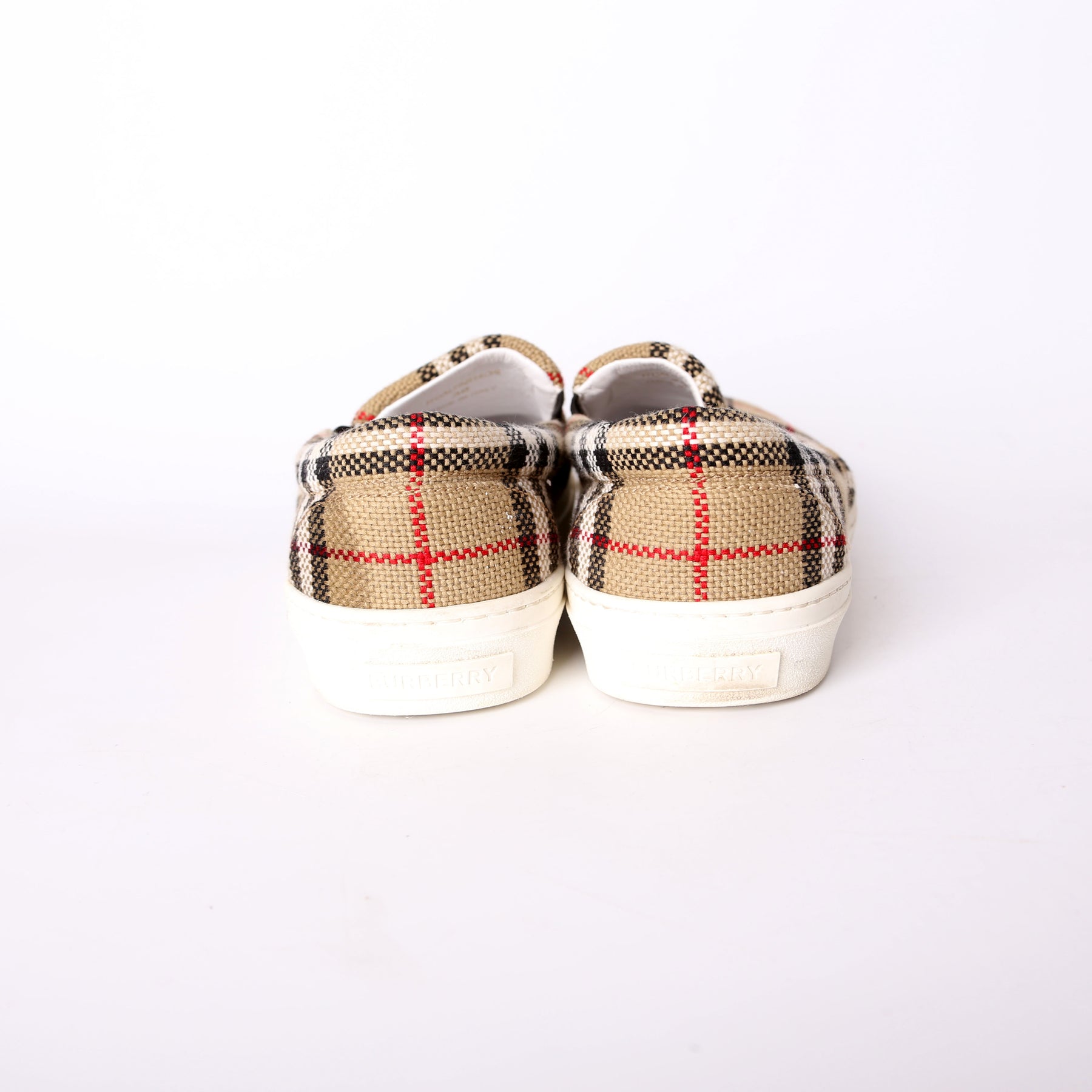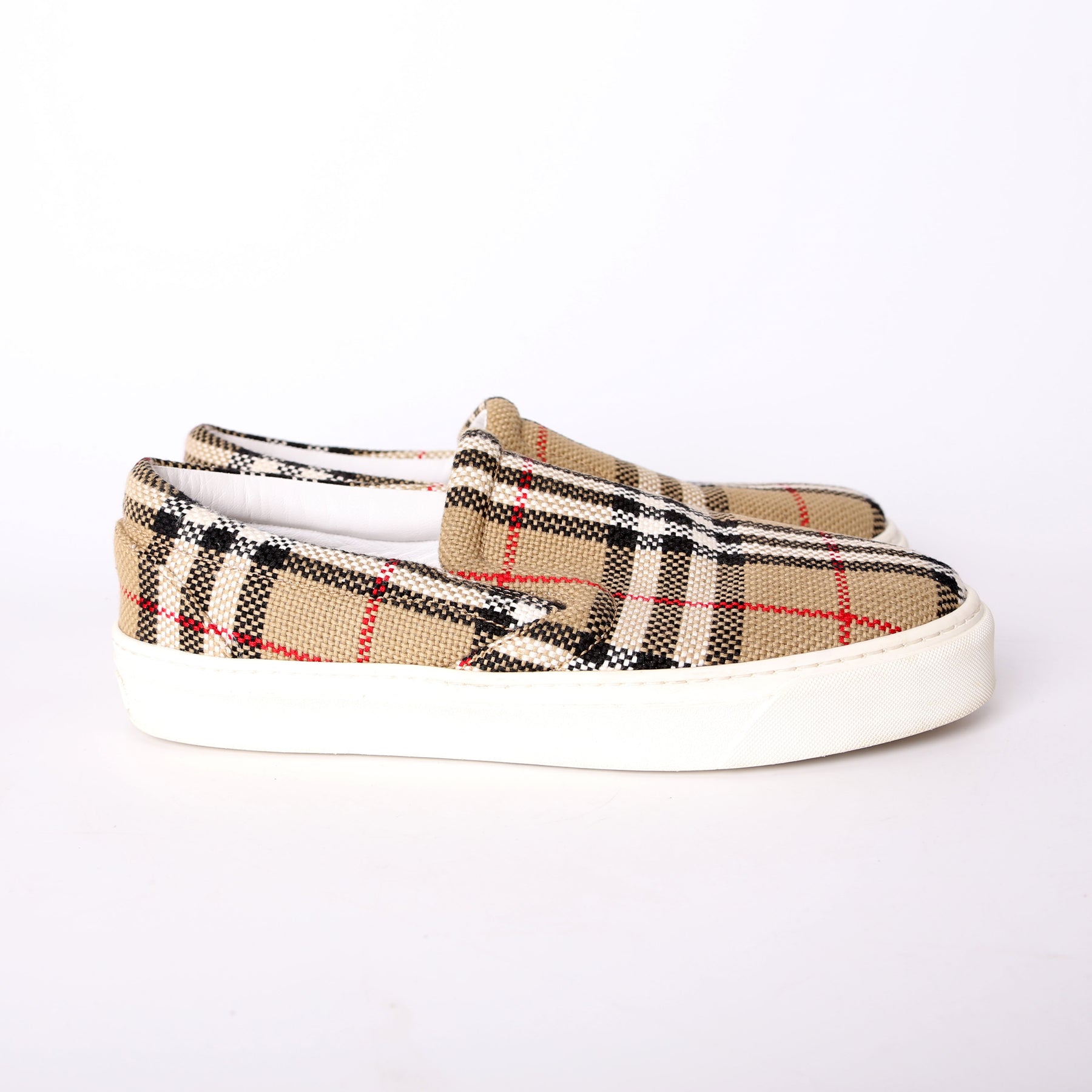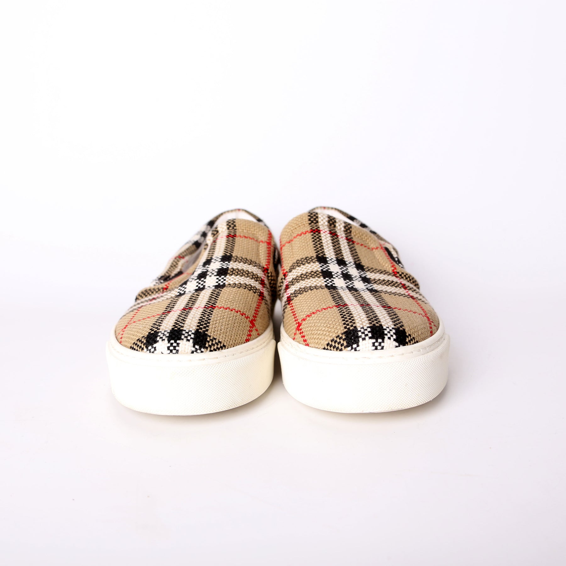 These pre-owned Burberry Thompson Knitted Vintage Check Slip On Sneakers are guaranteed 100% authentic.