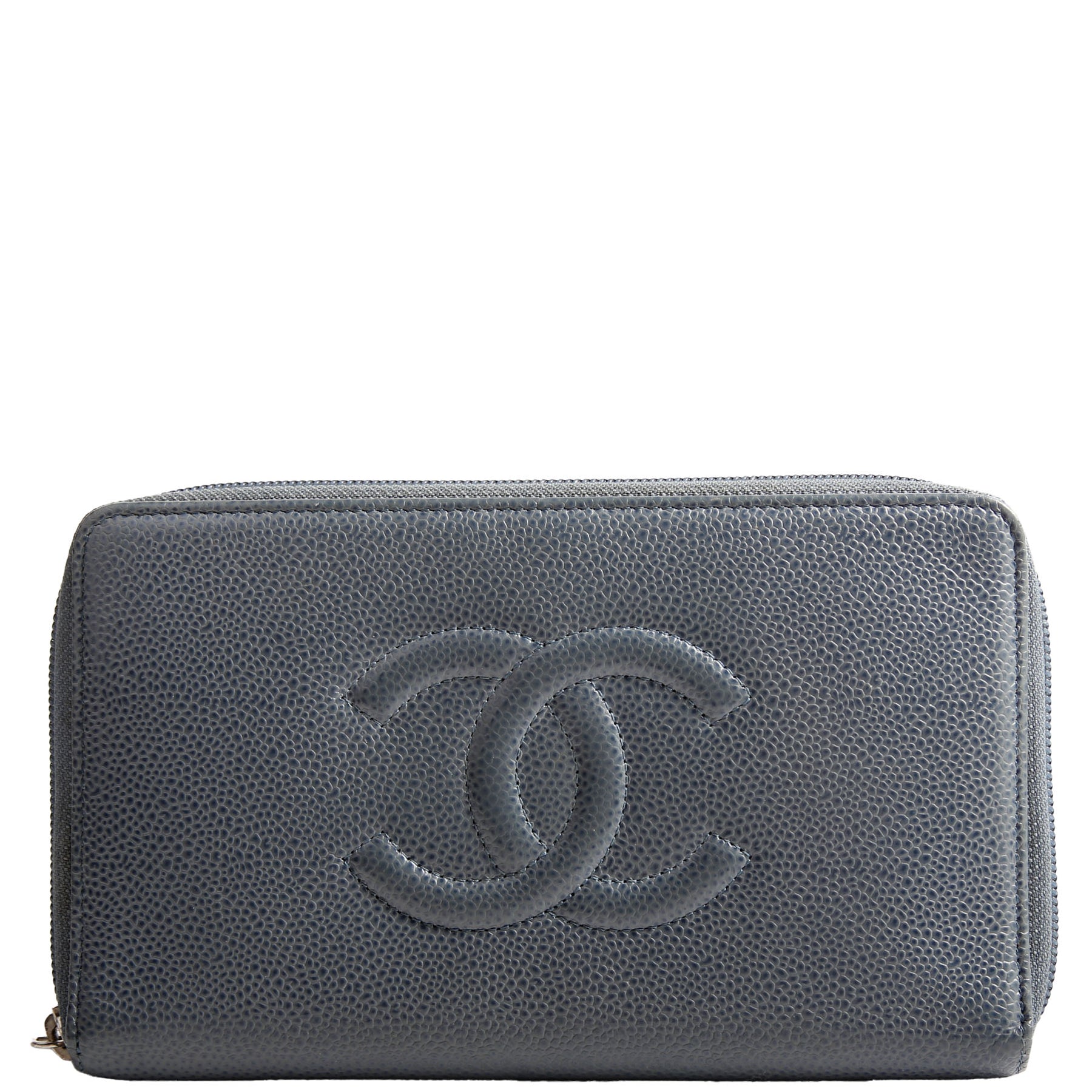 This pre-owned Chanel CC Timeless Zip Around Organizer Wallet is guaranteed 100% authentic.