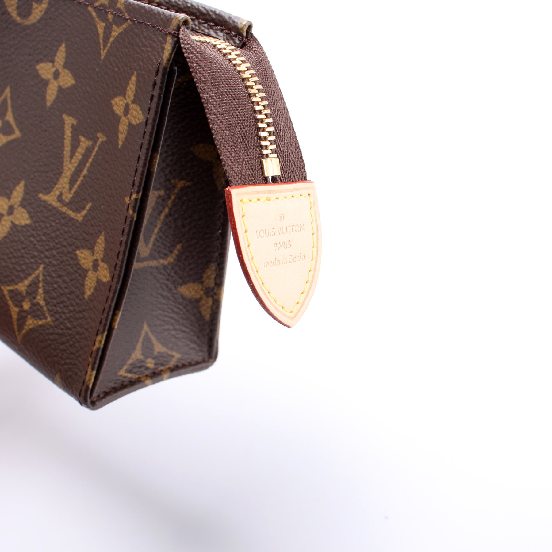 This pre-owned Louis Vuitton Toiletry Pouch 15 is guaranteed 100% authentic. The exterior is in the classic Louis Vuitton Monogram coated canvas.