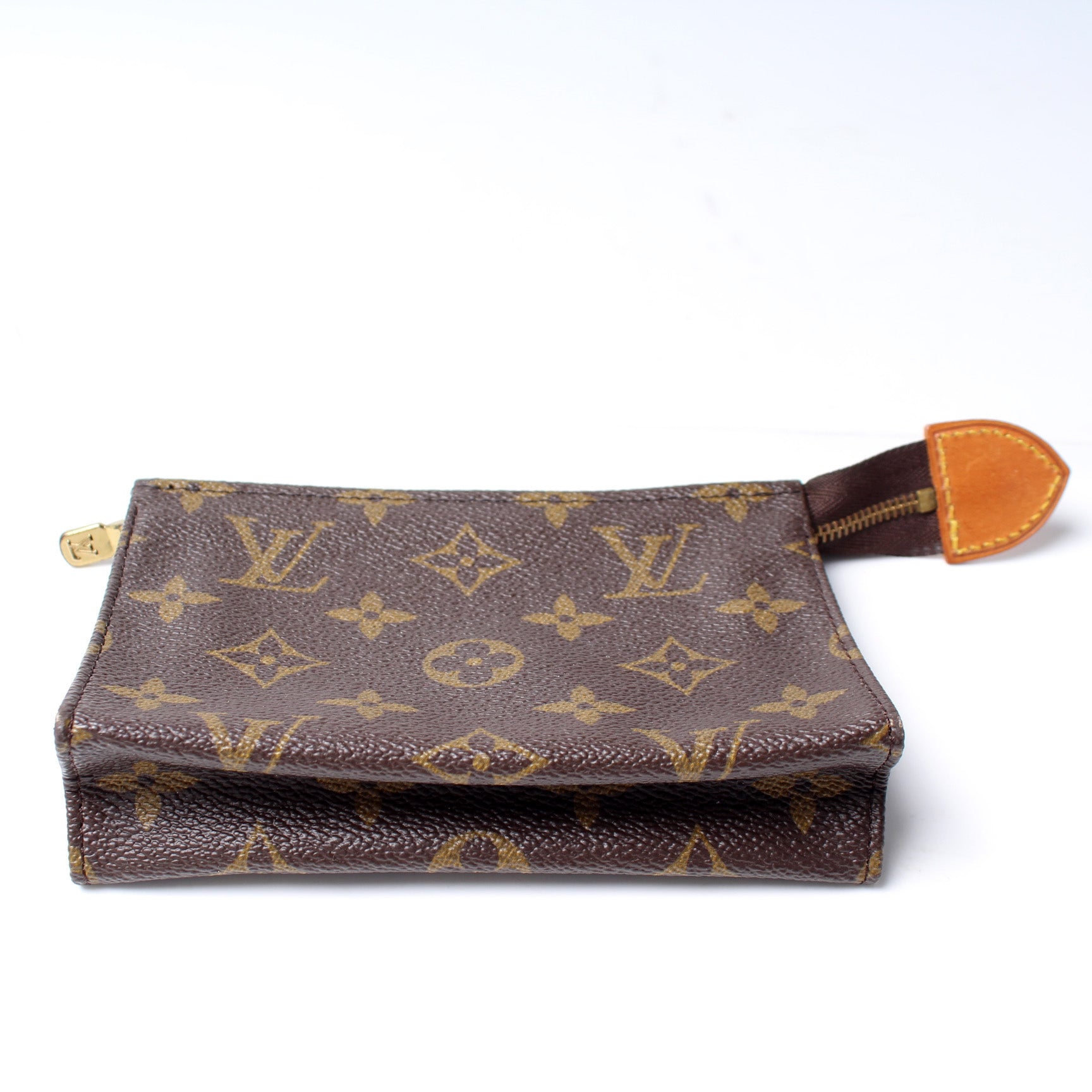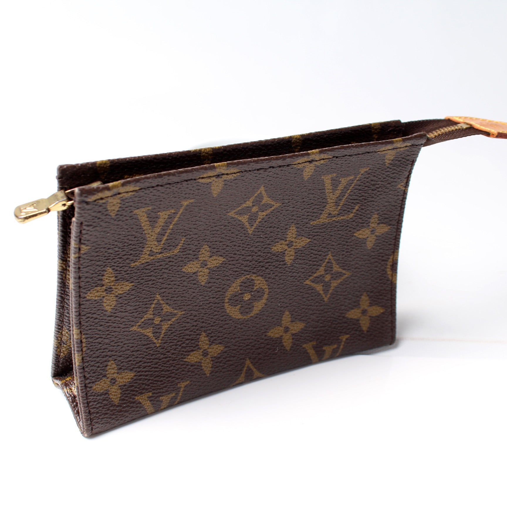 This pre-owned Louis Vuitton Toiletry Pouch 15 is guaranteed 100% authentic. The exterior is in the classic Louis Vuitton Monogram coated canvas.