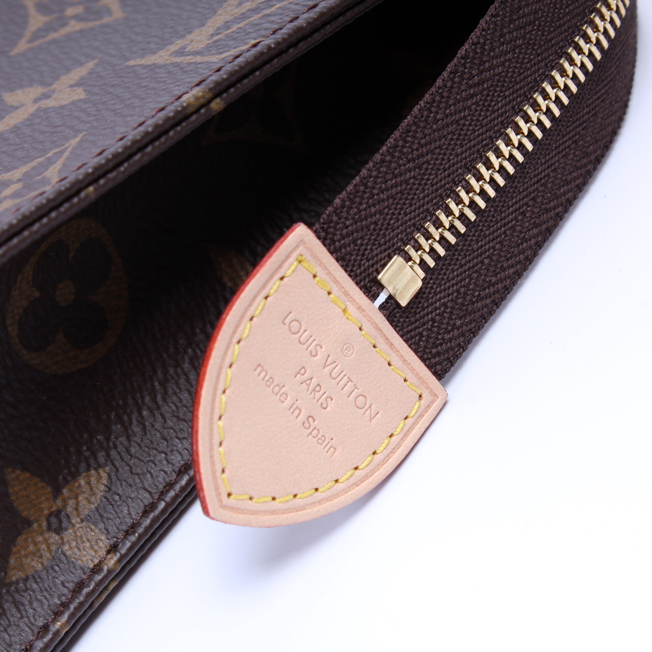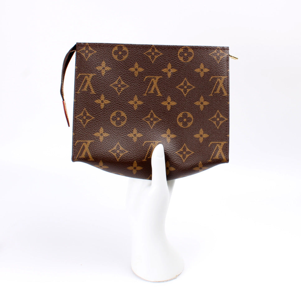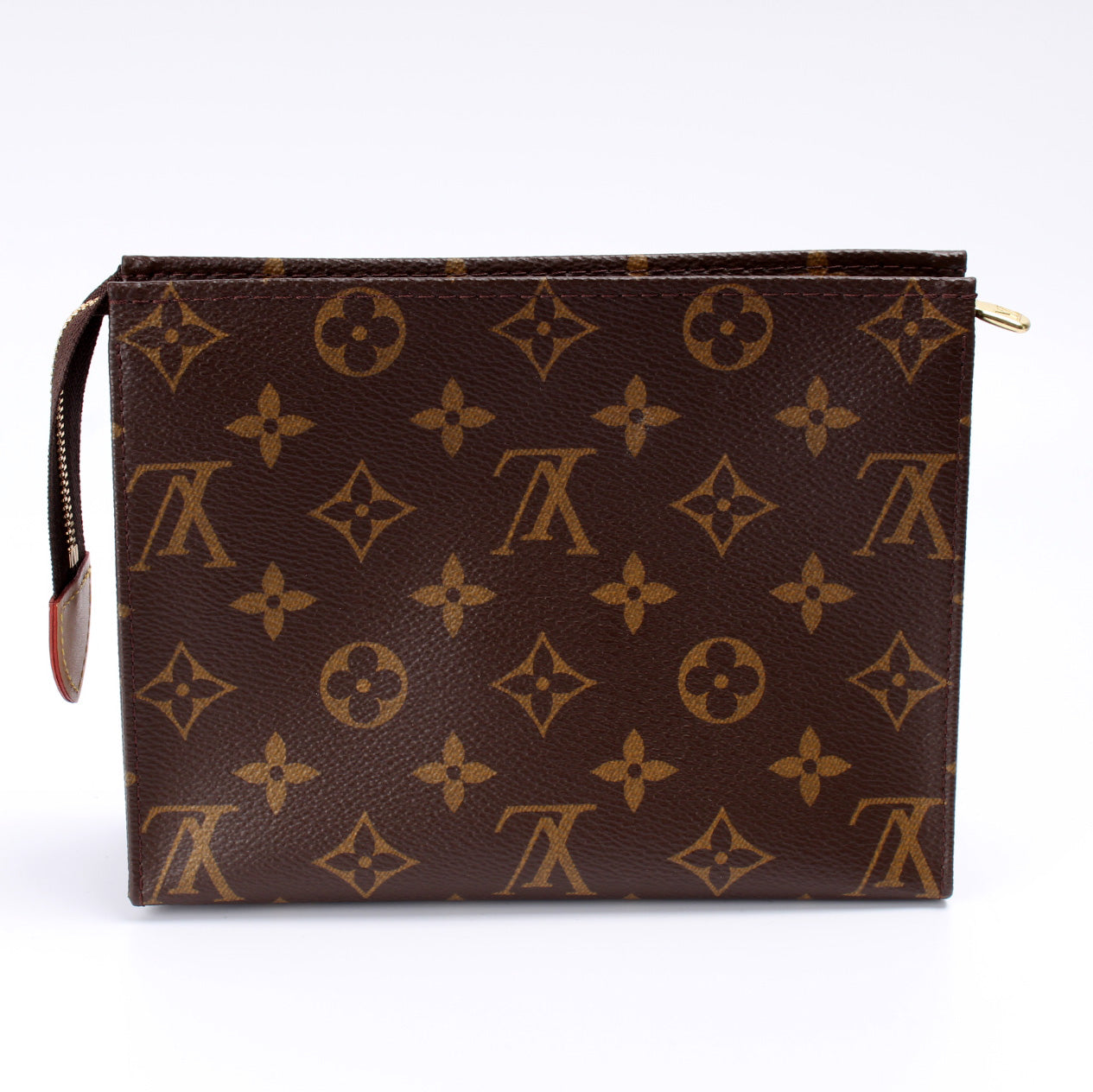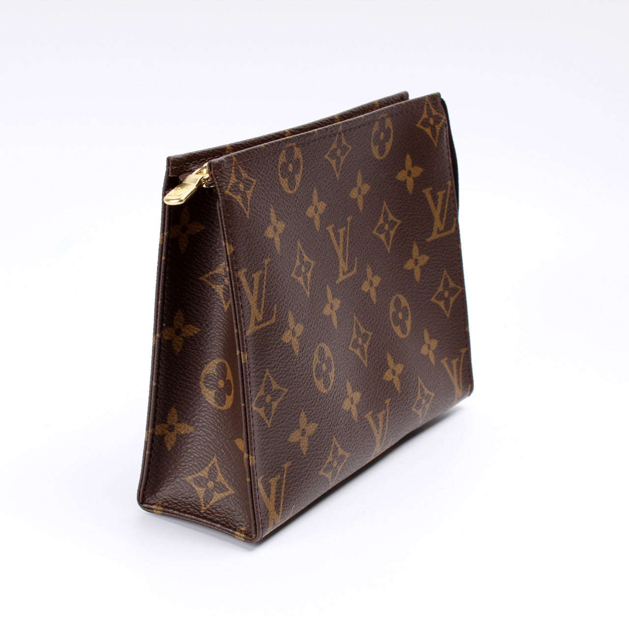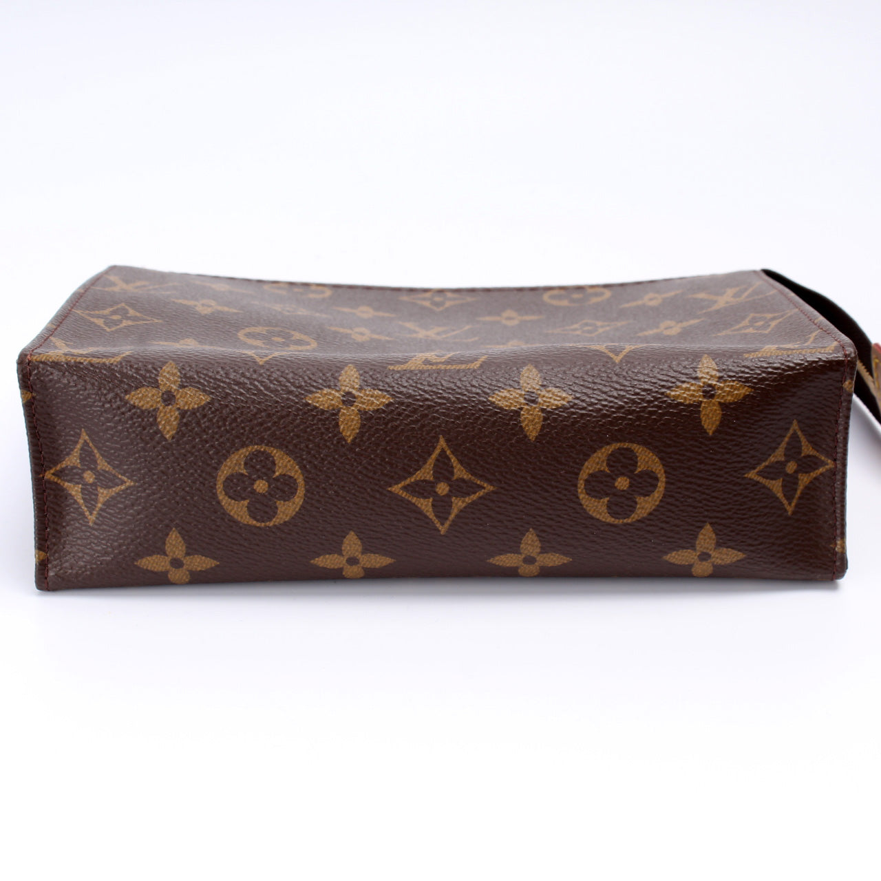 This pre-owned Louis Vuitton Toiletry Pouch 19 is guaranteed 100% authentic. The exterior is in the classic Louis Vuitton Monogram coated canvas.