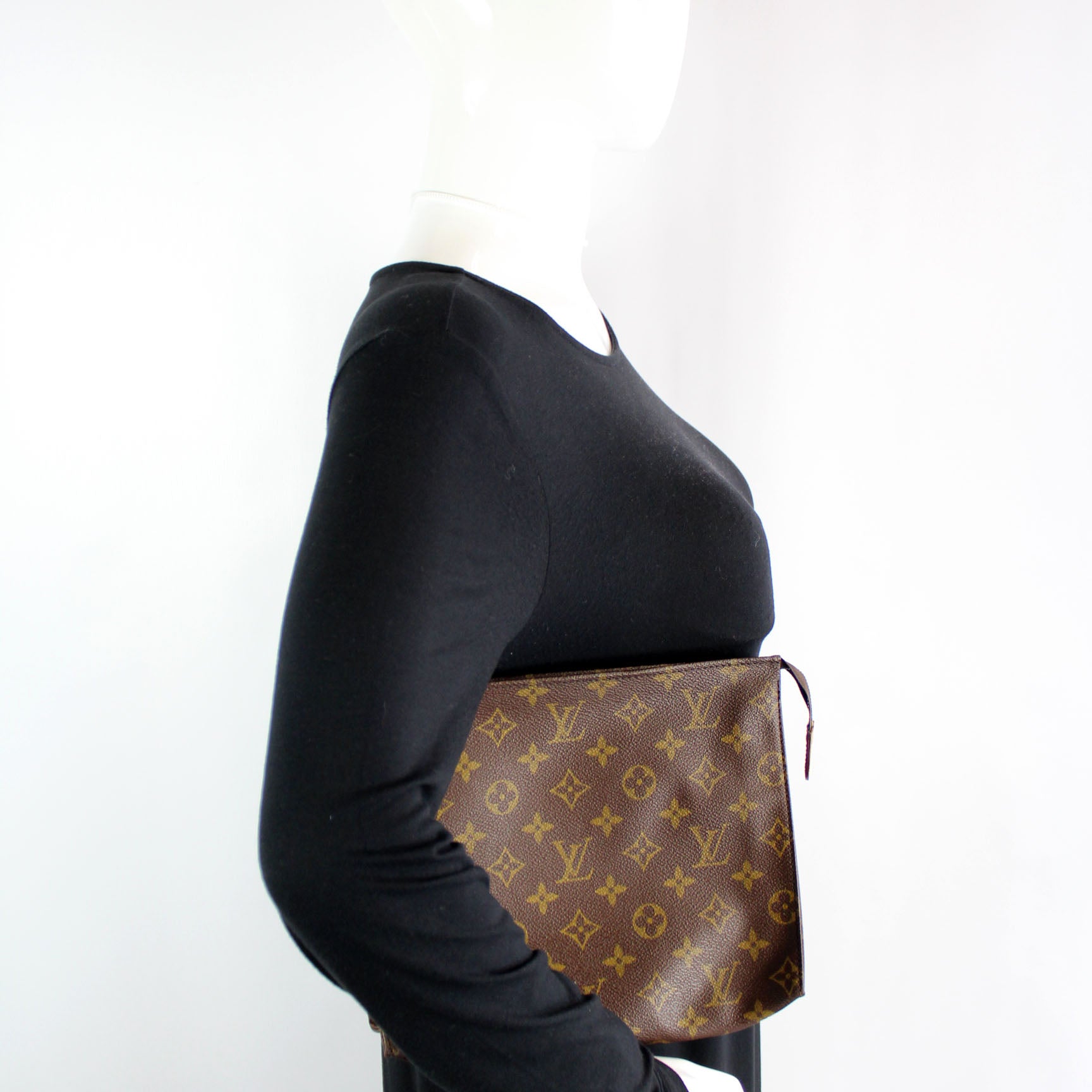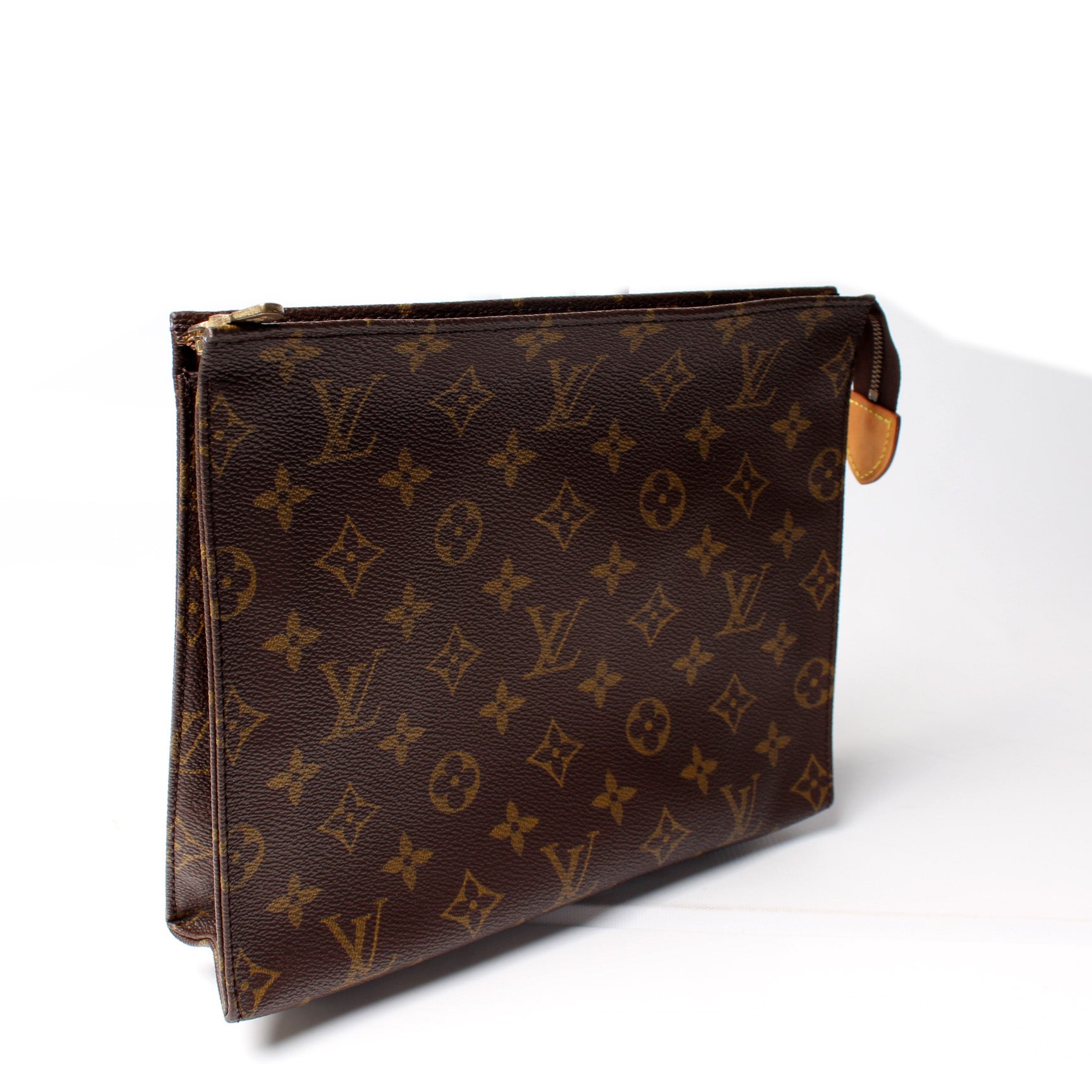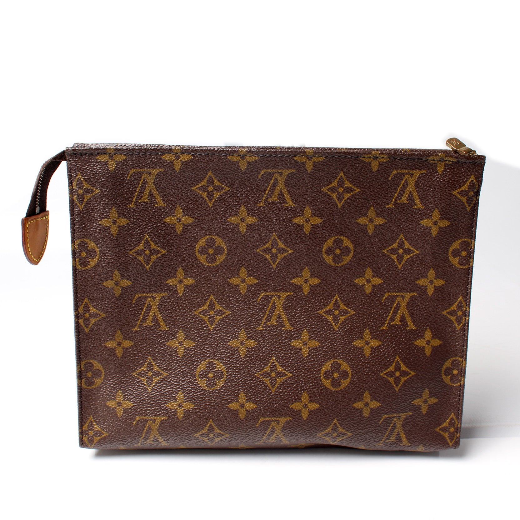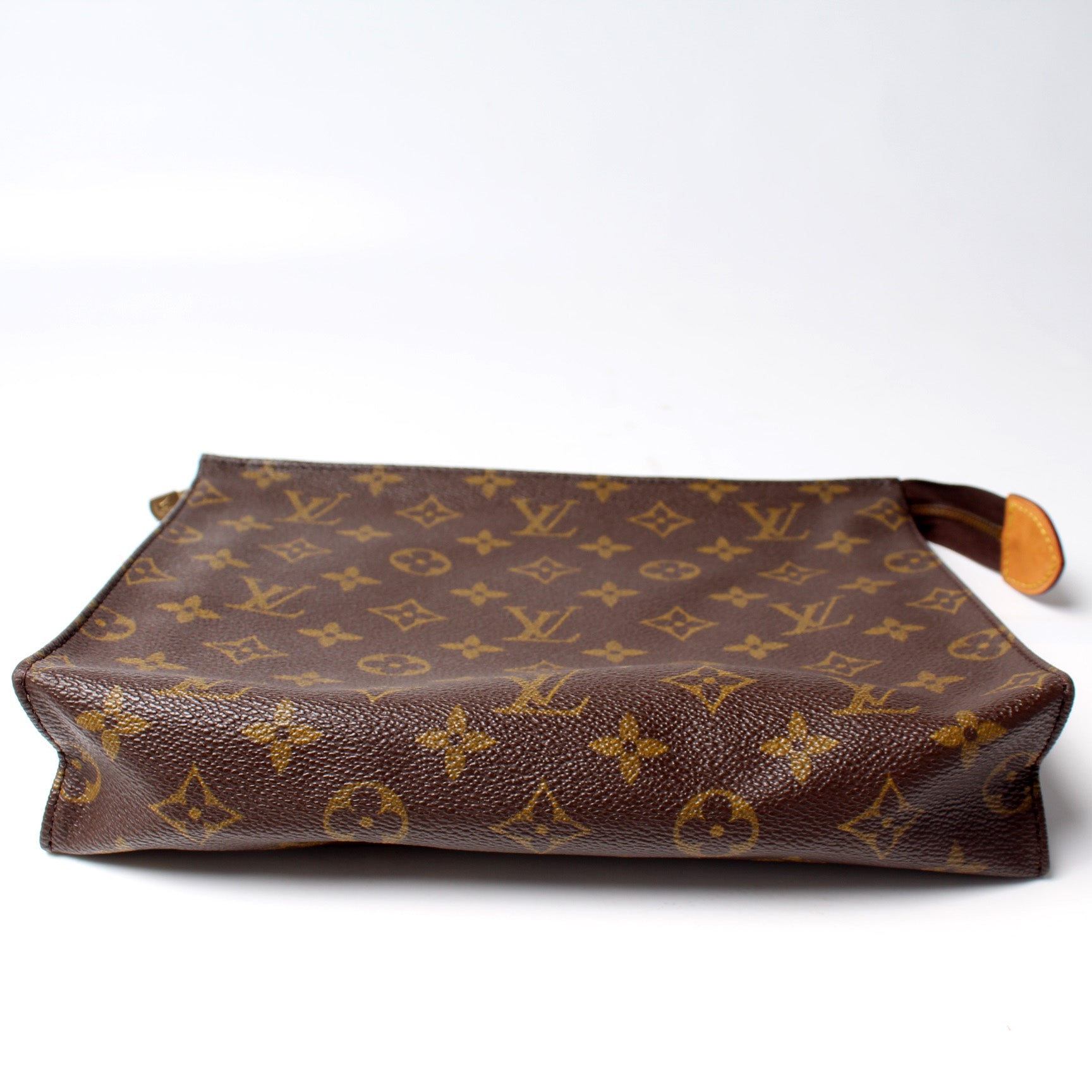 This pre-owned Louis Vuitton Toiletry Pouch 26 Vintage is guaranteed 100% authentic. The exterior is in the classic Monogram coated canvas.