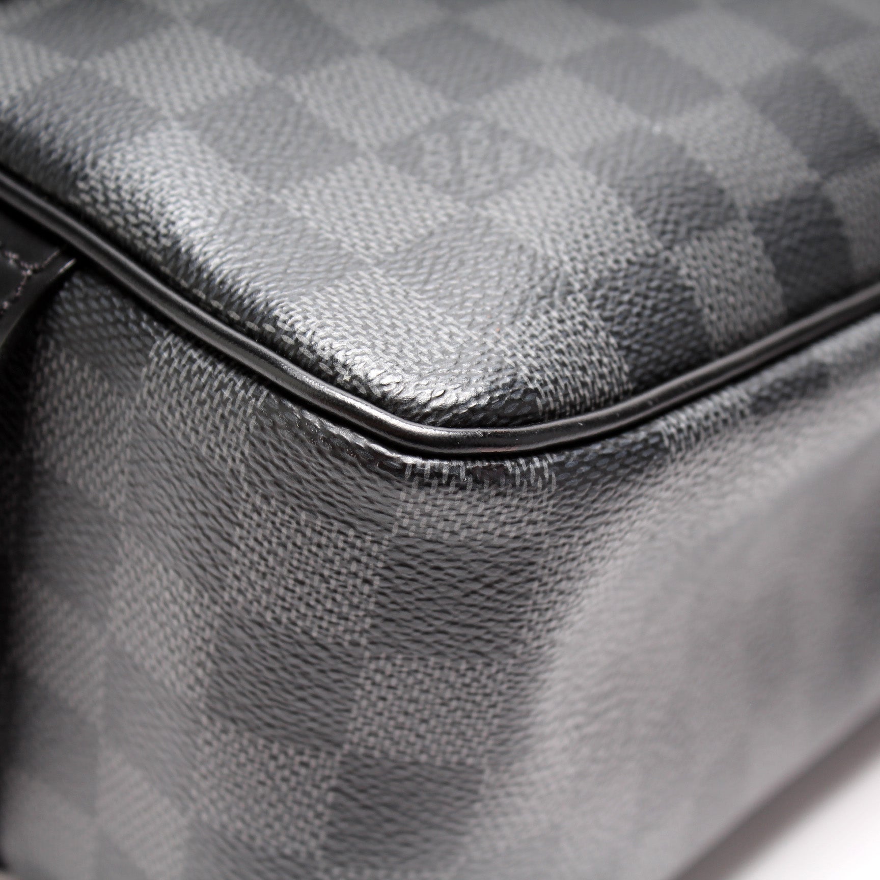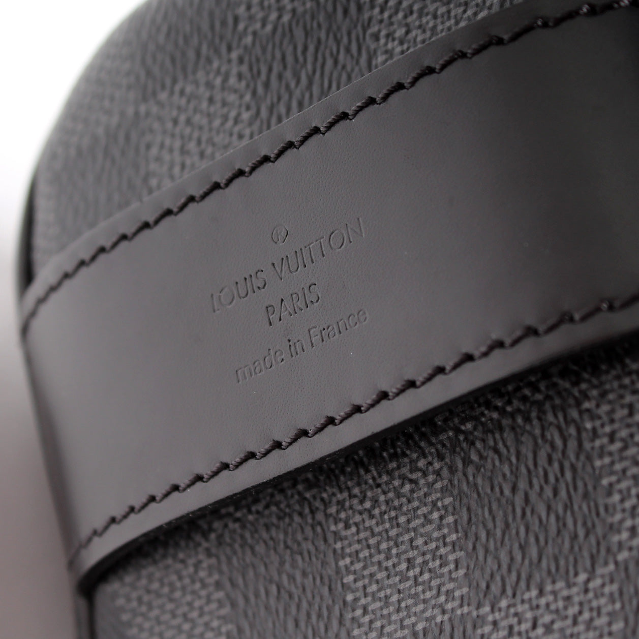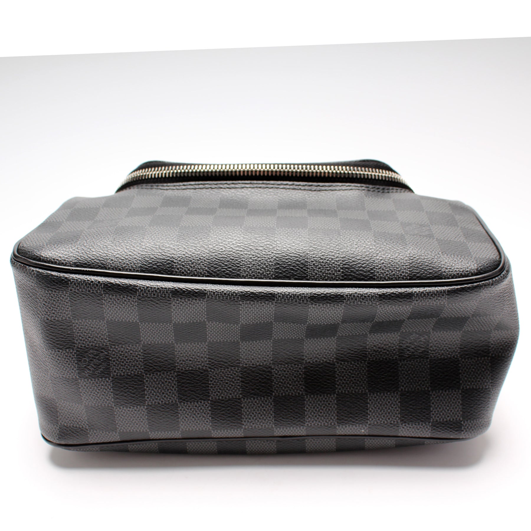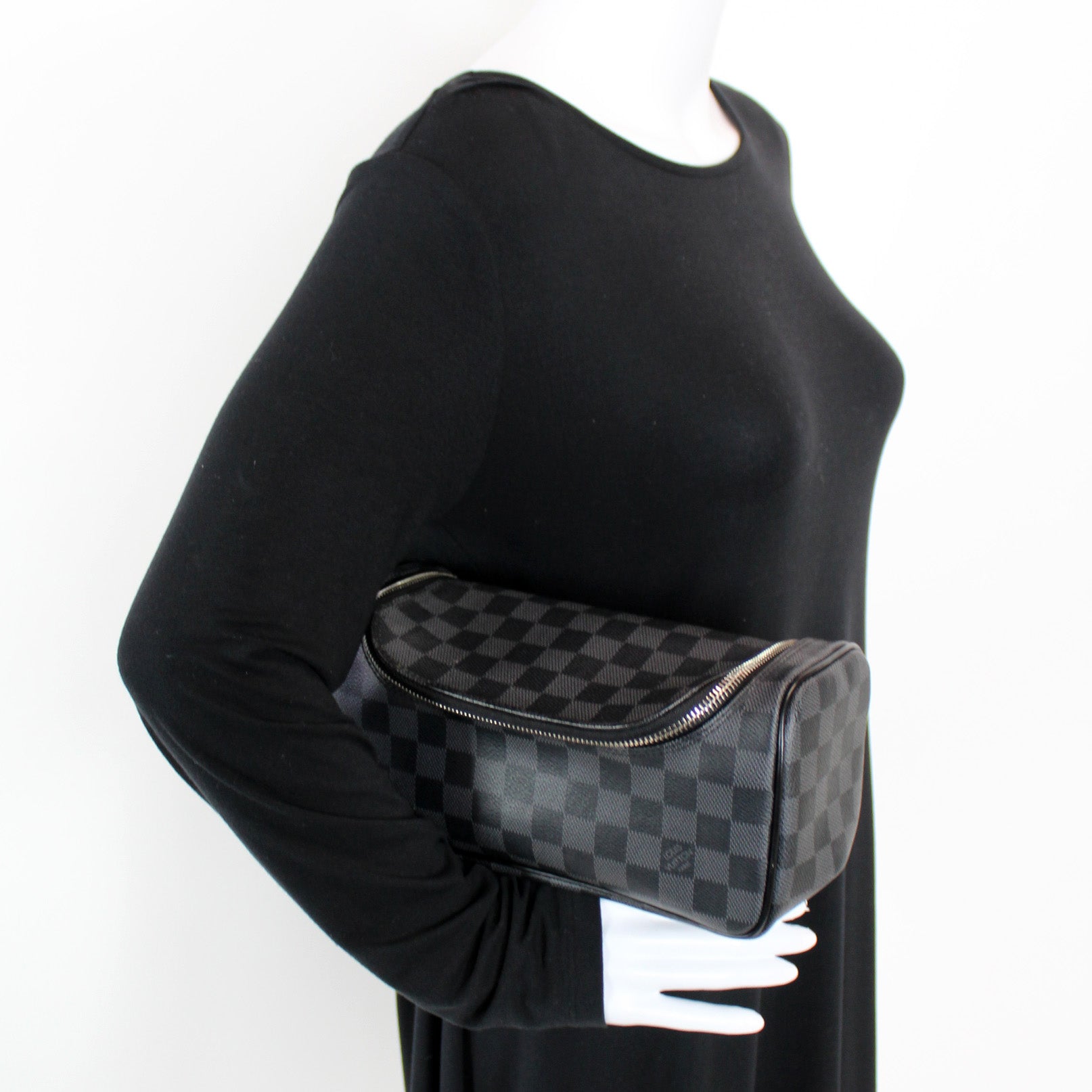 This pre-owned Louis Vuitton Toiletry Pouch is guaranteed 100% authentic. The exterior is in the classic Louis Vuitton Damier Graphite coated canvas.