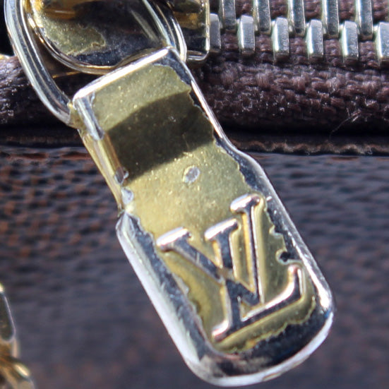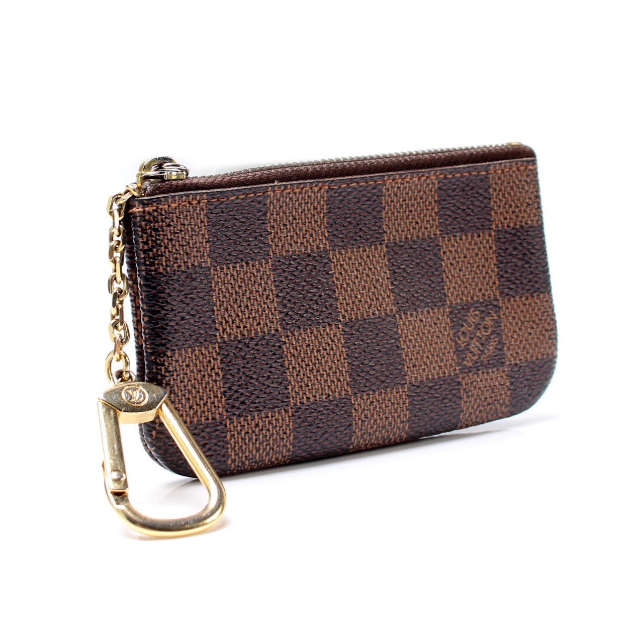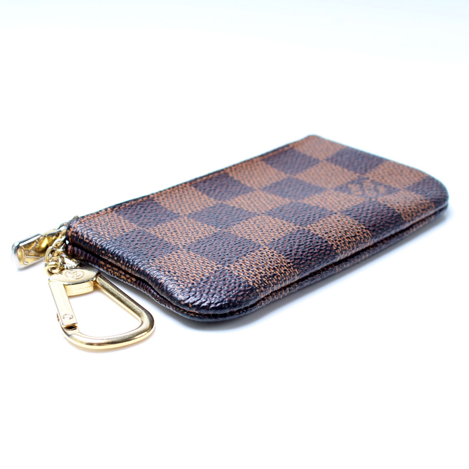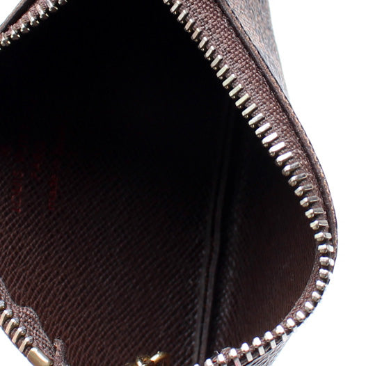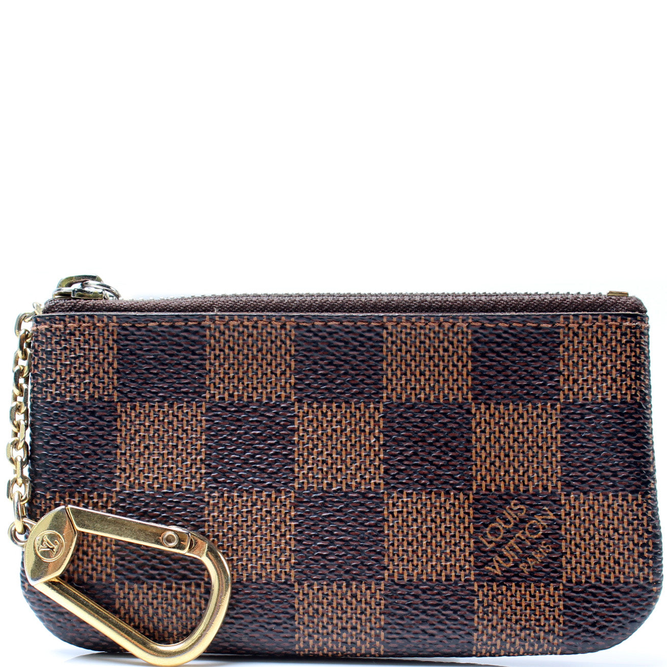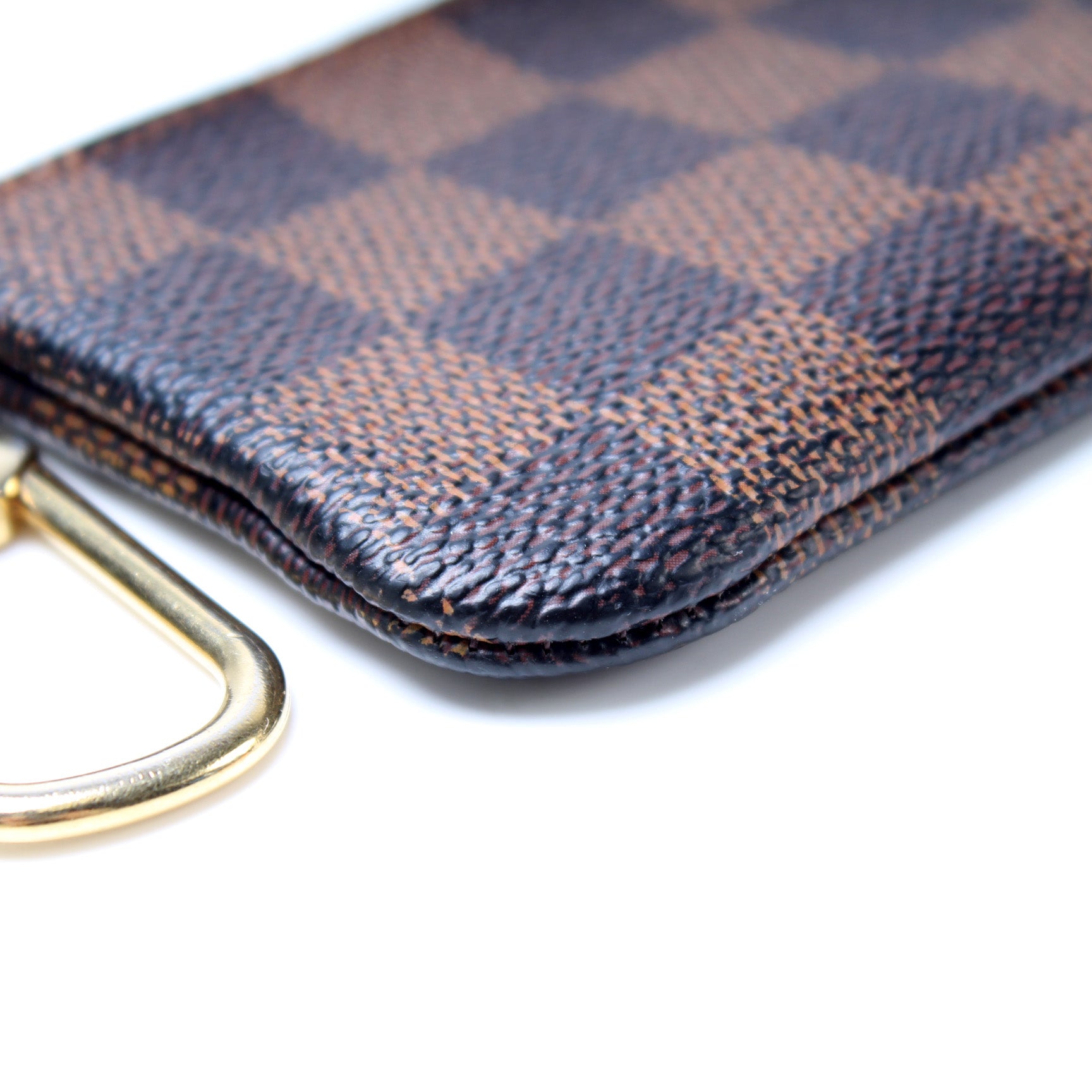 This pre-owned Louis Vuitton Pochette Cles is guaranteed 100% authentic. The exterior is in the classic Louis Vuitton Damier Ebene coated canvas.