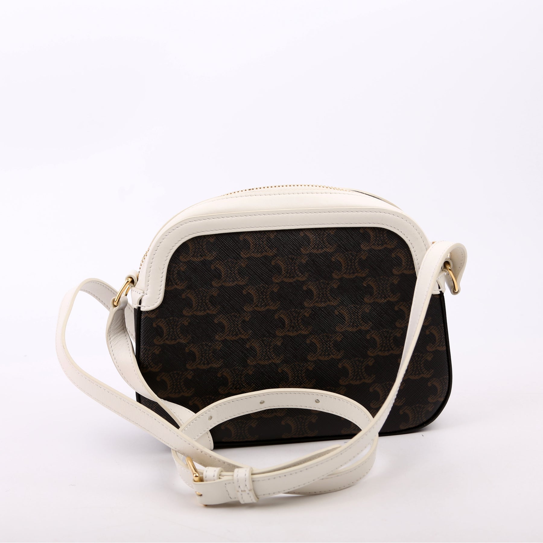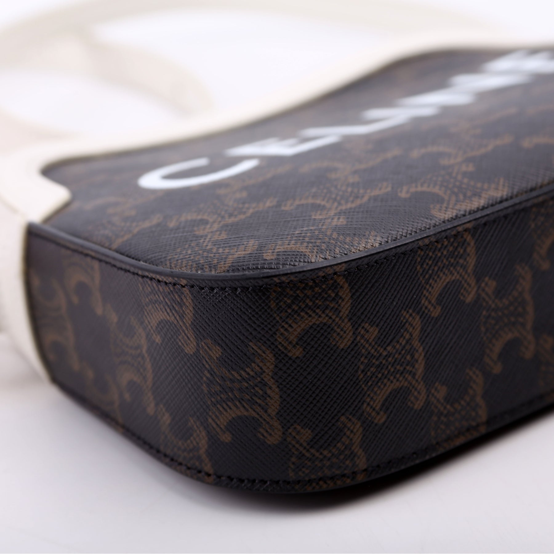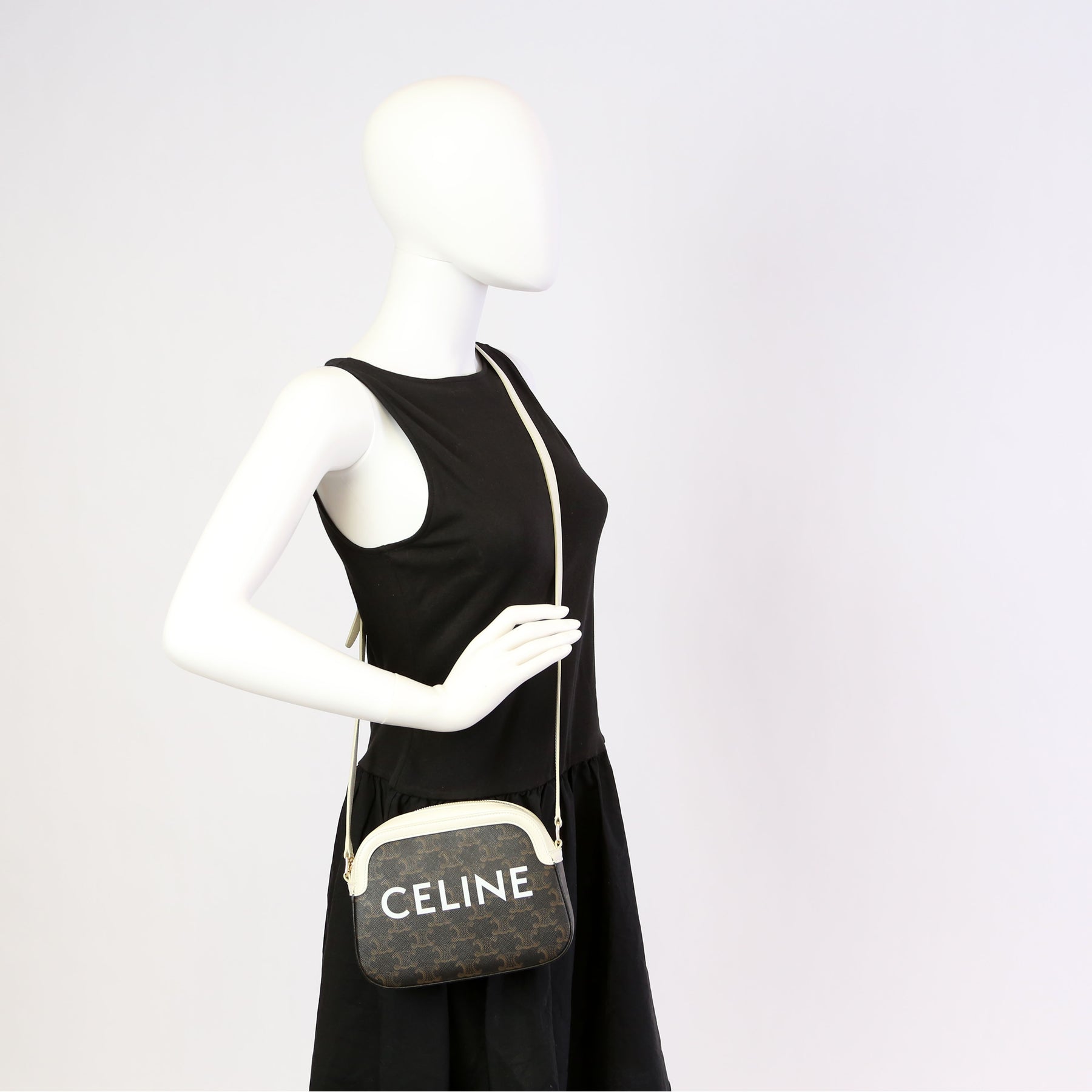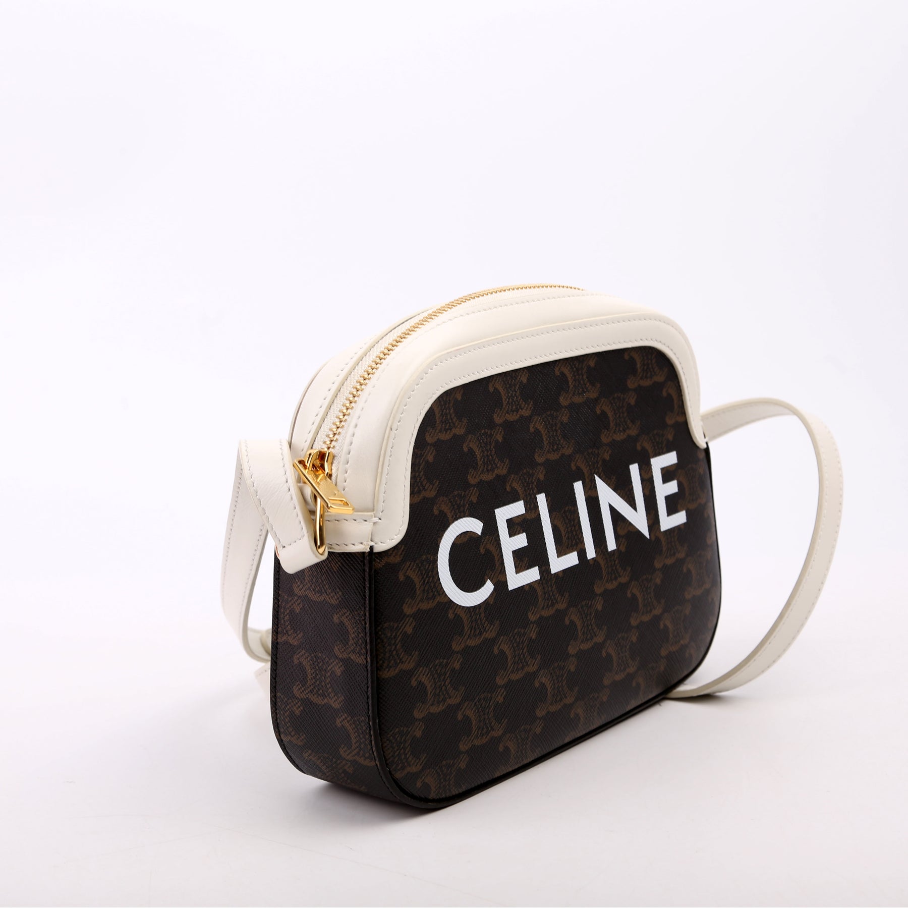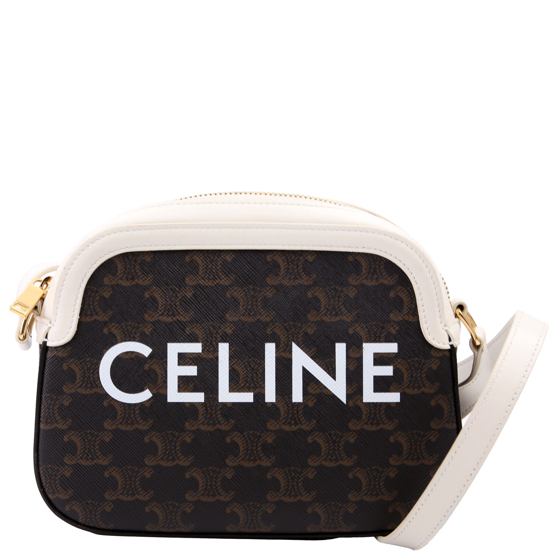 This pre-owned Celine Triomphe Canvas Camera Small is guaranteed 100% authentic. The exterior is in the classic Celine Triomphe canvas.