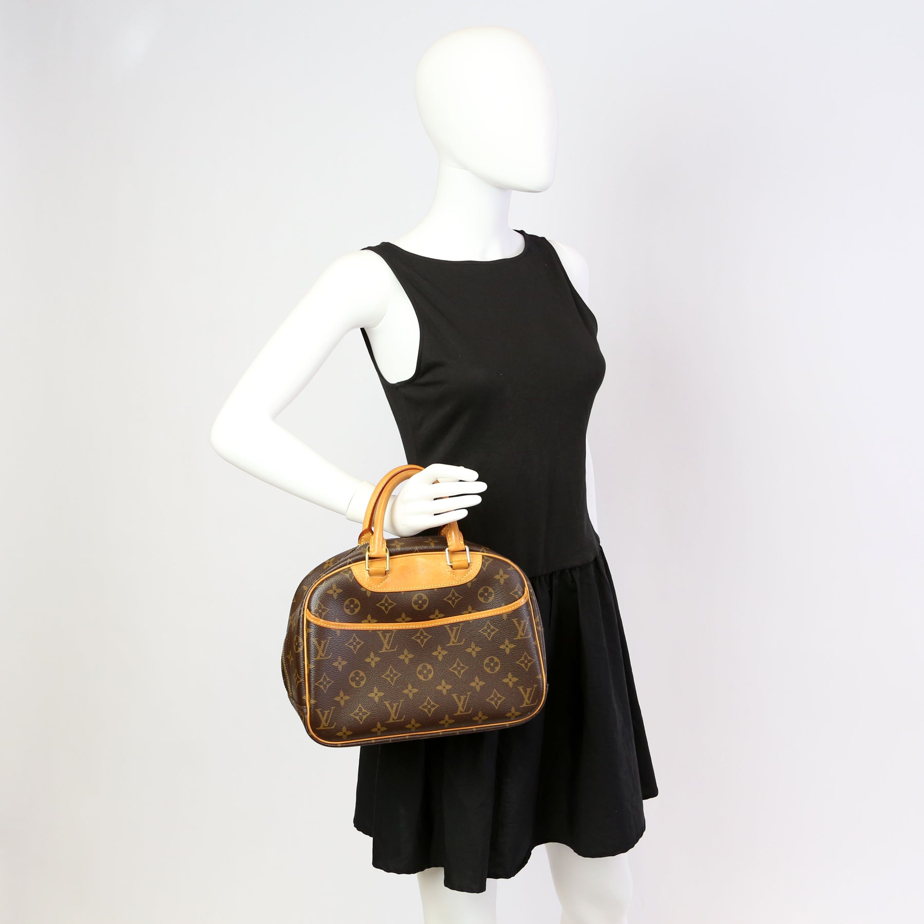 This pre-owned Louis Vuitton Trouville is guaranteed 100% authentic. The exterior is in the classic Louis Vuitton Monogram coated canvas.