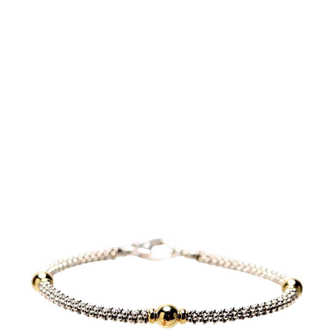 This pre-owned Lagos Two-Tone Station Caviar 3mm Bracelet 925/750 is guaranteed 100% authentic.