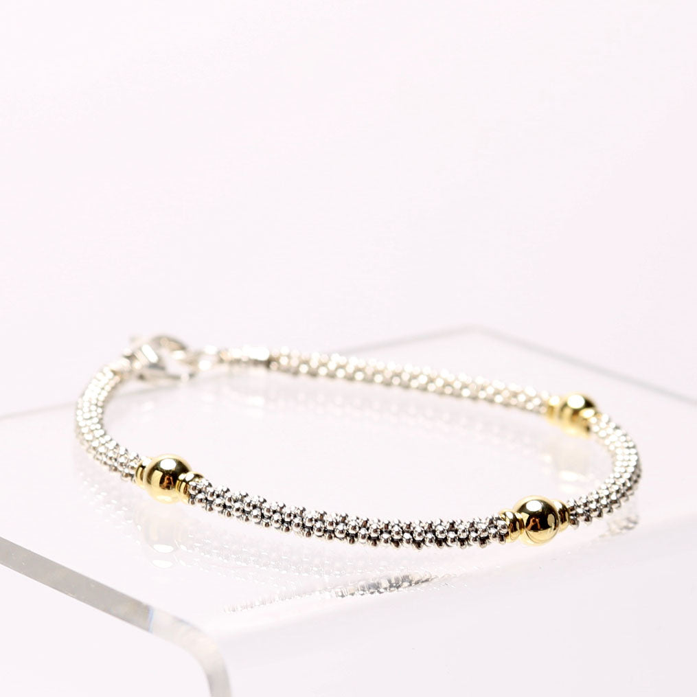 Two-Tone Station Caviar 3MM Bracelet Size M 925/750