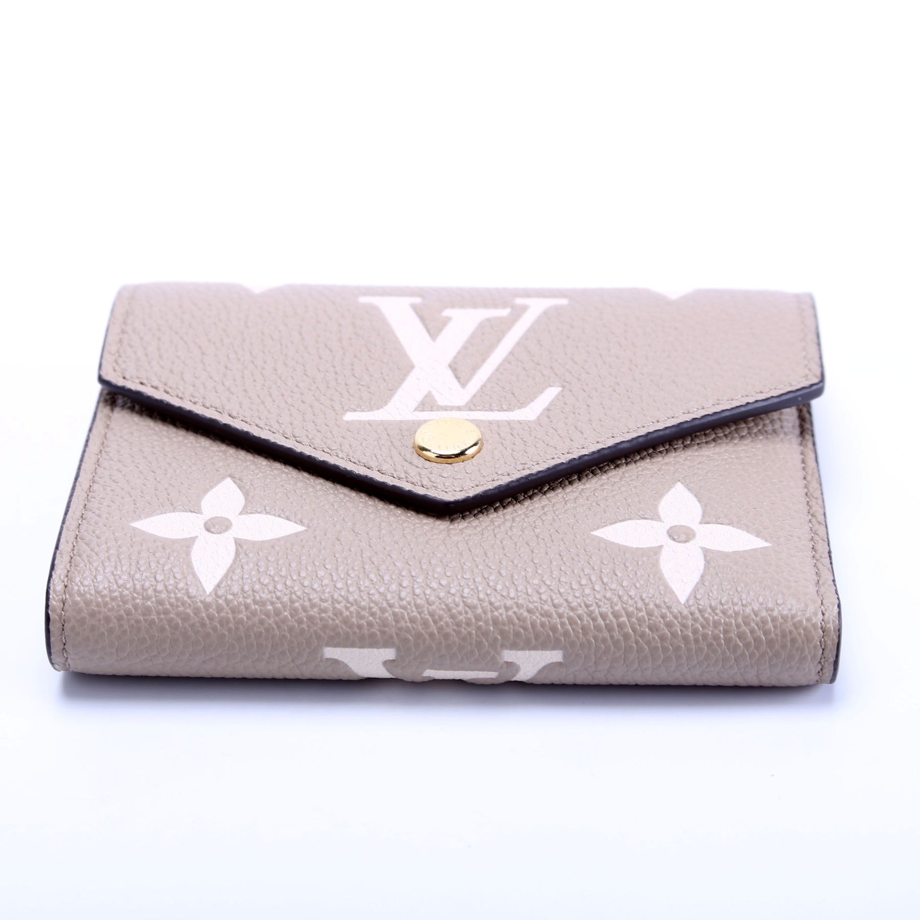 This pre-owned Louis Vuitton Victorine Wallet is guaranteed 100% authentic. The exterior is in the classic Louis Vuitton Bicolor Empreinte leather.