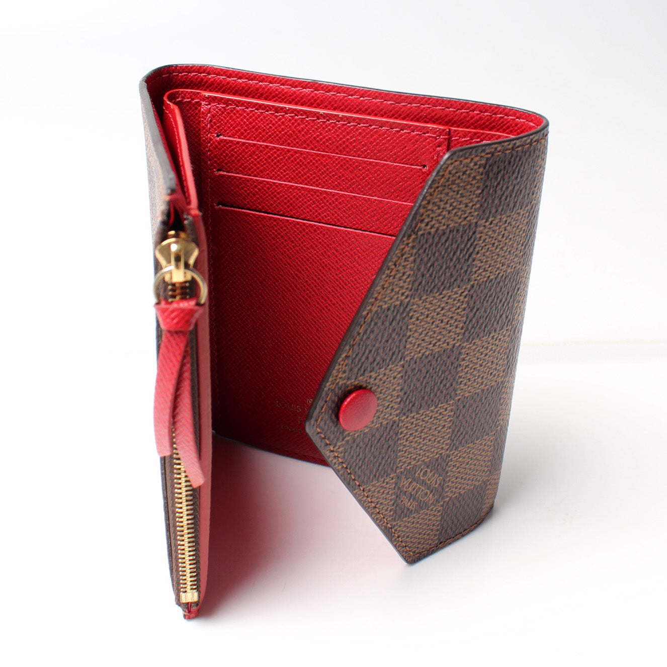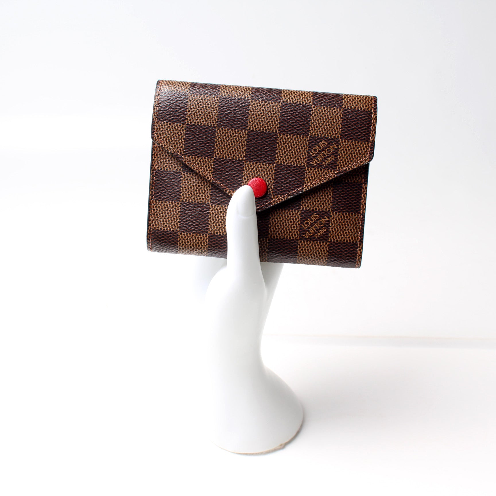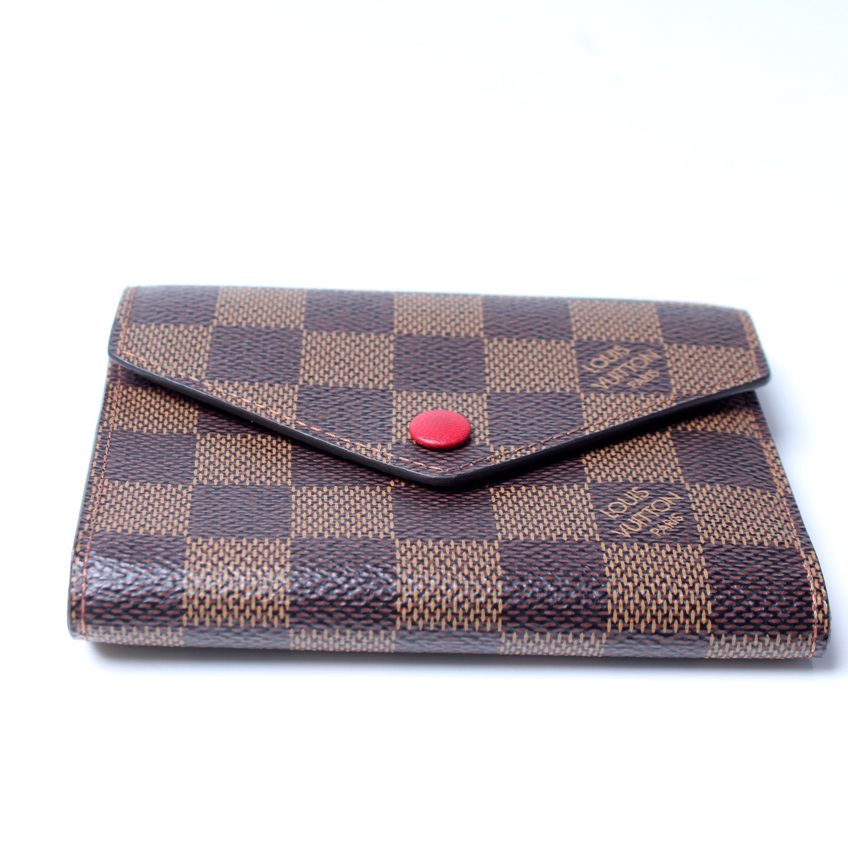This pre-owned Louis Vuitton Victorine Holiday Wallet is guaranteed 100% authentic. The exterior is in the classic Monogram coated canvas.