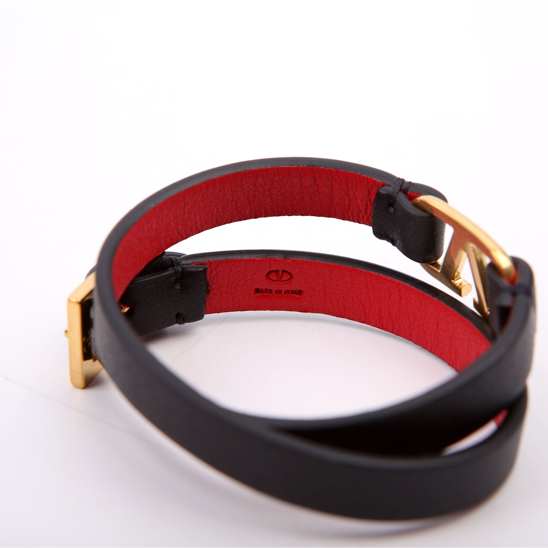 This pre-owned Valentino Vlogo Double Wrap Leather Bracelet is guaranteed 100% authentic.