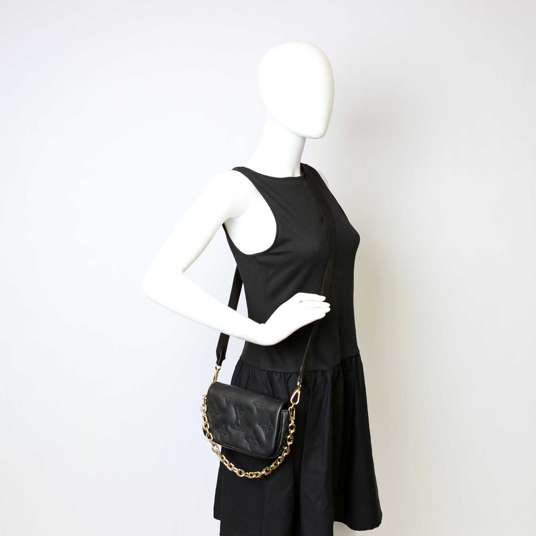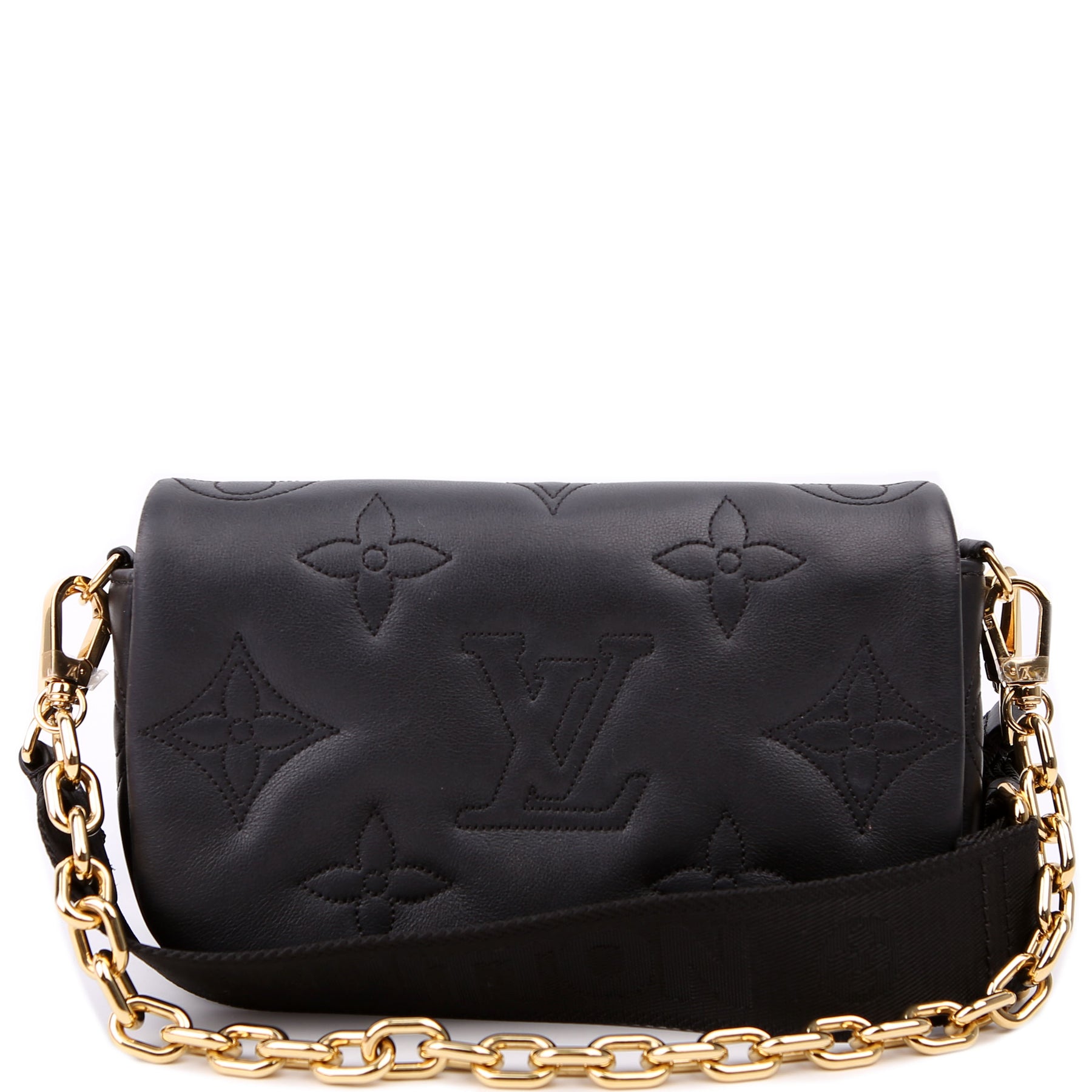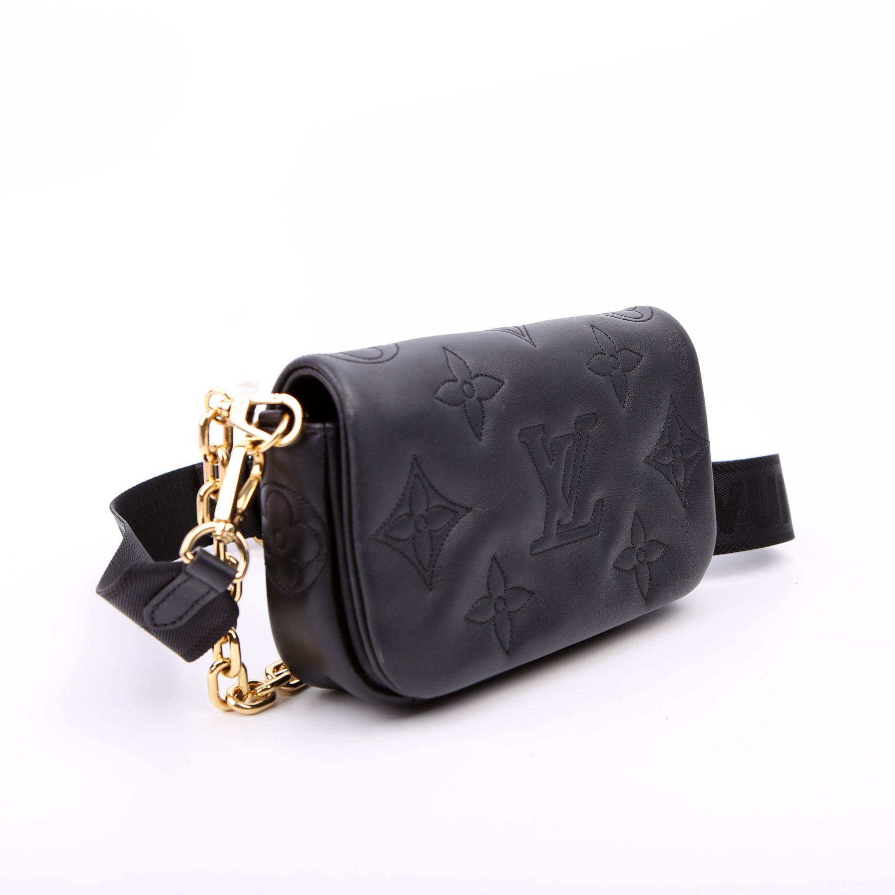 This pre-owned Louis Vuitton Wallet on Strap is guaranteed 100% authentic. The exterior is in the classic Louis Vuitton Bubblegram Calfskin leather.