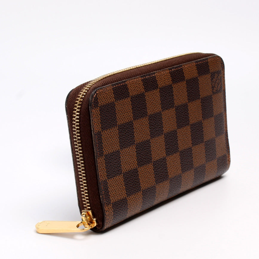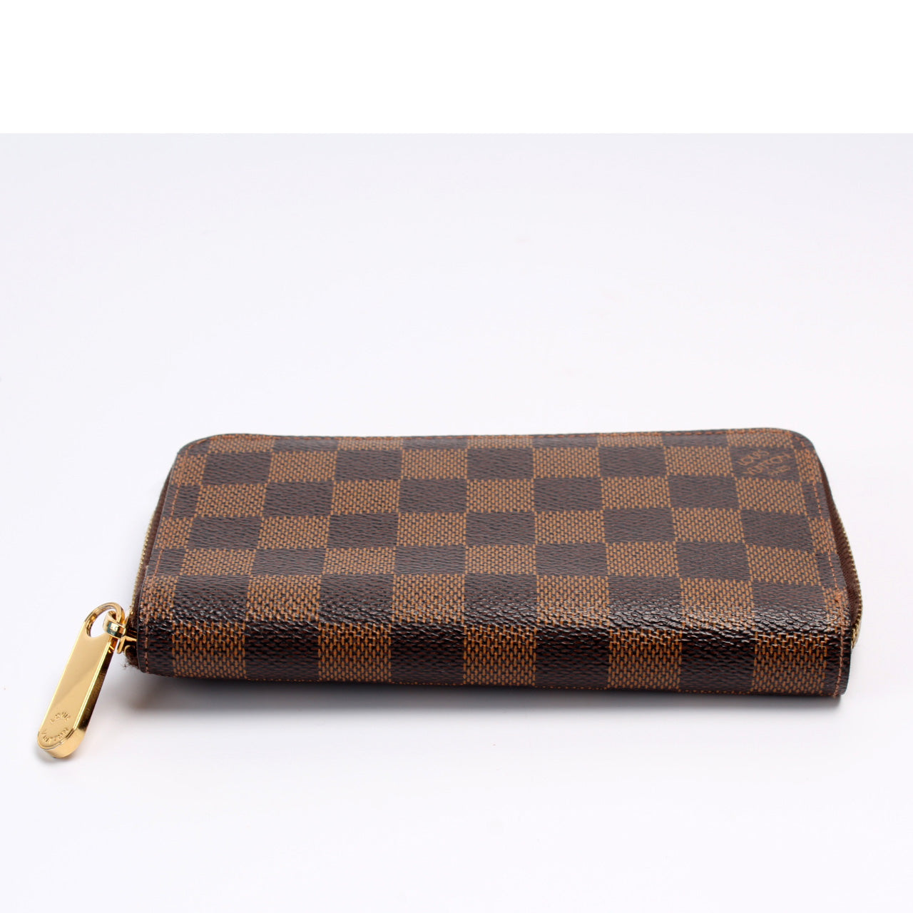 This pre-owned Louis Vuitton Zippy Compact Wallet is guaranteed 100% authentic. The exterior is in the classic Louis Vuitton Damier Ebene coated canvas.