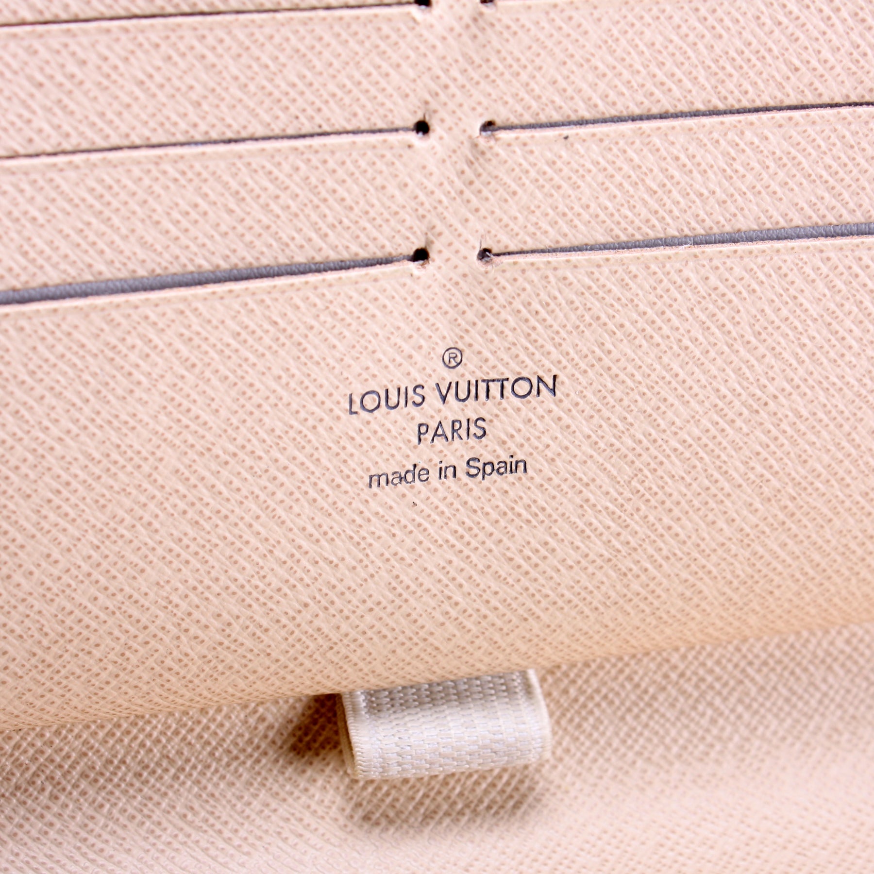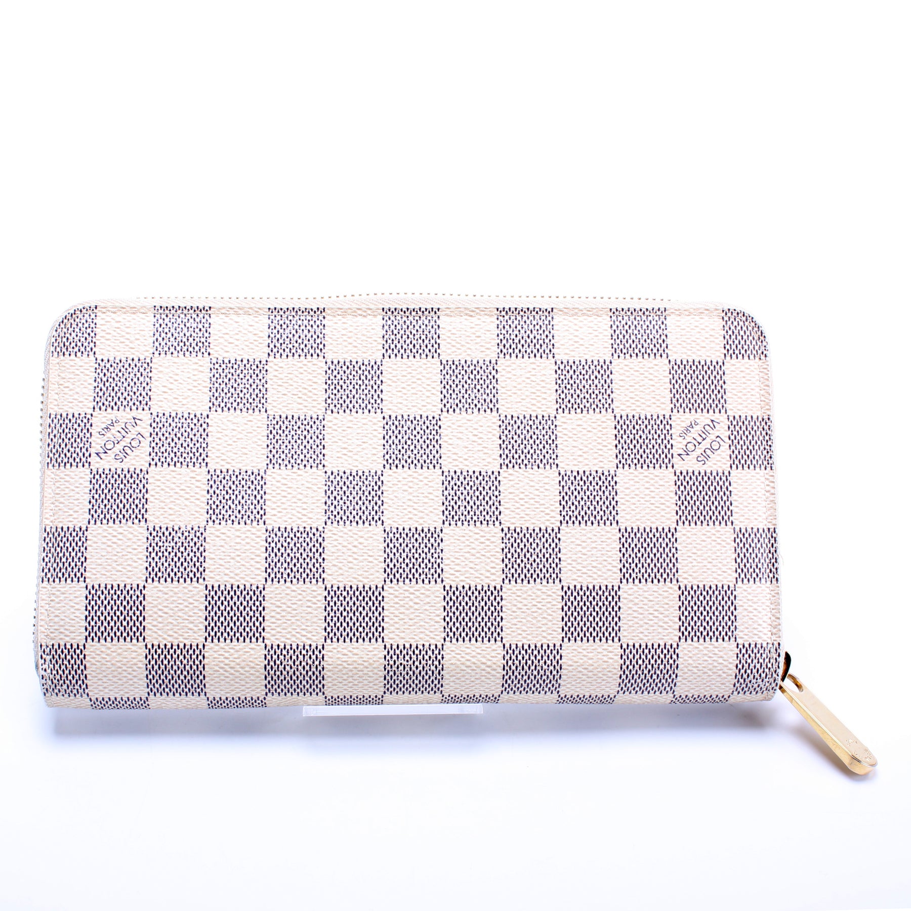 This pre-owned Louis Vuitton Zippy Organizer is guaranteed 100% authentic. The exterior is in the classic Louis Vuitton Damier Azur coated canvas.