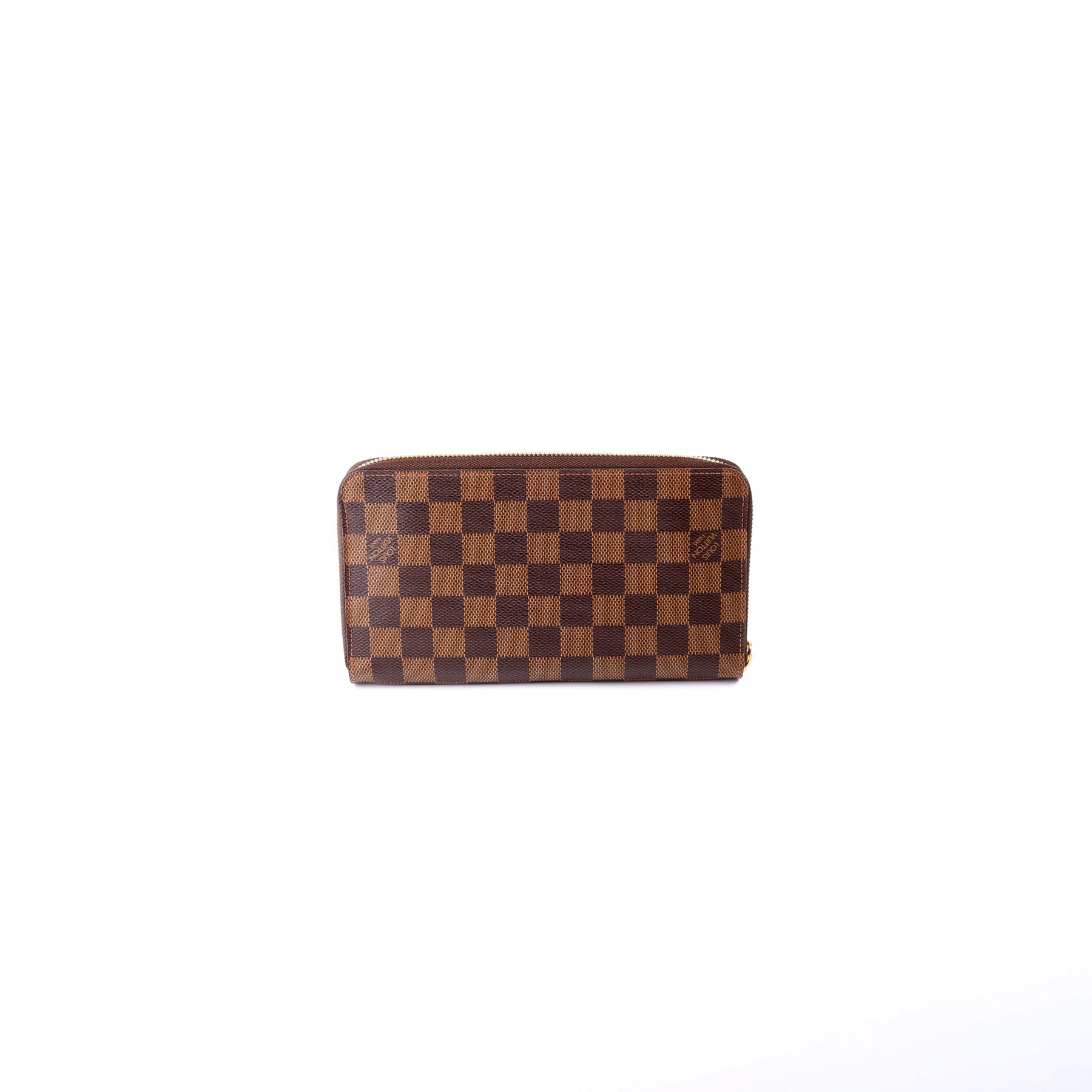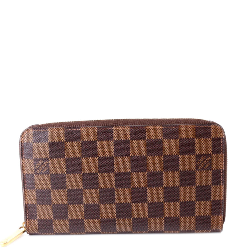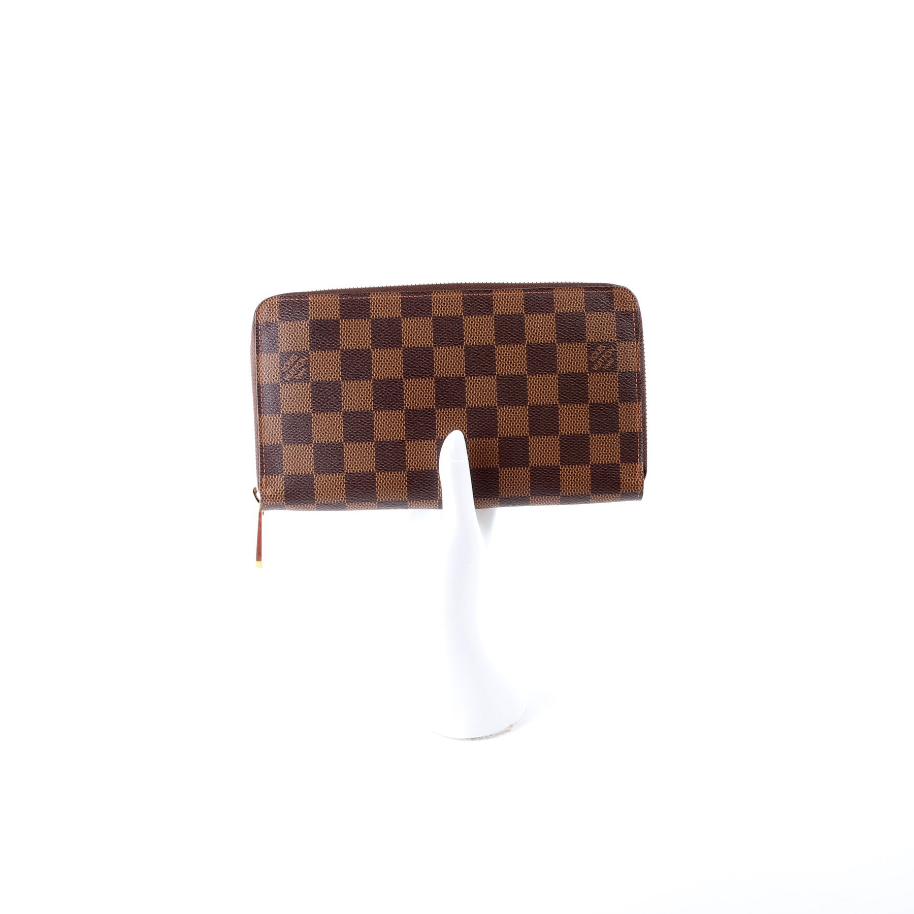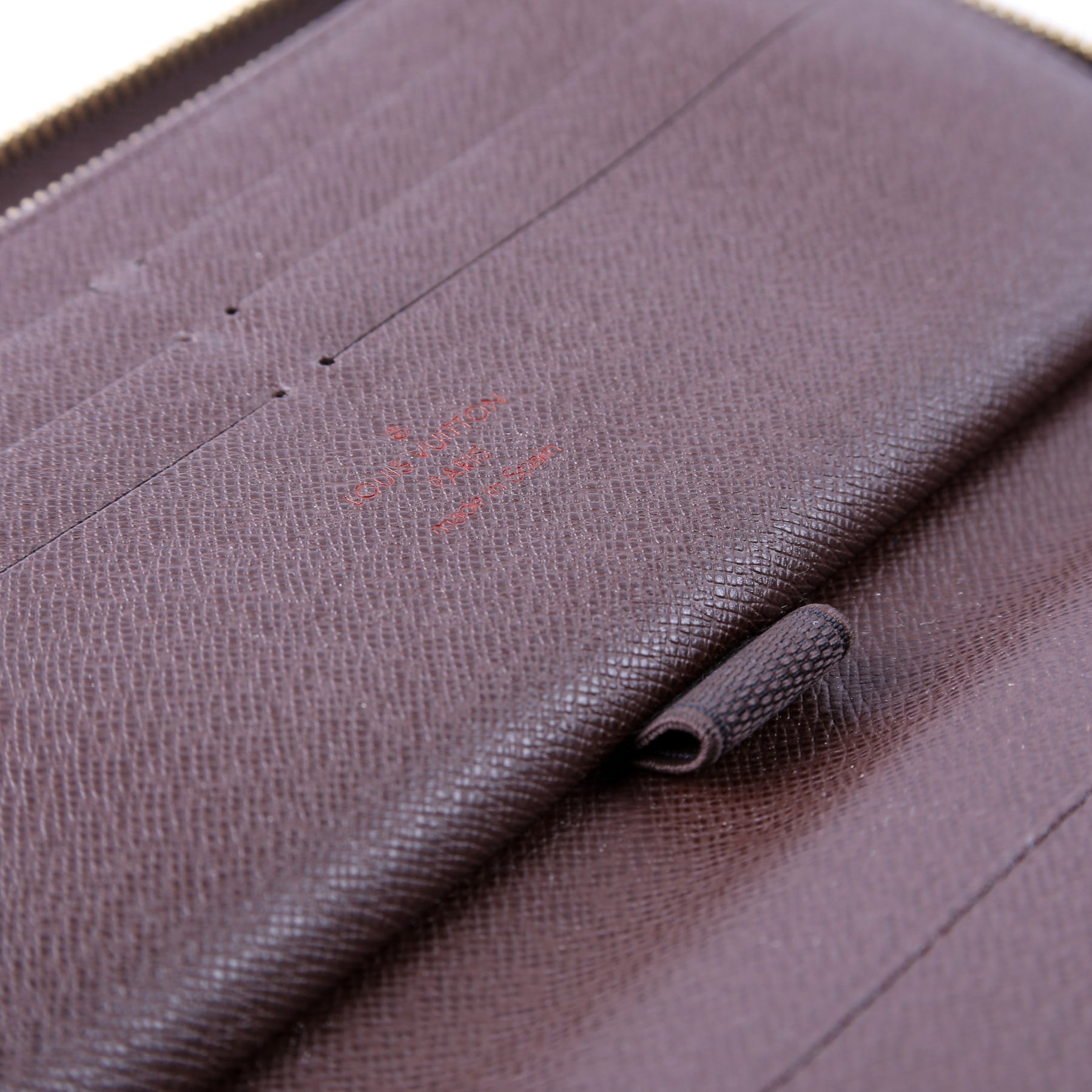 This pre-owned Louis Vuitton Zippy Organizer is guaranteed 100% authentic. The exterior is in the classic Louis Vuitton Damier Ebene coated canvas.