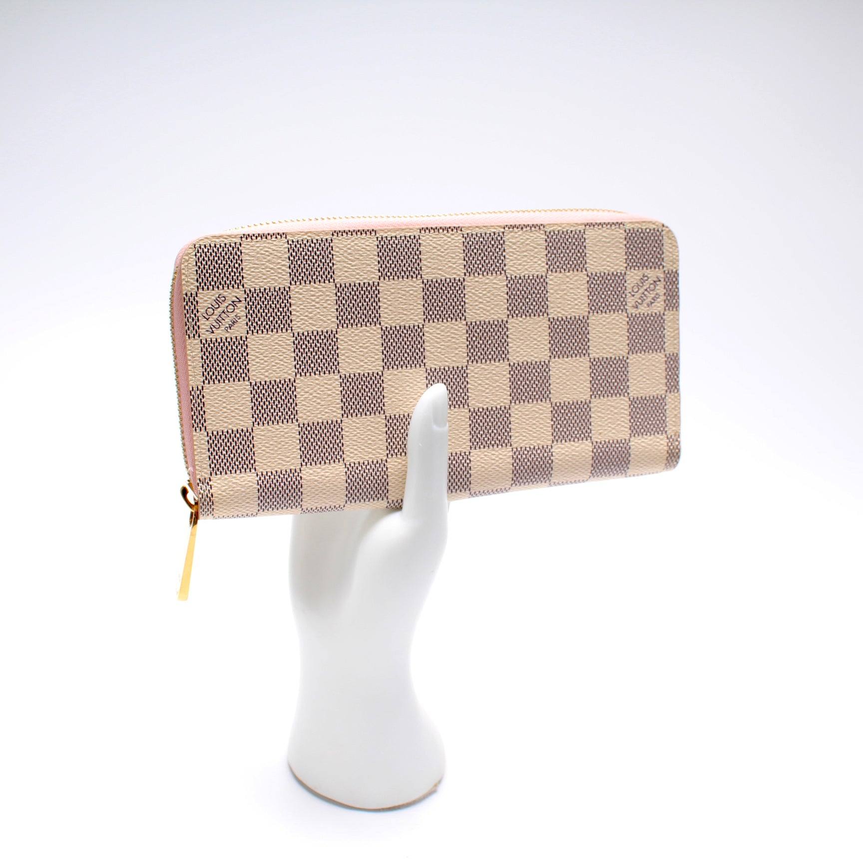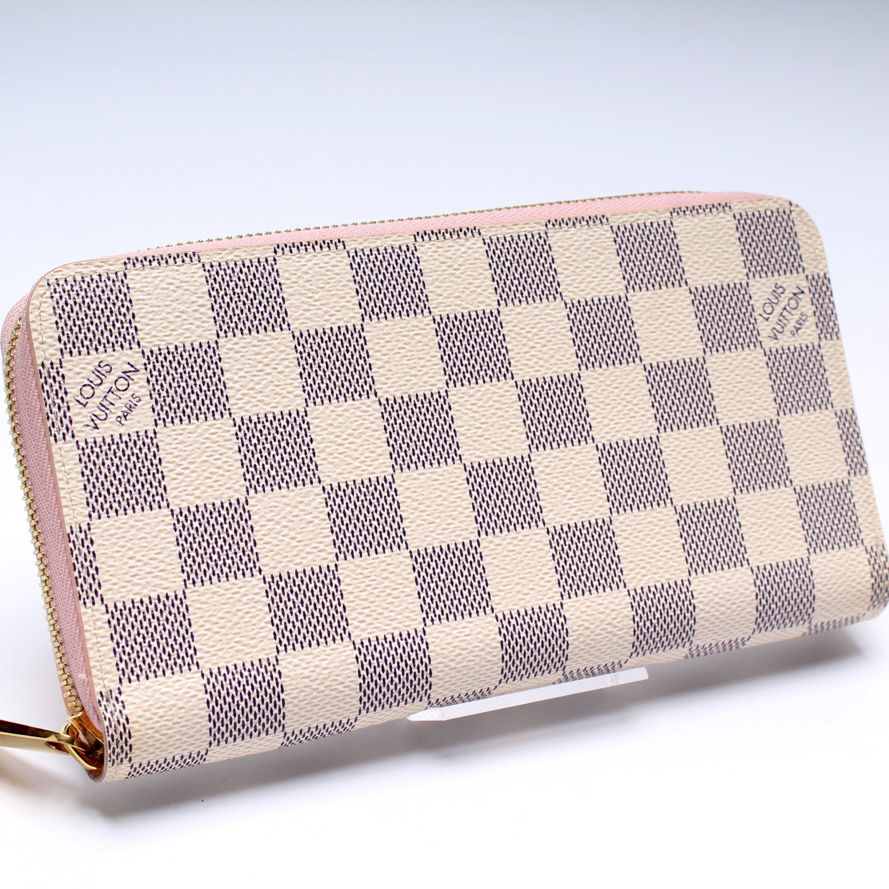 This pre-owned Louis Vuitton Zippy Wallet is guaranteed 100% authentic. The exterior is in the classic Louis Vuitton Damier Azur coated canvas.