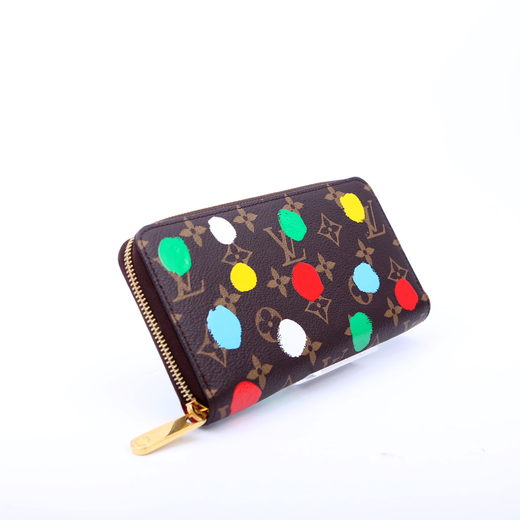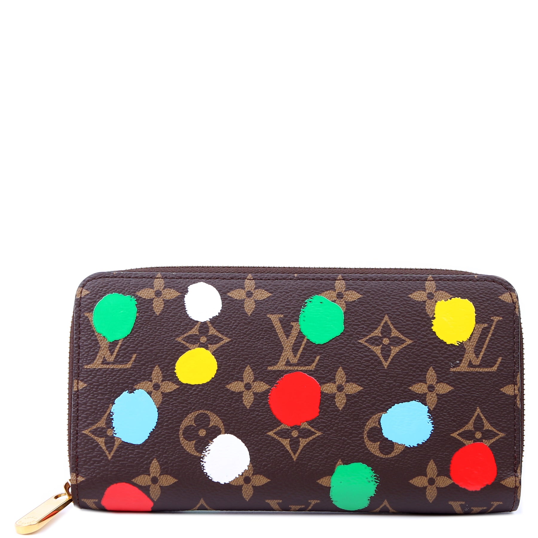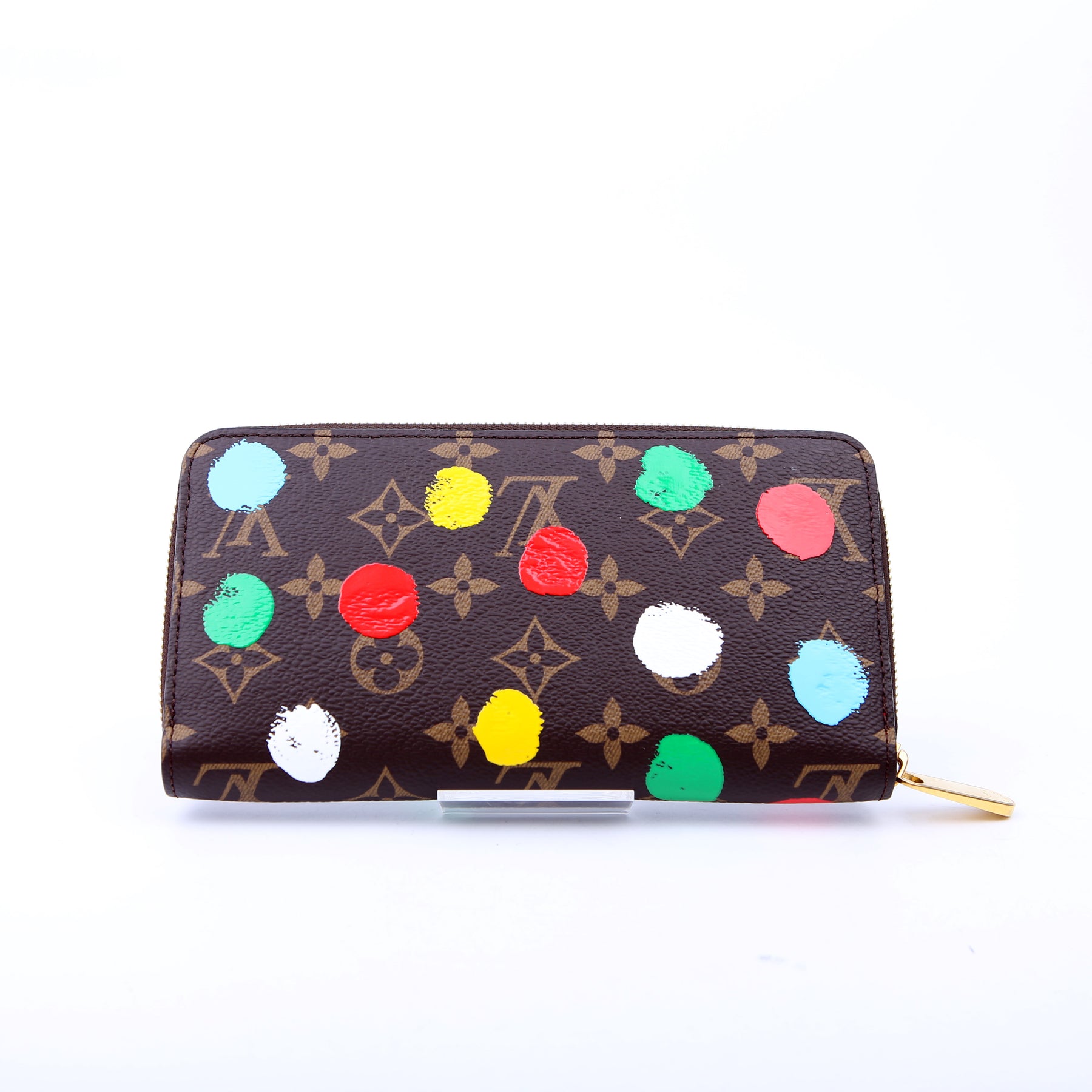 This pre-owned Louis Vuitton Zippy Wallet is guaranteed 100% authentic. The exterior is in the classic Louis Vuitton Monogram Painted Dots coated canvas.