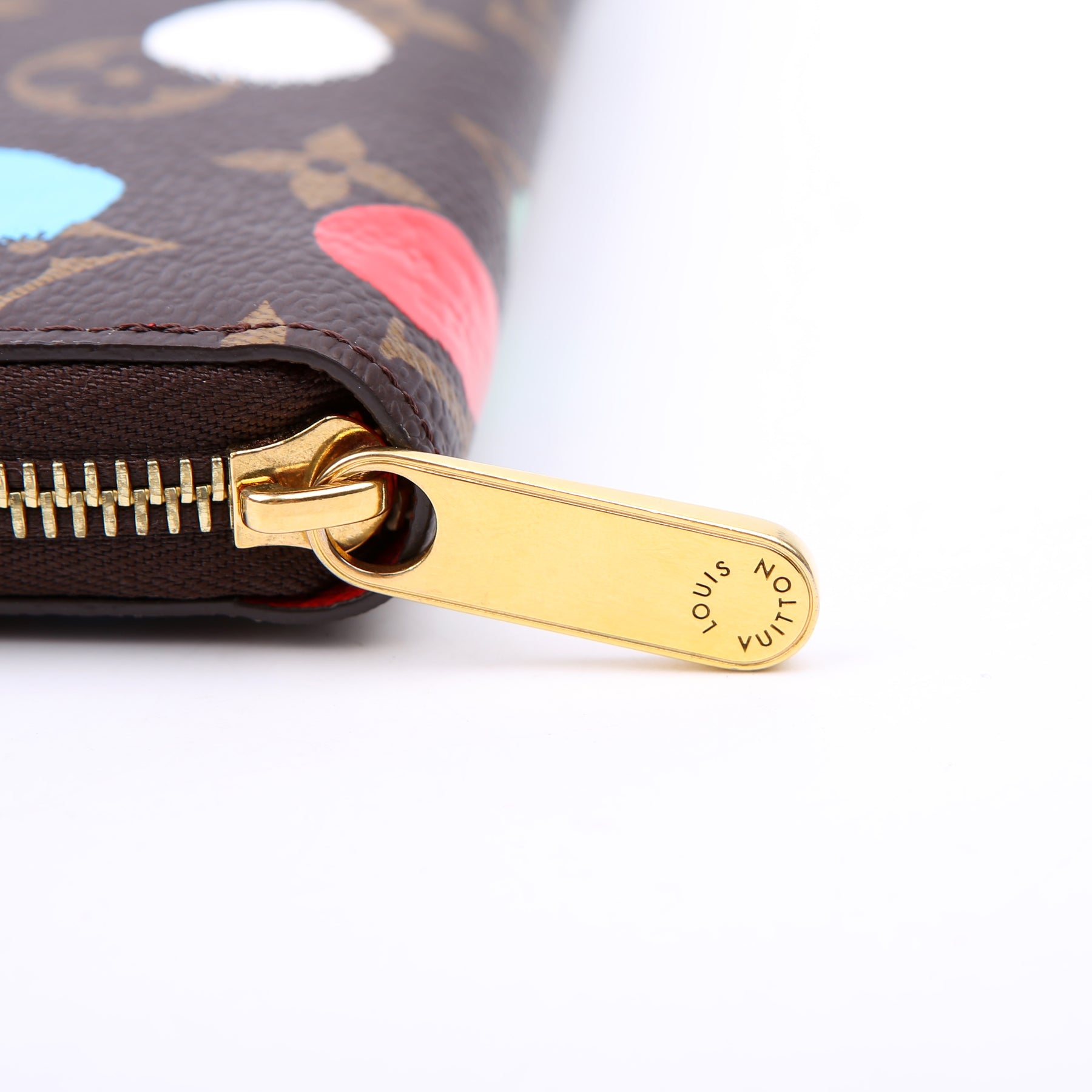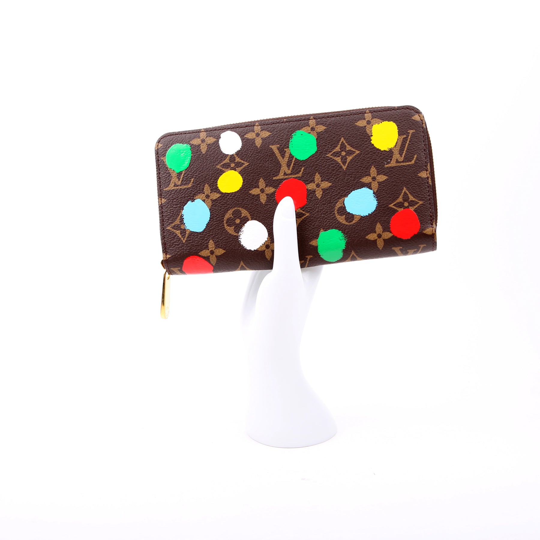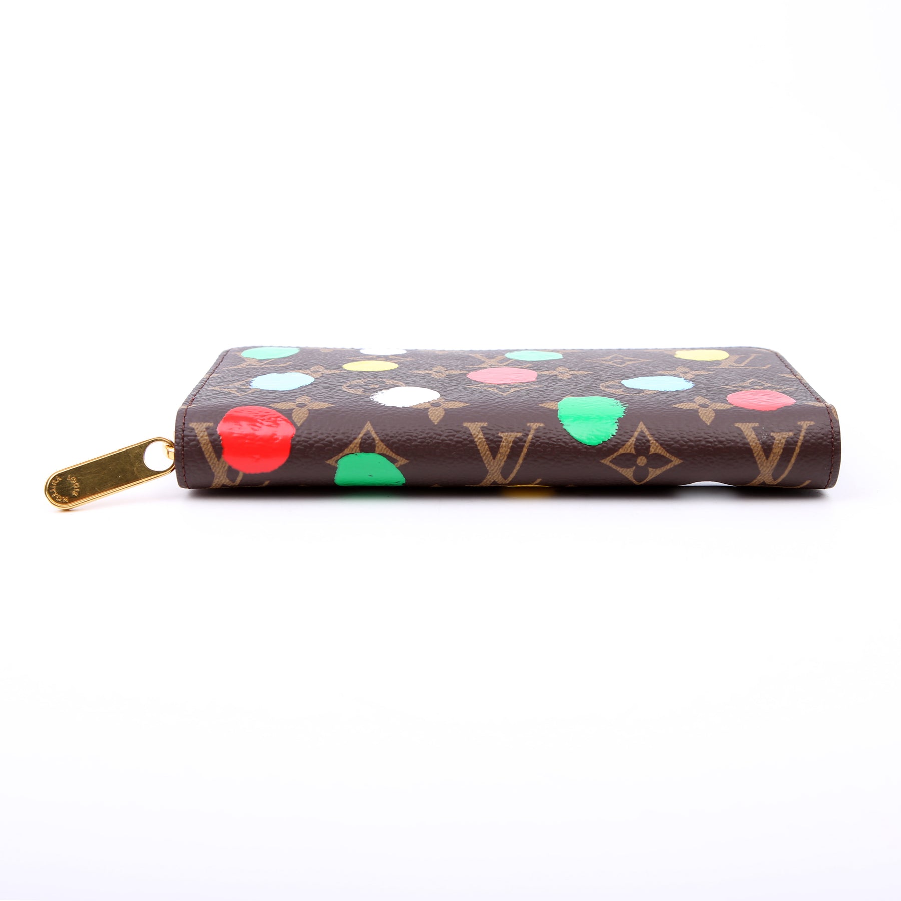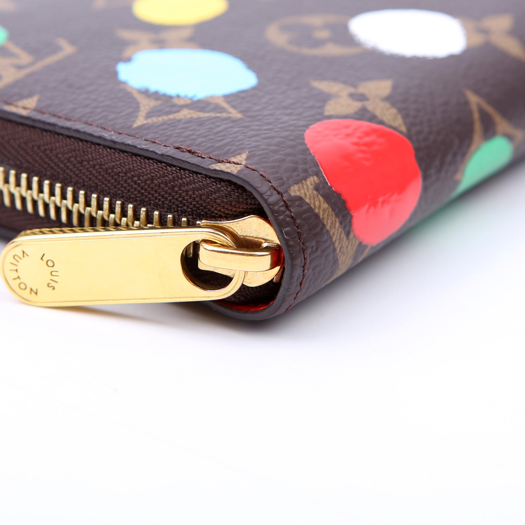 This pre-owned Louis Vuitton Zippy Wallet is guaranteed 100% authentic. The exterior is in the classic Louis Vuitton Monogram Painted Dots coated canvas.
