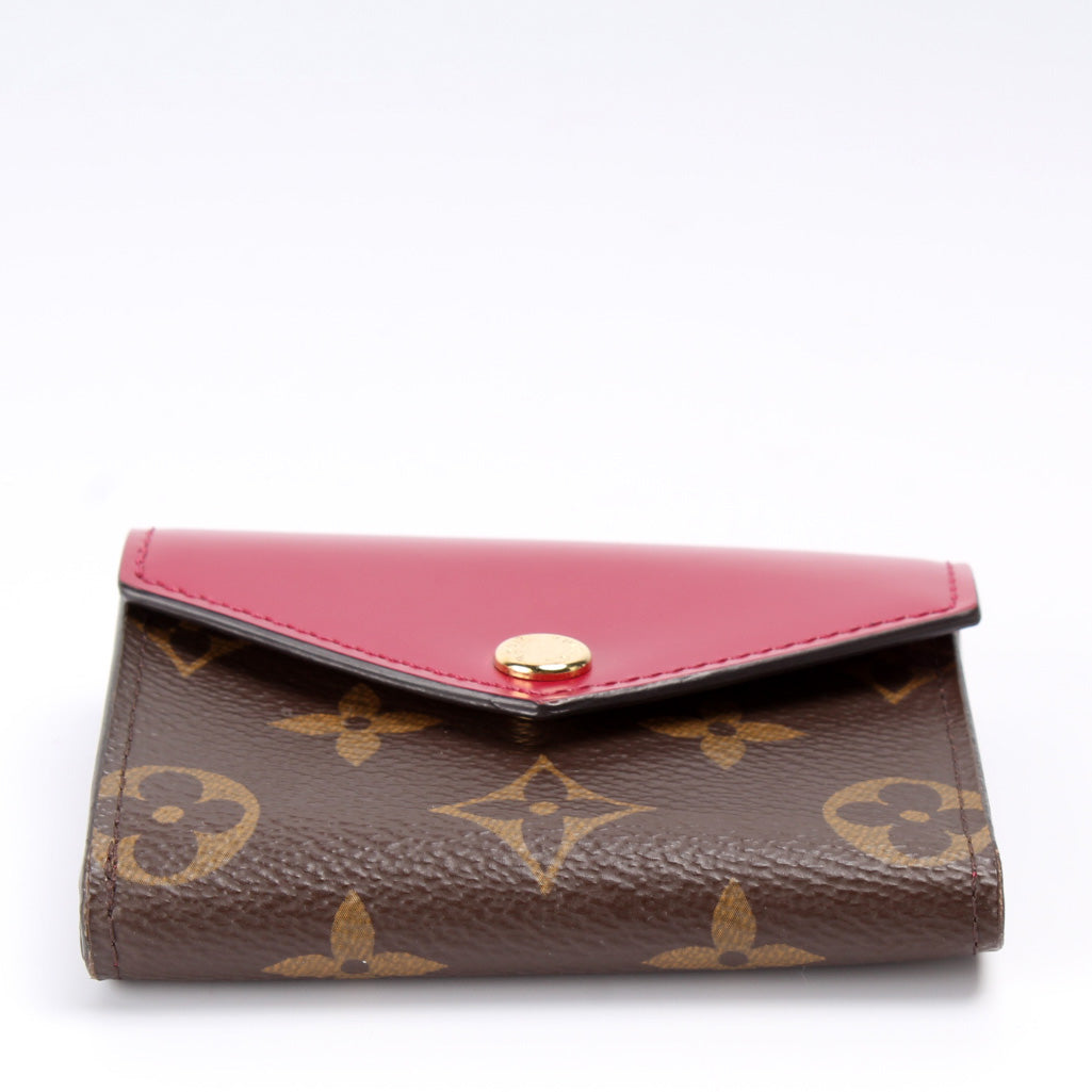 This pre-owned Louis Vuitton Zoe Wallet is guaranteed 100% authentic. The exterior is in the classic Louis Vuitton Monogram coated canvas.